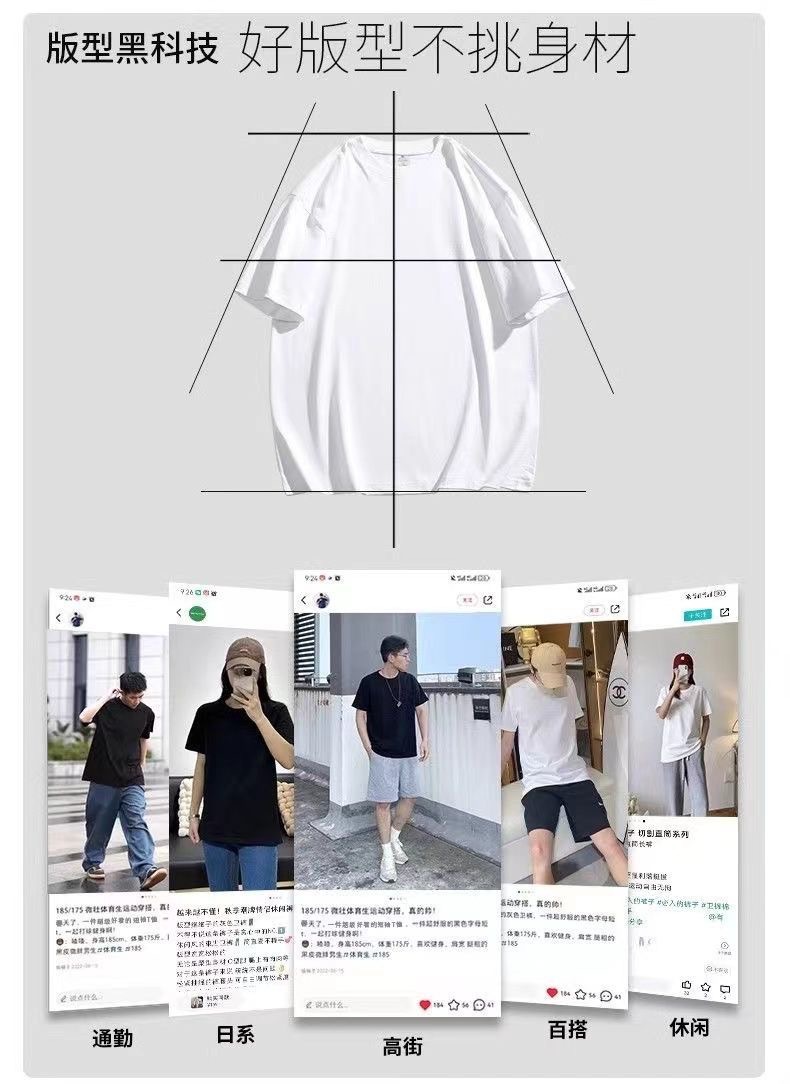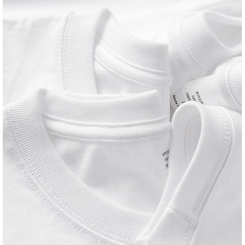 210g 면 작은 어깨 반소매 솔리드 컬러 블랙 화이트 남성 크루 넥베이스 세대를 가진 남성과 여성을위한 짧은 소매 티셔츠스토어 가기