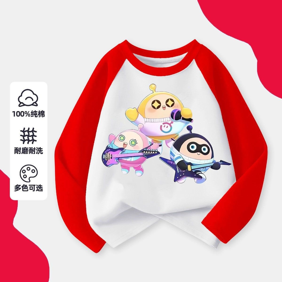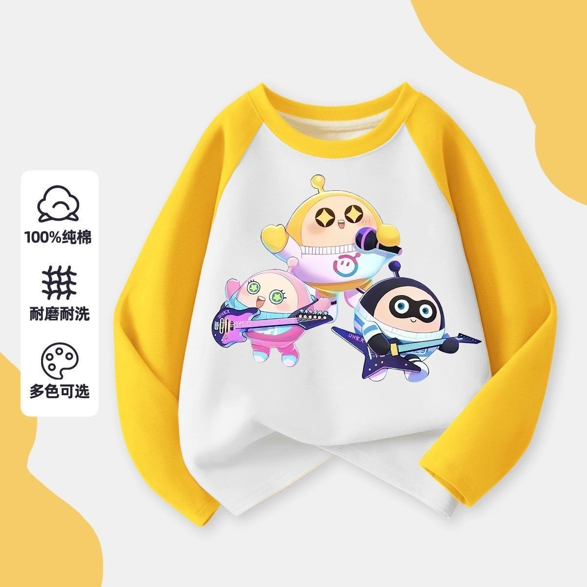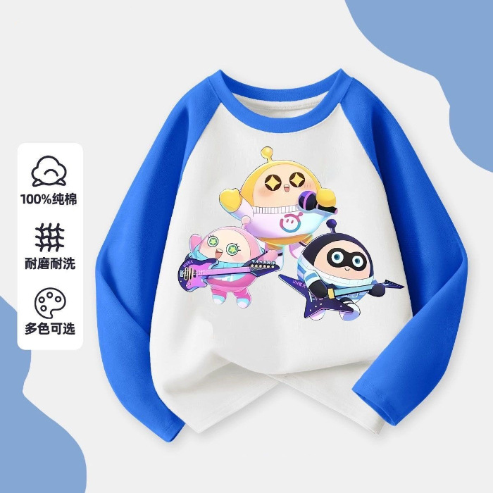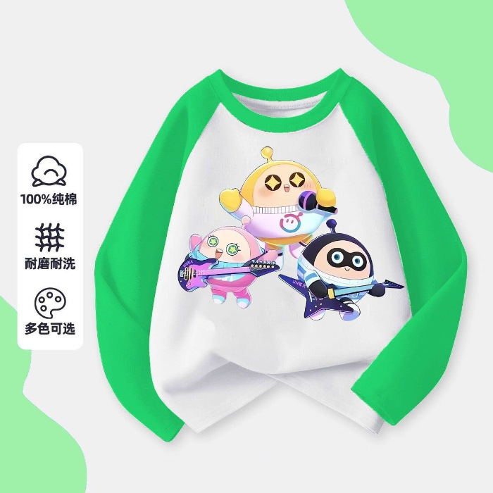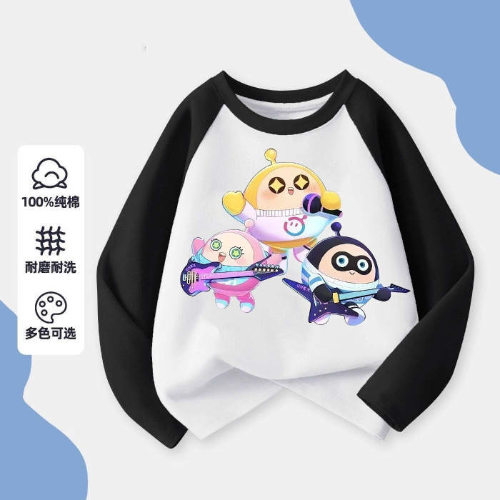 어린이 2024 새로운 계란 파티 만화 코튼 긴팔 티셔츠 아기의 봄과 가을 둥근 목 얇은베이스 탑스토어 가기