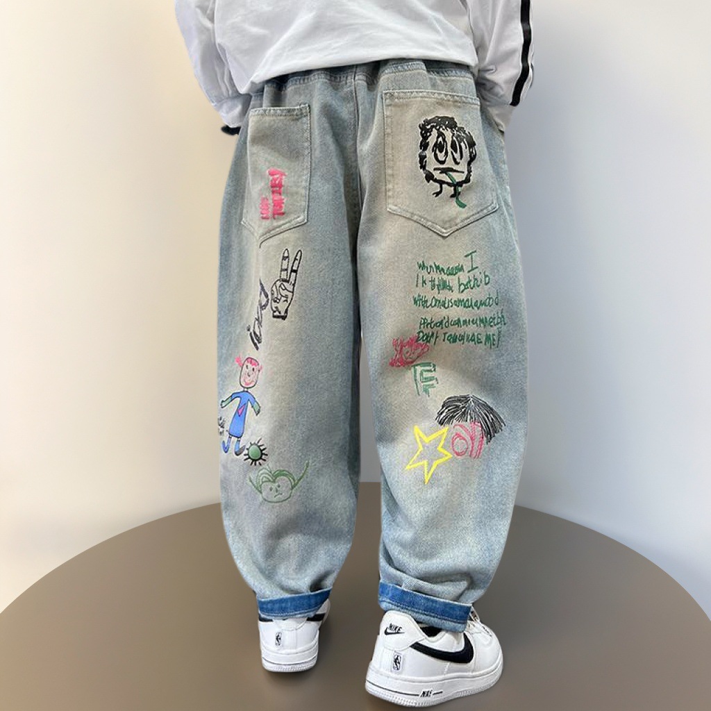 남학생 청바지의 봄과 가을 2024 새 어린이 바지 봄 한국 느슨한 중대형 어린이 캐주얼 트렌디 바지스토어 가기