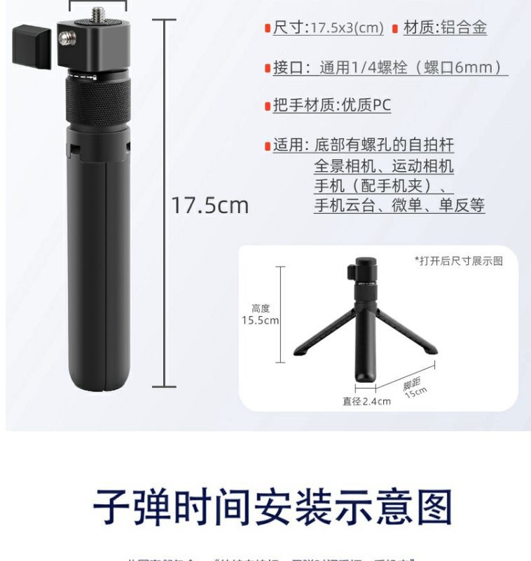 Insta360 그림자 돌 같은 총알 시간 손잡이 카메라 셀카 스틱 삼각대 액세서리 미니 데스크탑 휴대용