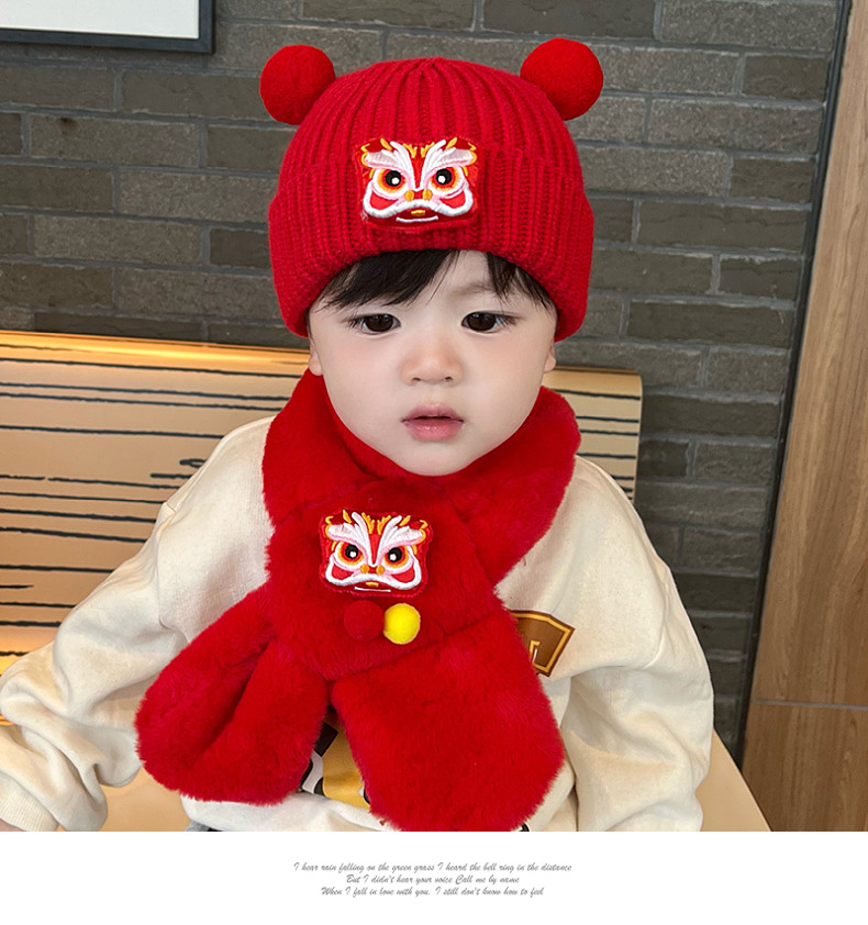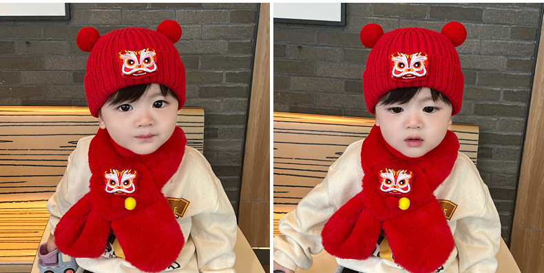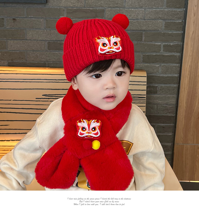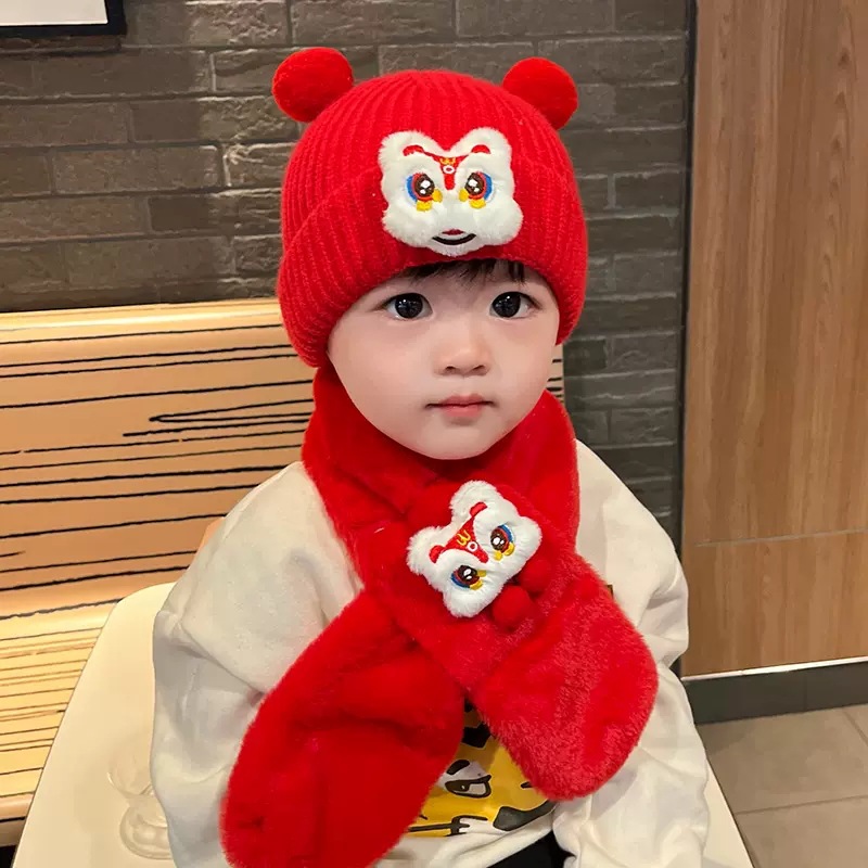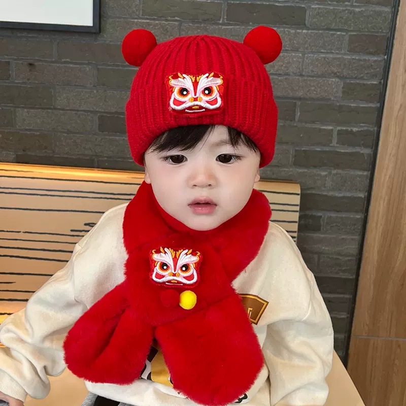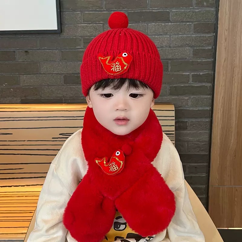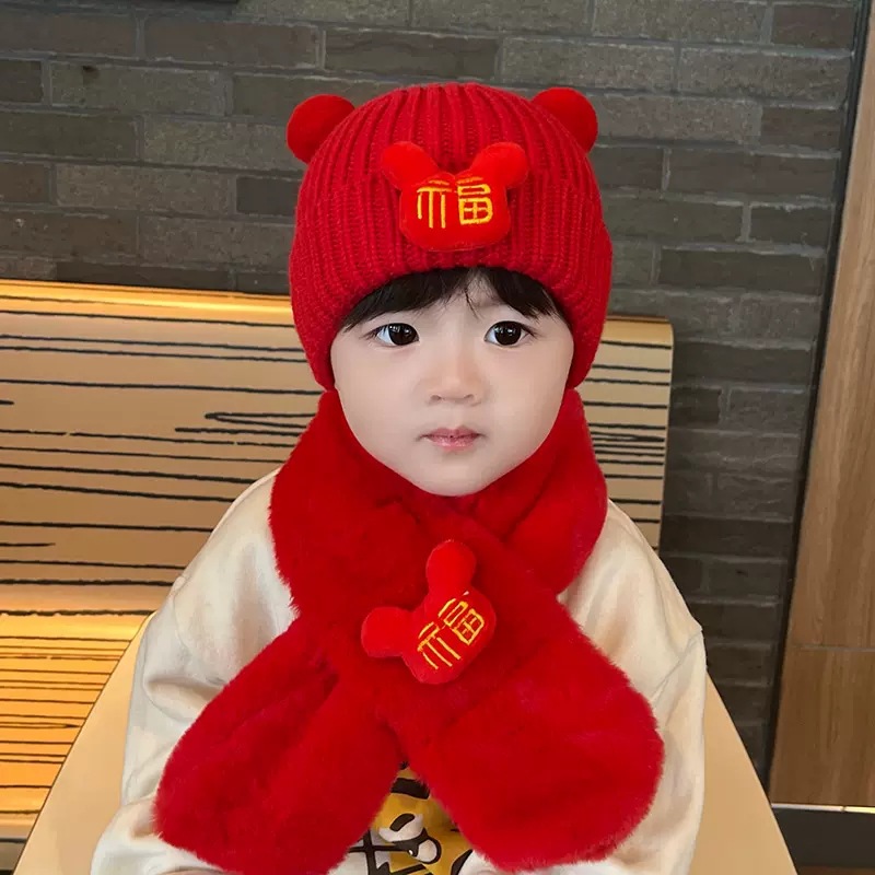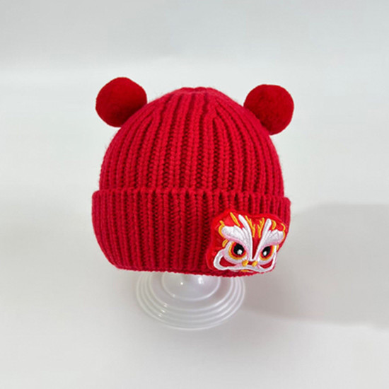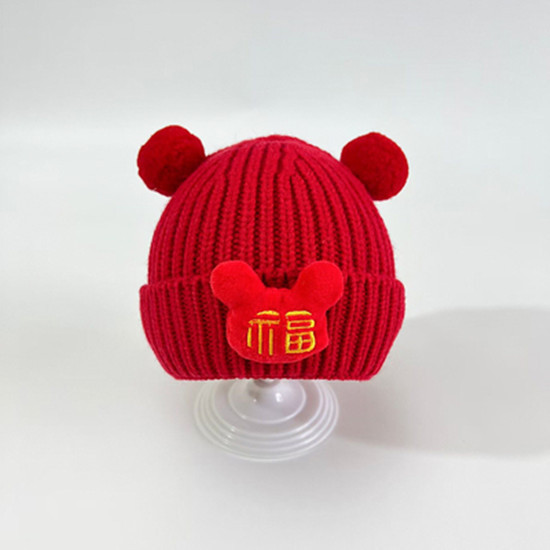 가을과 겨울 아기 모자 붉은 새해 모자 소년 소녀를위한 어린이 양모 모자 새해 1 세 풀오버 모자