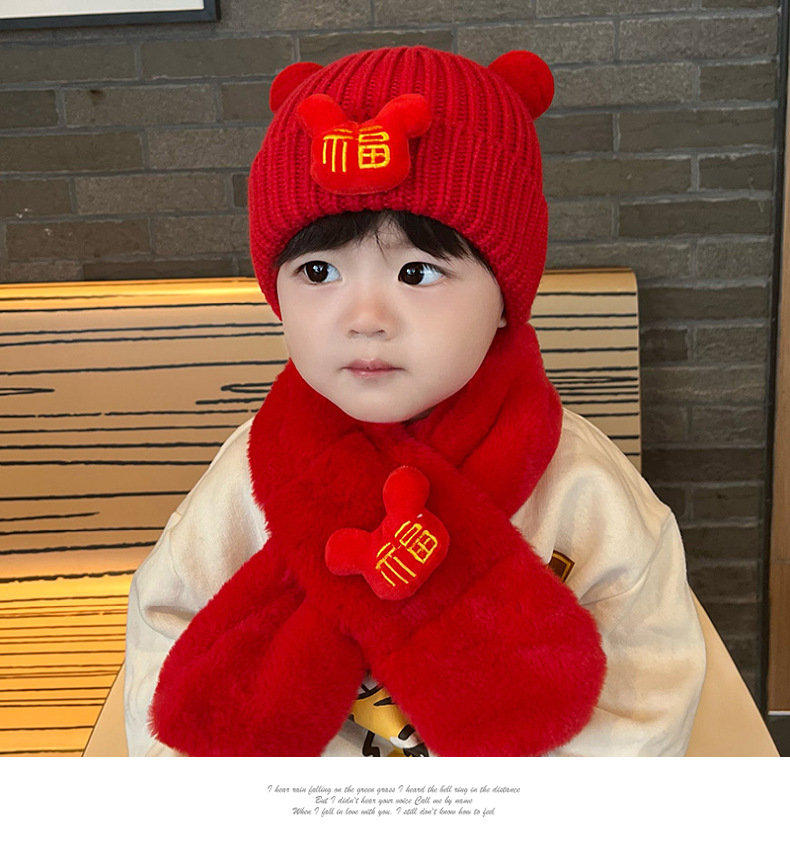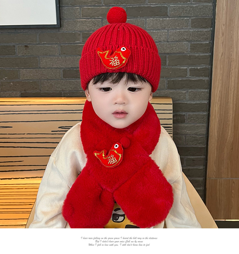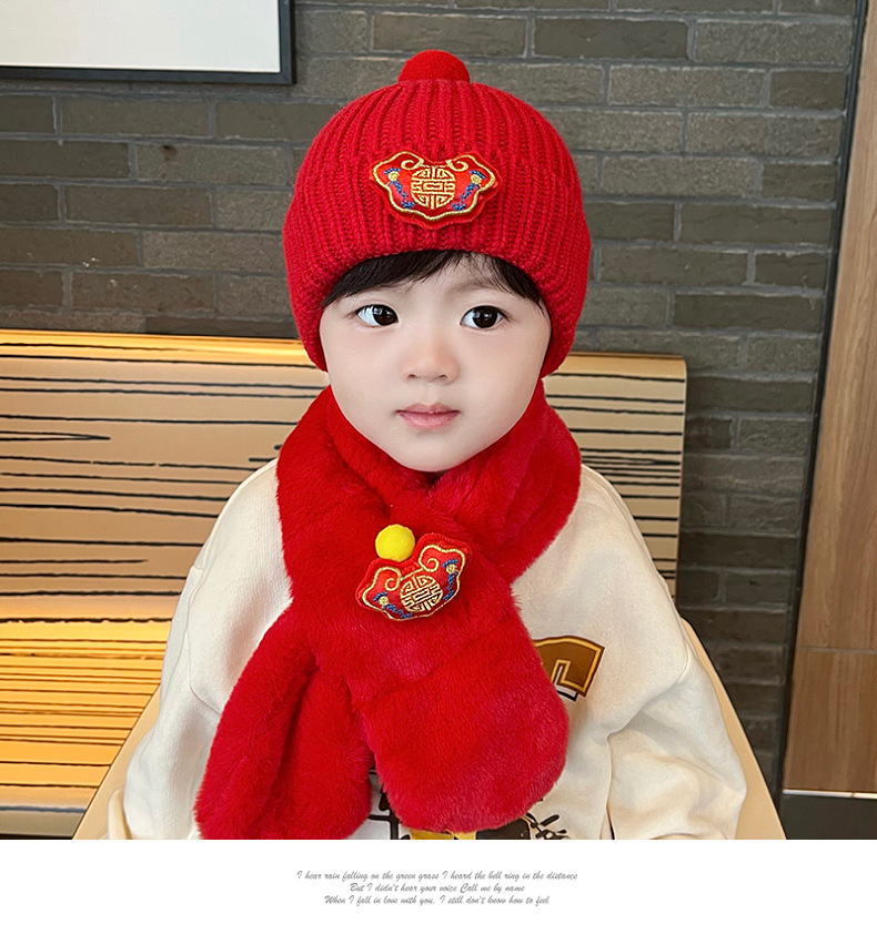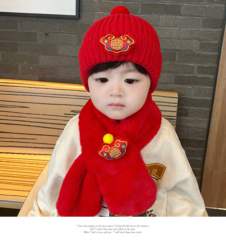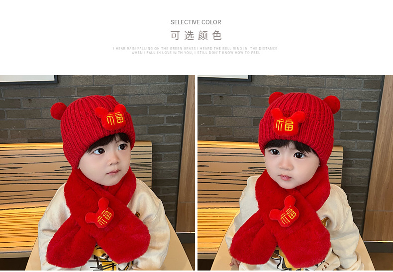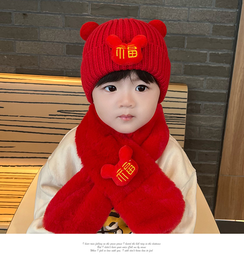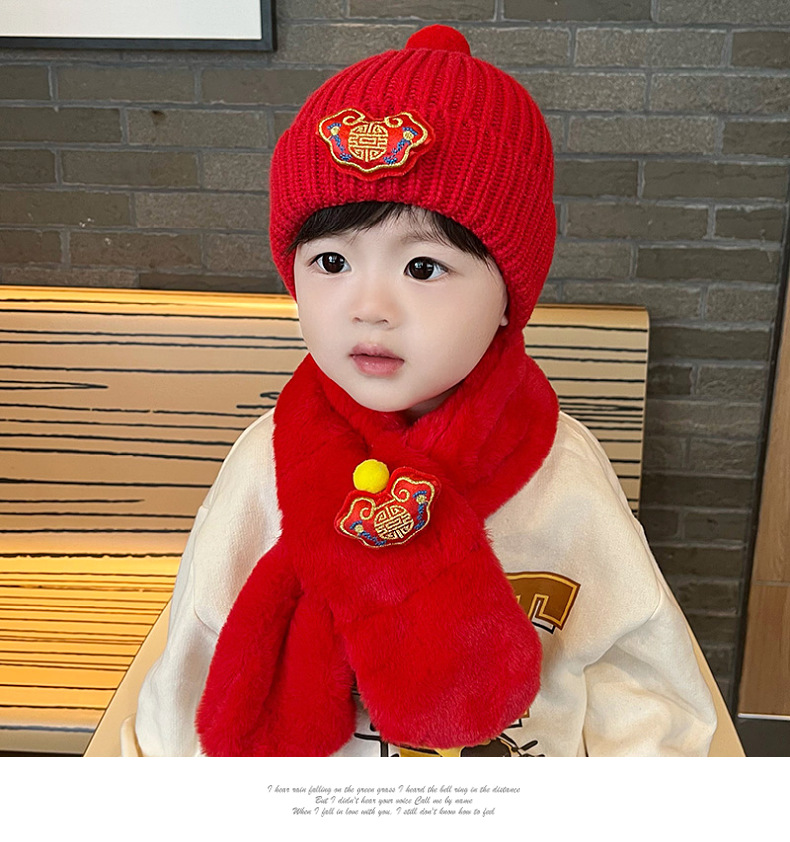가을과 겨울 아기 모자 붉은 새해 모자 소년 소녀를위한 어린이 양모 모자 새해 1 세 풀오버 모자