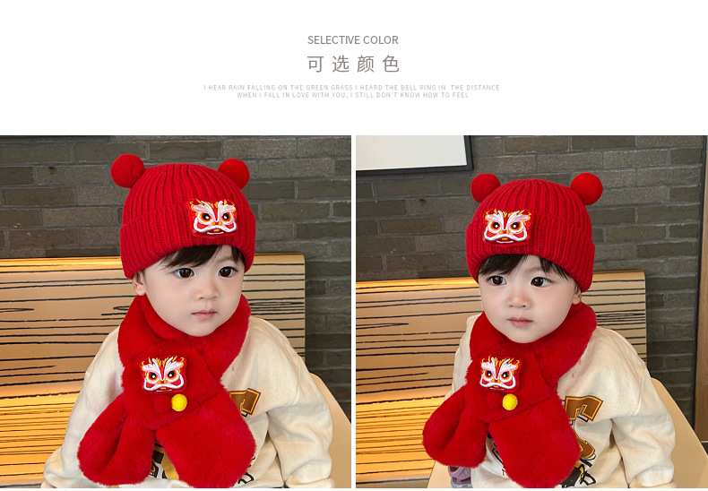 가을과 겨울 아기 모자 붉은 새해 모자 소년 소녀를위한 어린이 양모 모자 새해 1 세 풀오버 모자스토어 가기