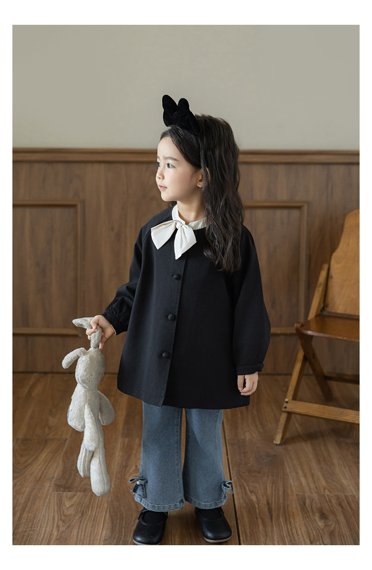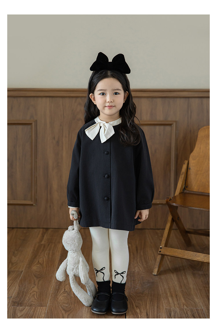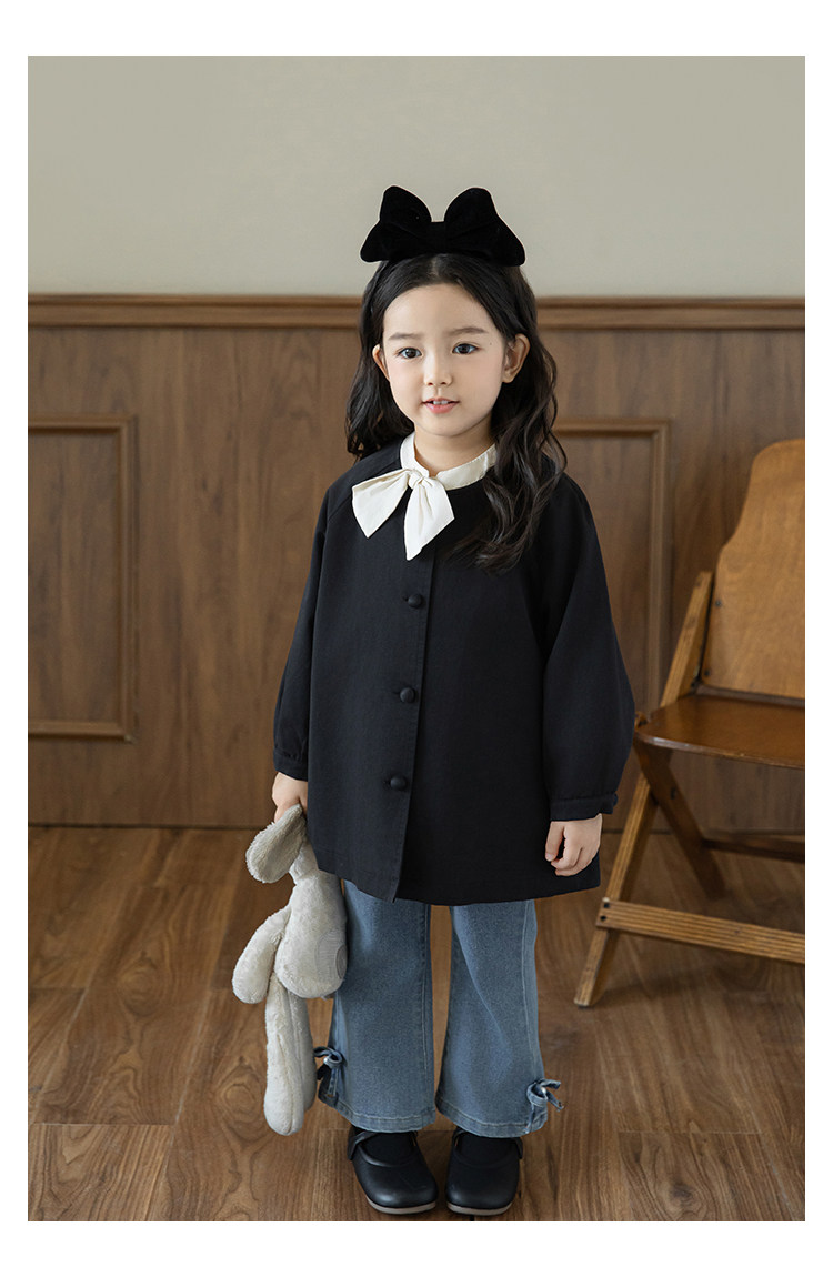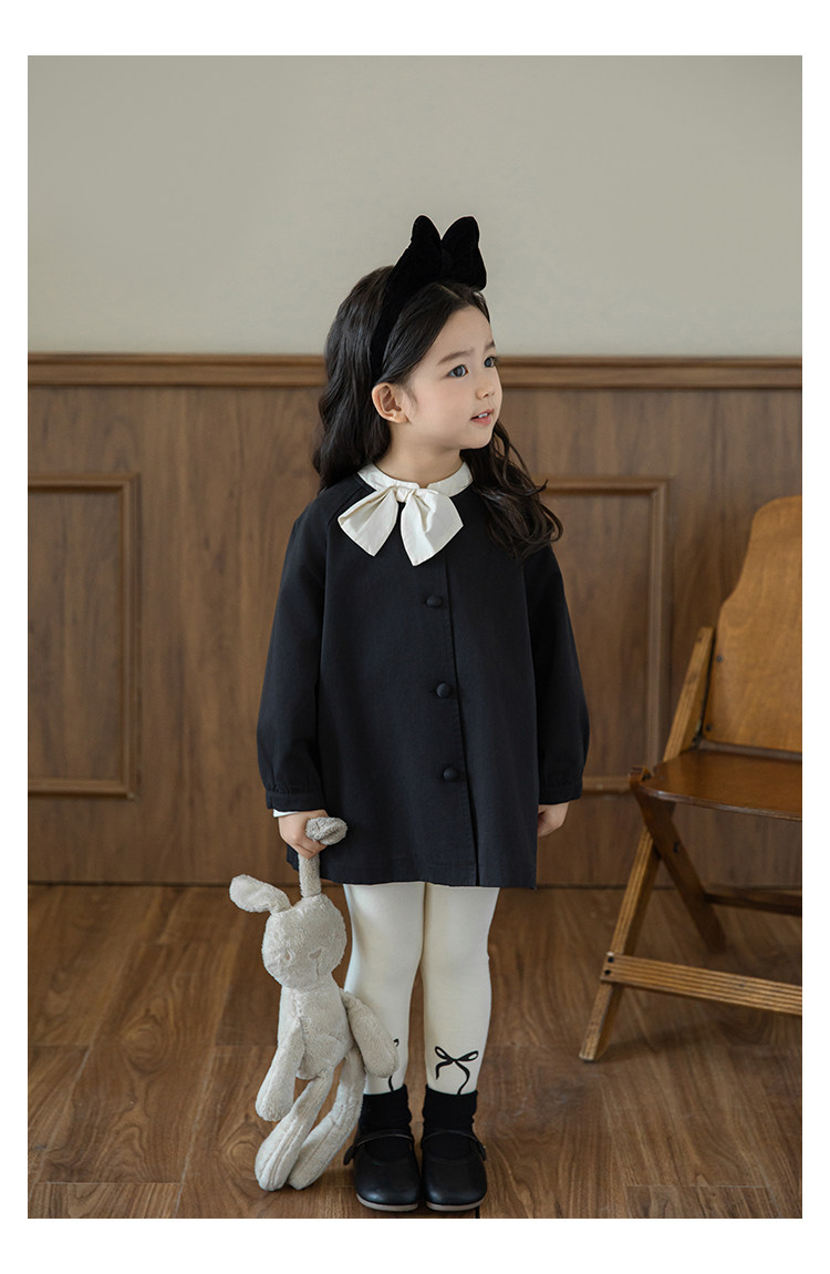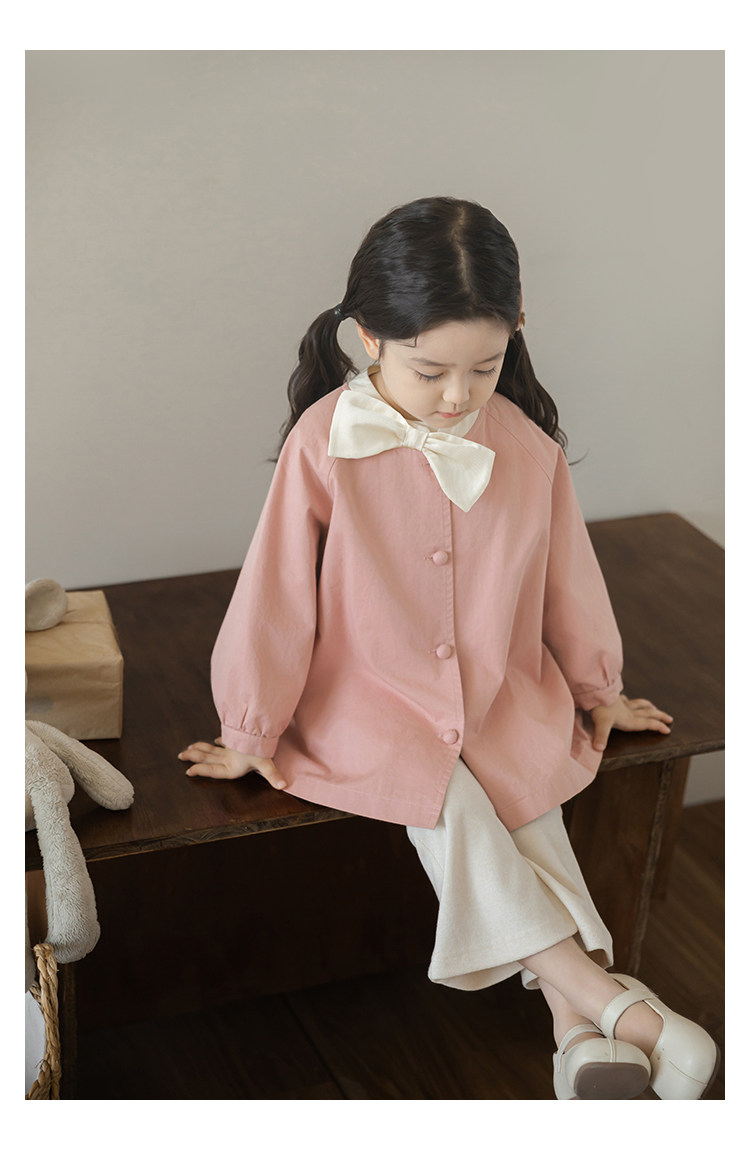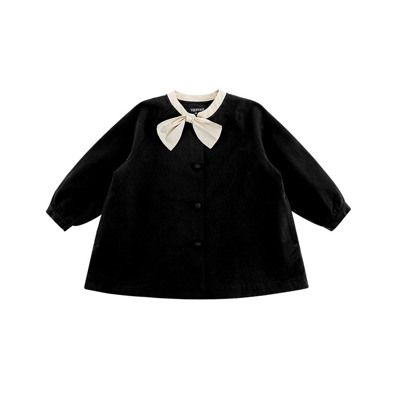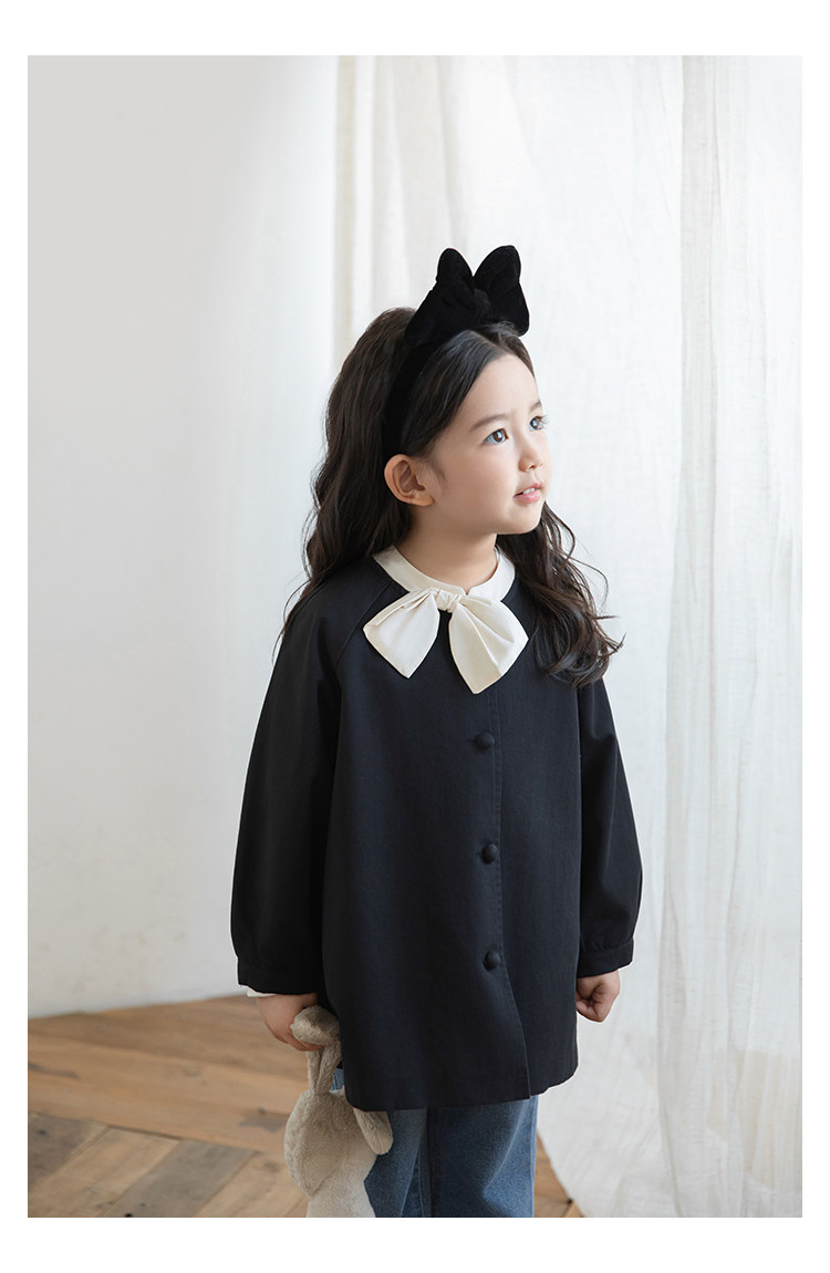 Wuri Boo Girl의 달콤하고 섬세한 활 코트 중간 길이의 가을 어린이 명암 칼라 캐주얼 코트