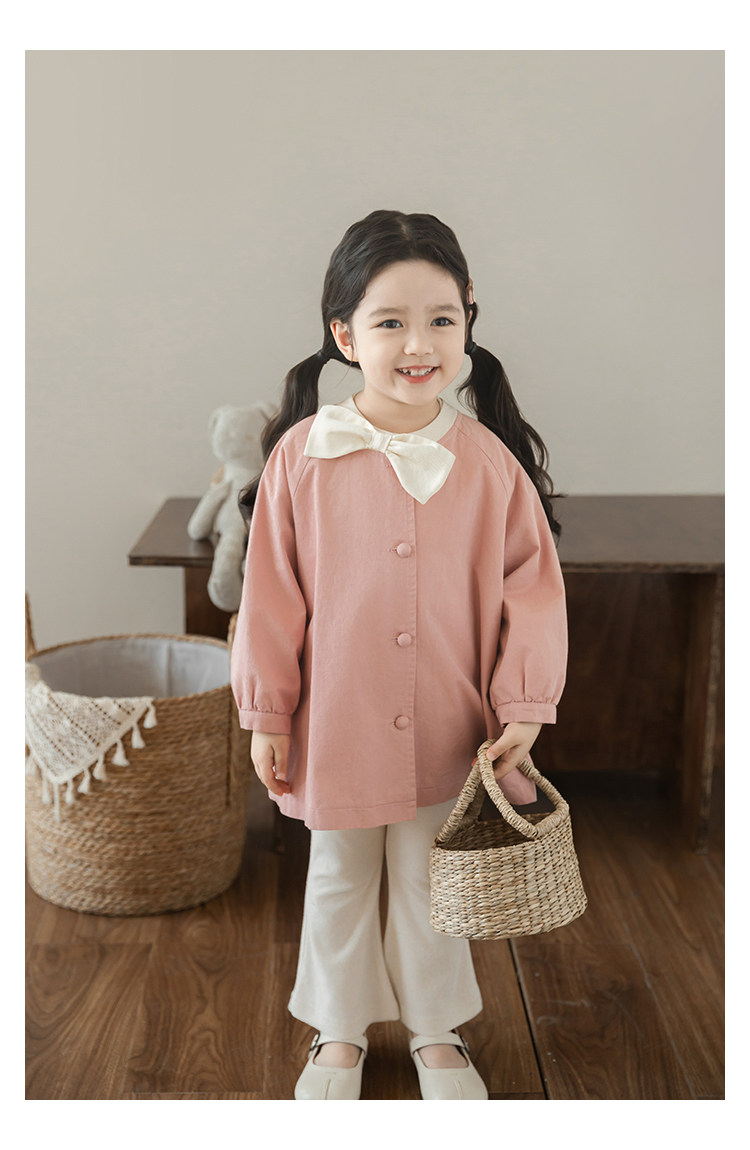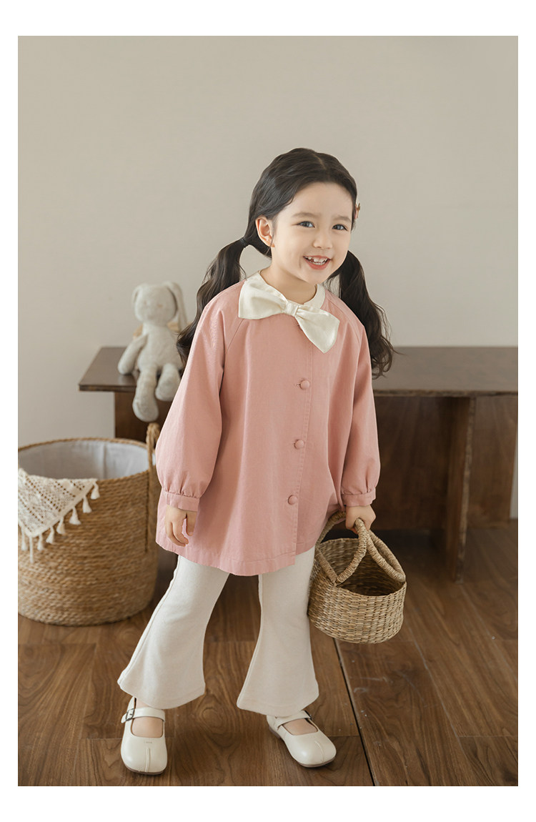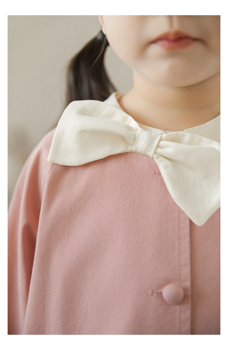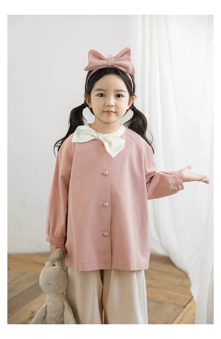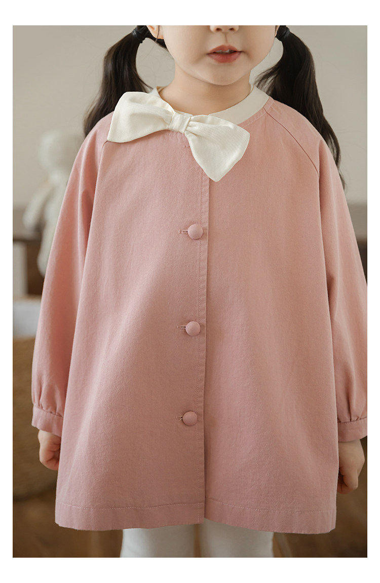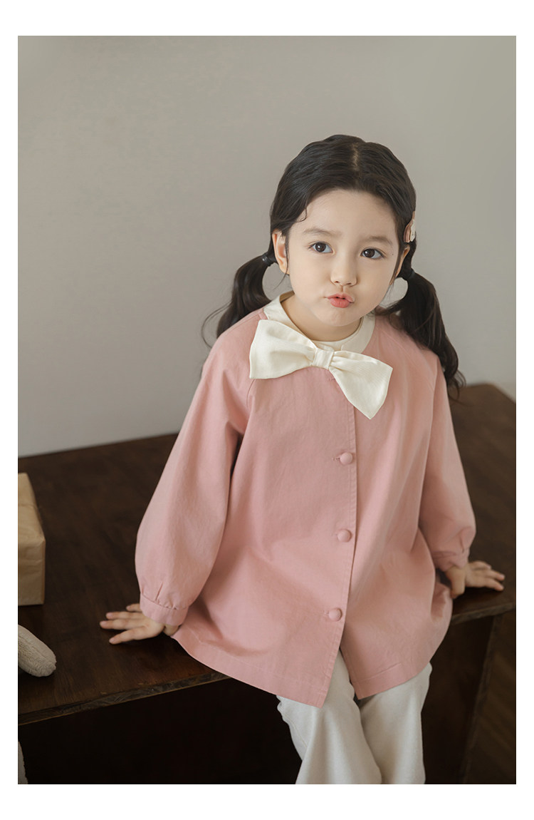 Wuri Boo Girl의 달콤하고 섬세한 활 코트 중간 길이의 가을 어린이 명암 칼라 캐주얼 코트