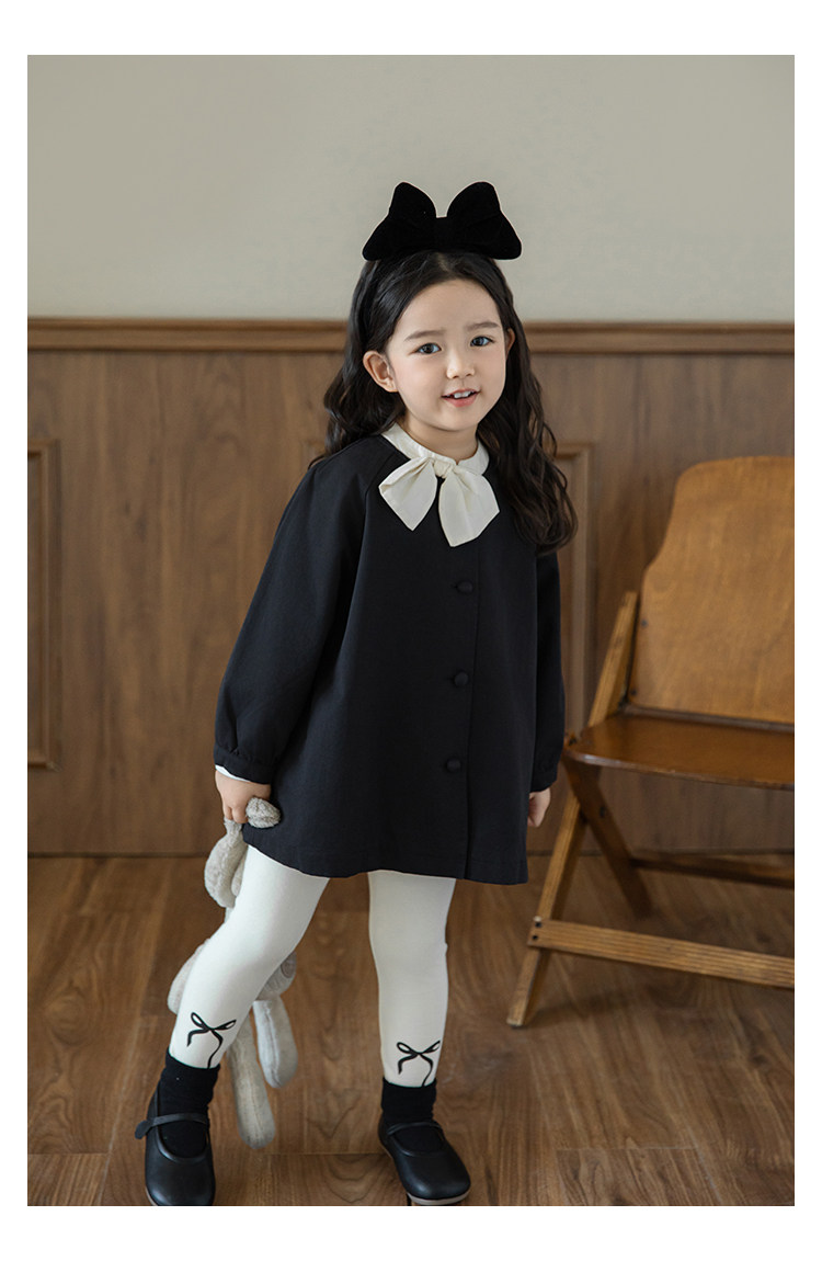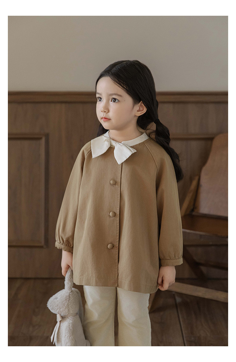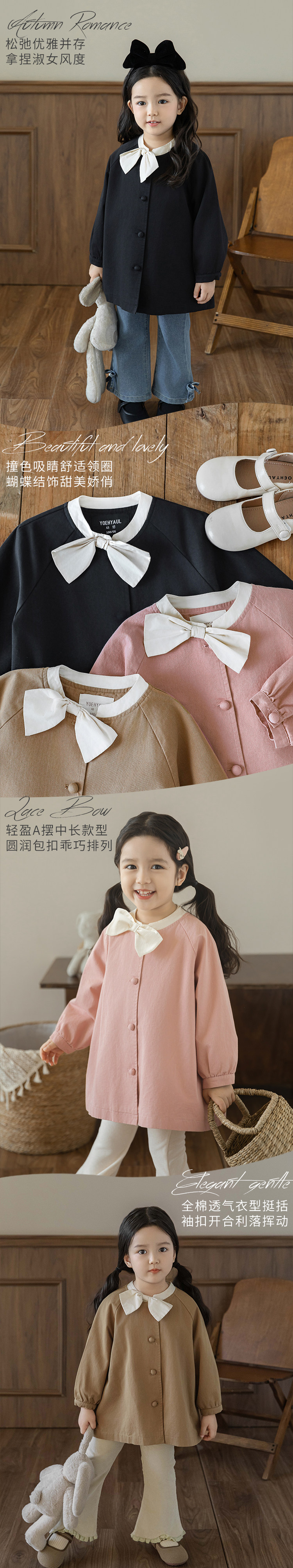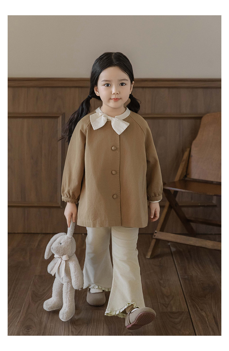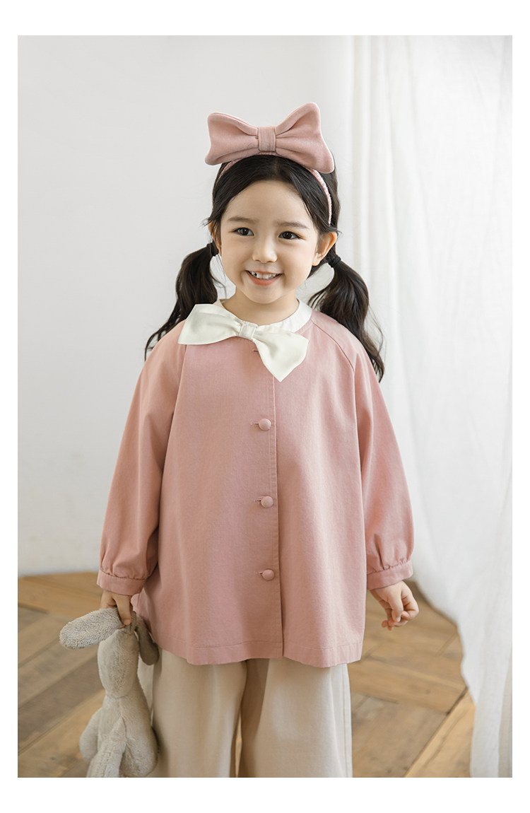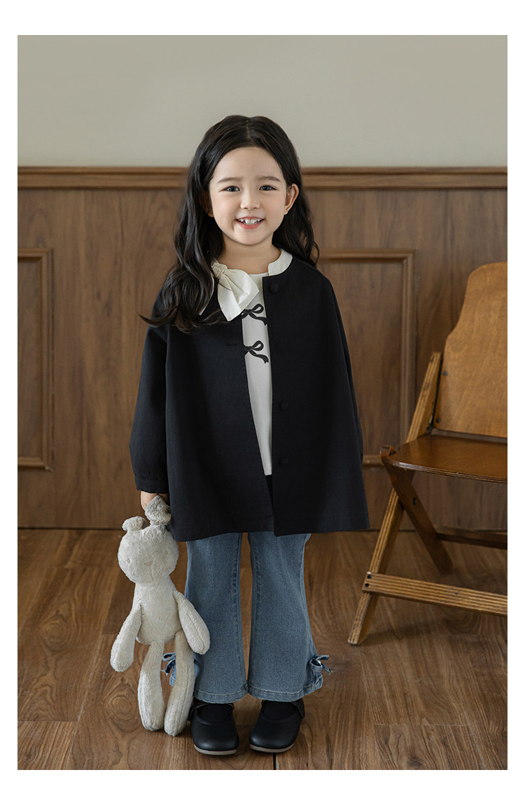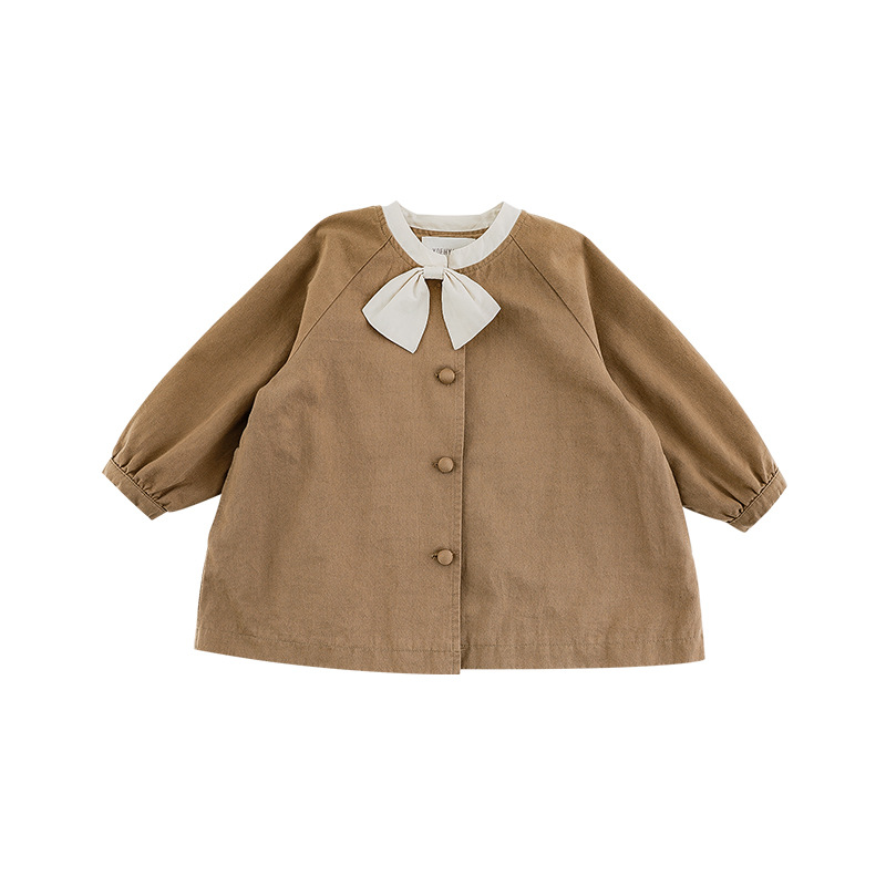Wuri Boo Girl의 달콤하고 섬세한 활 코트 중간 길이의 가을 어린이 명암 칼라 캐주얼 코트