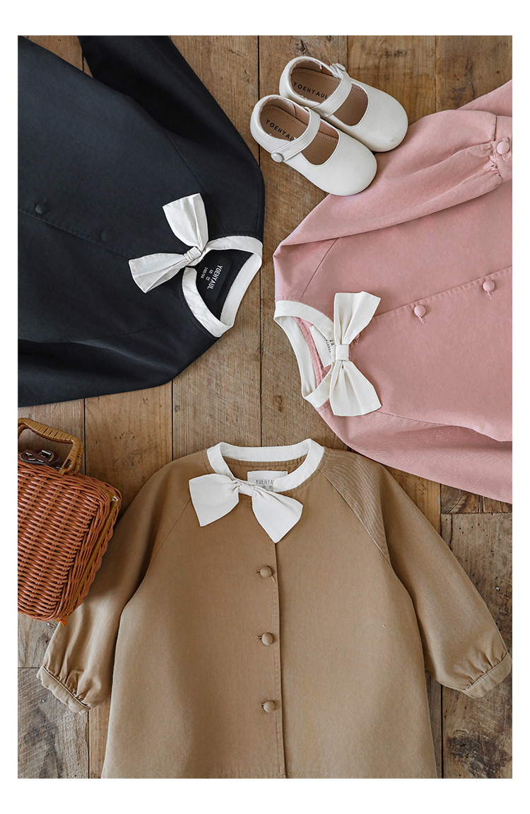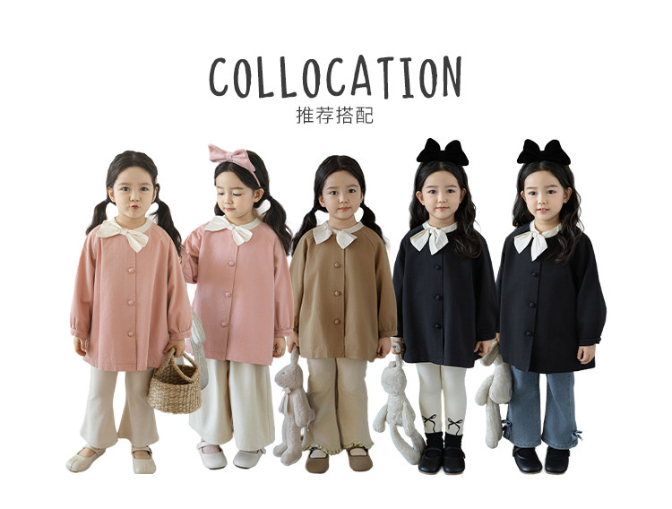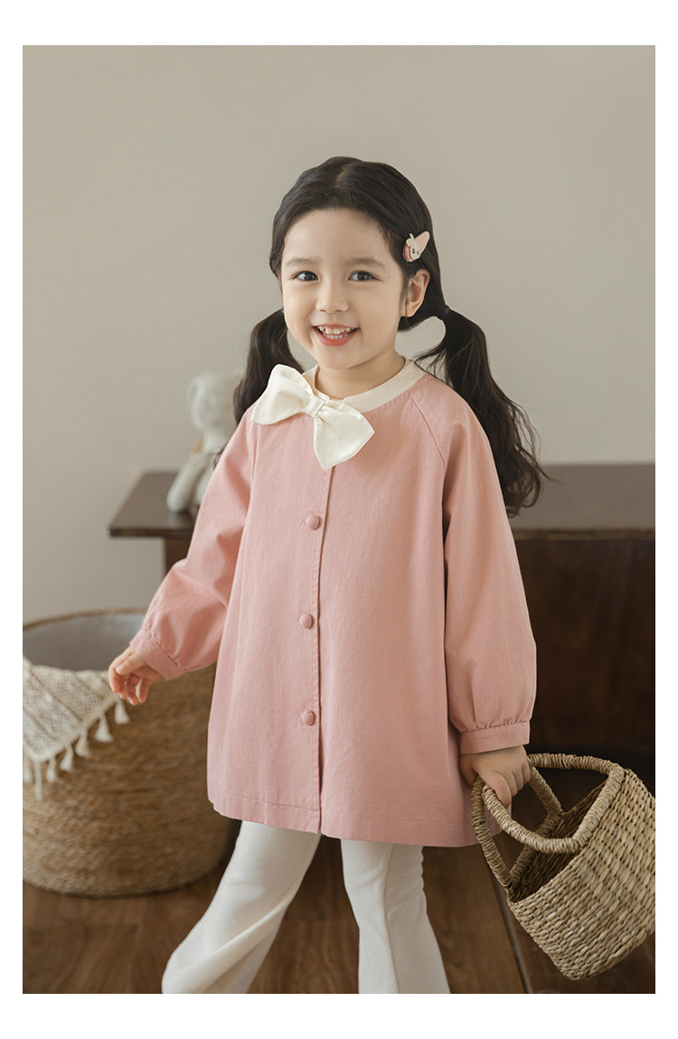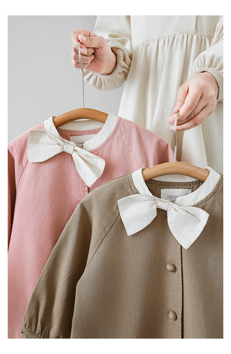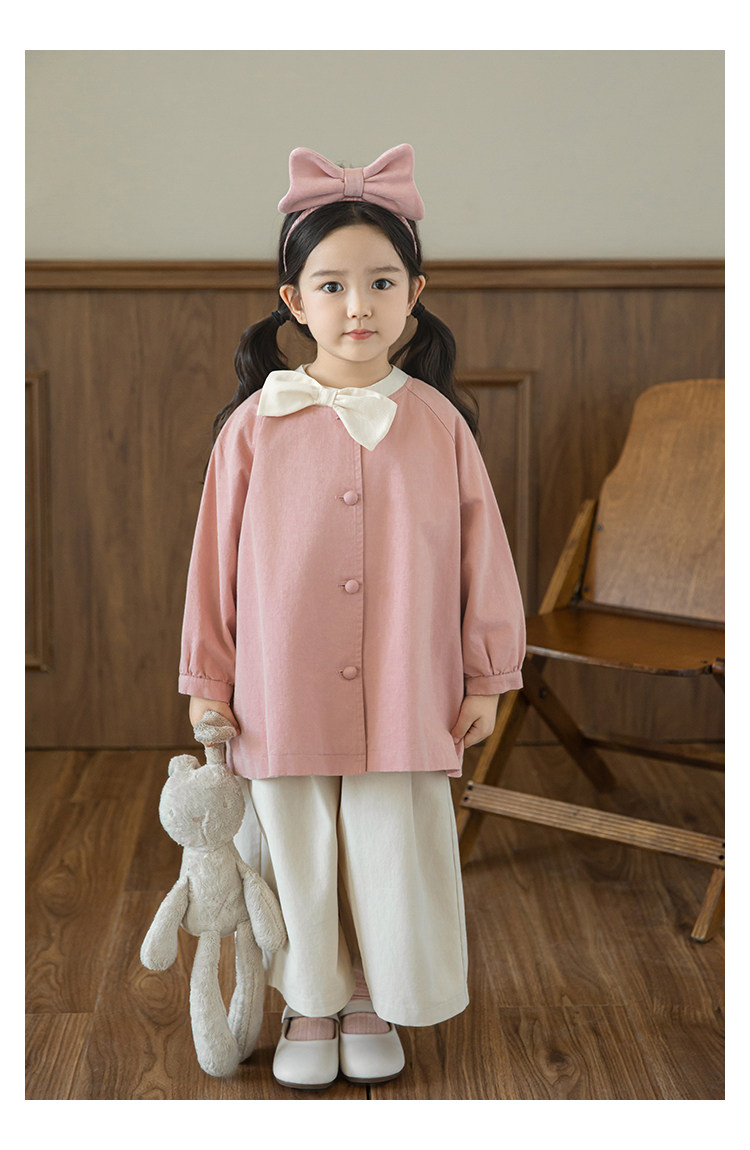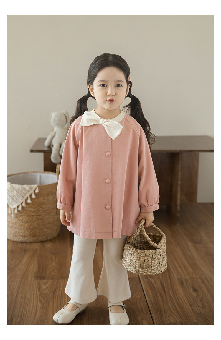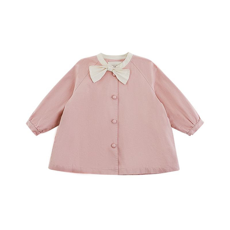 Wuri Boo Girl의 달콤하고 섬세한 활 코트 중간 길이의 가을 어린이 명암 칼라 캐주얼 코트