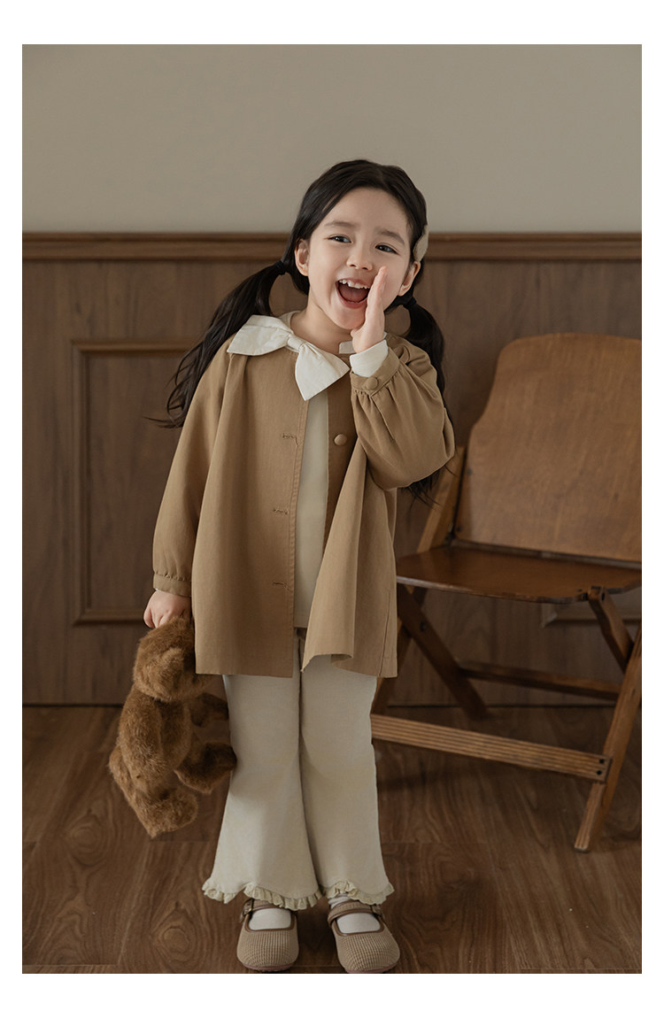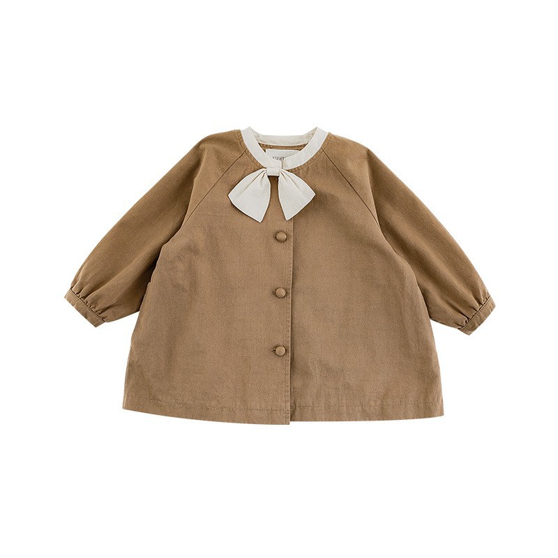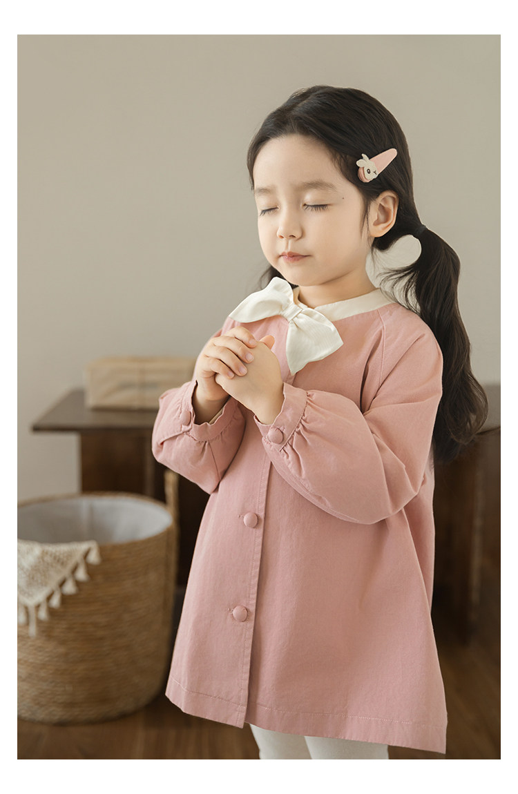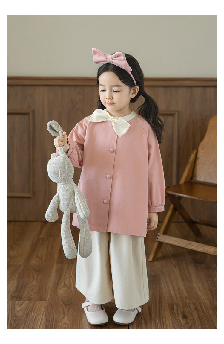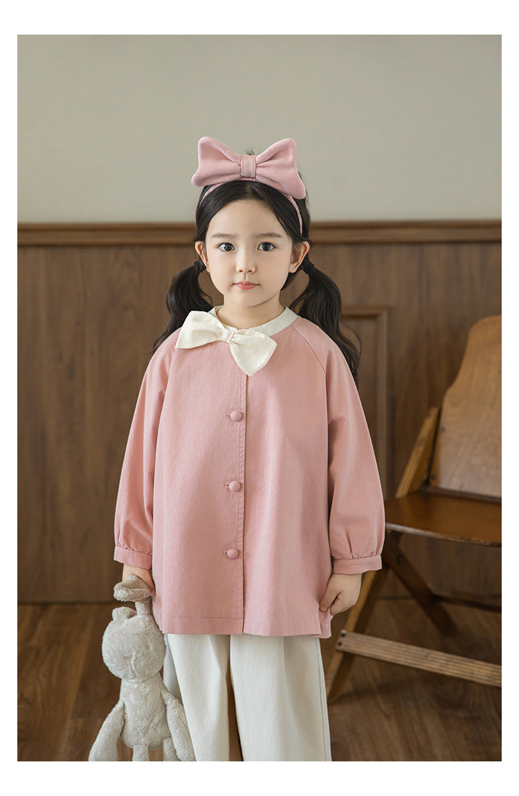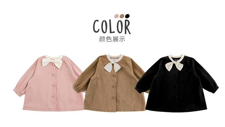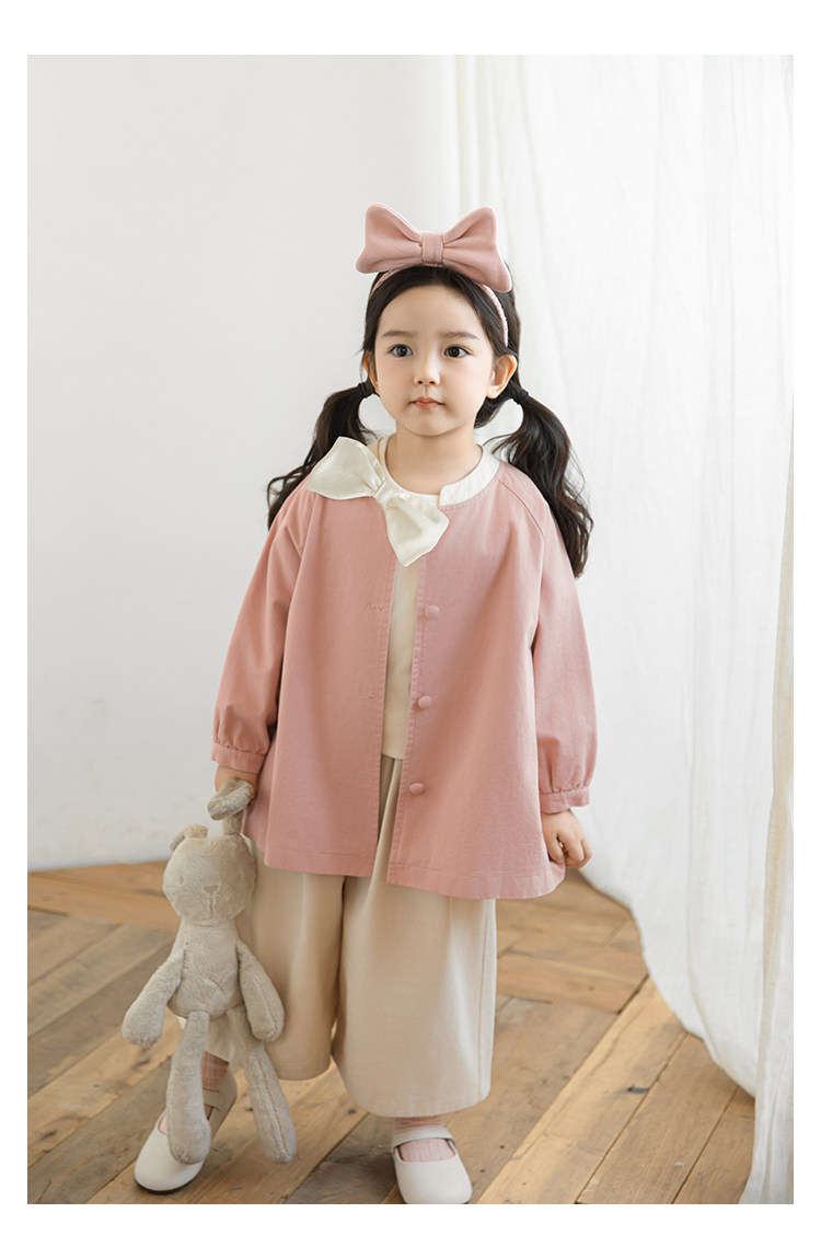 Wuri Boo Girl의 달콤하고 섬세한 활 코트 중간 길이의 가을 어린이 명암 칼라 캐주얼 코트