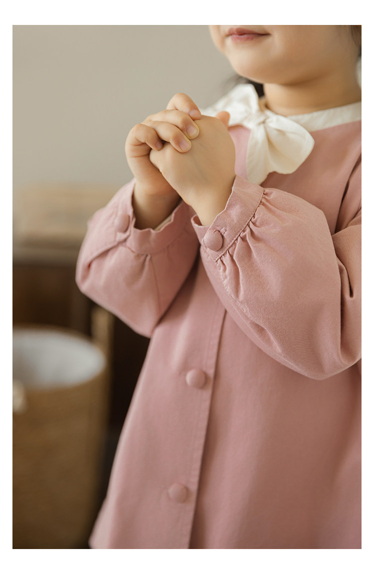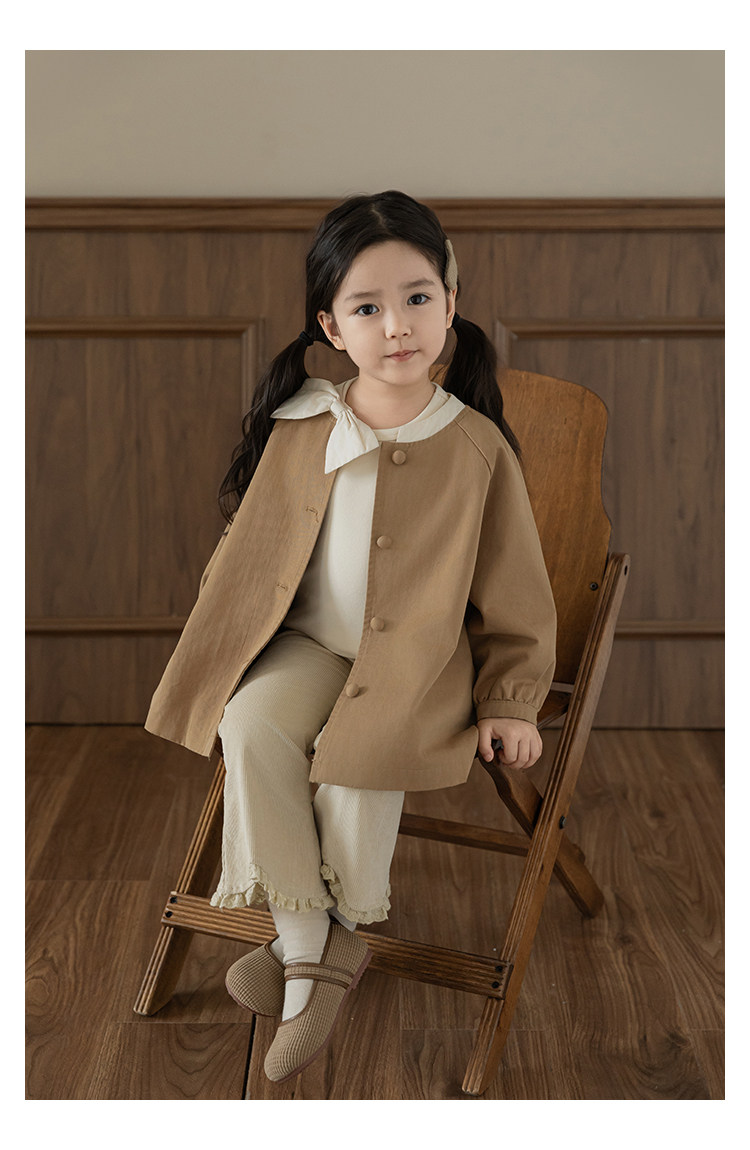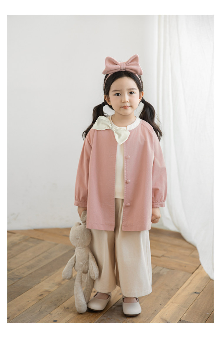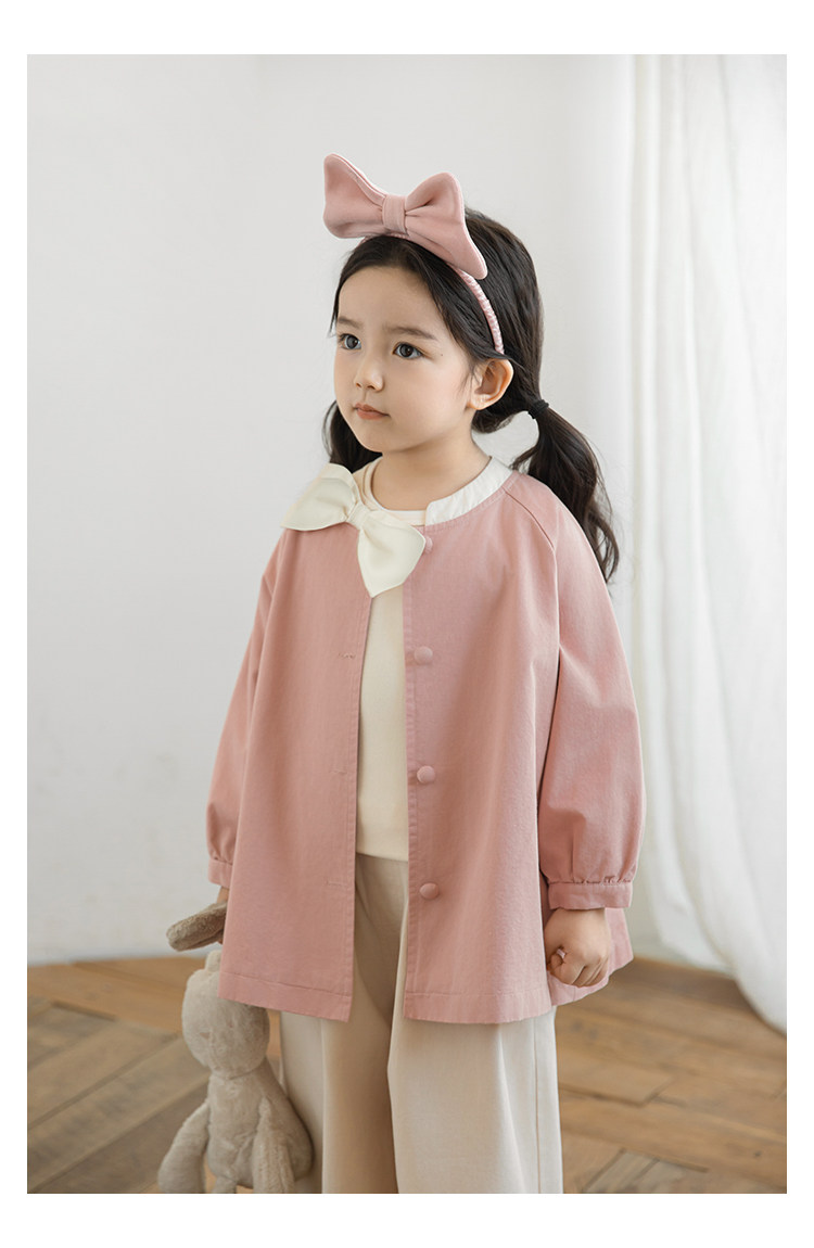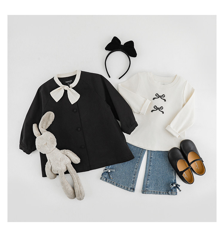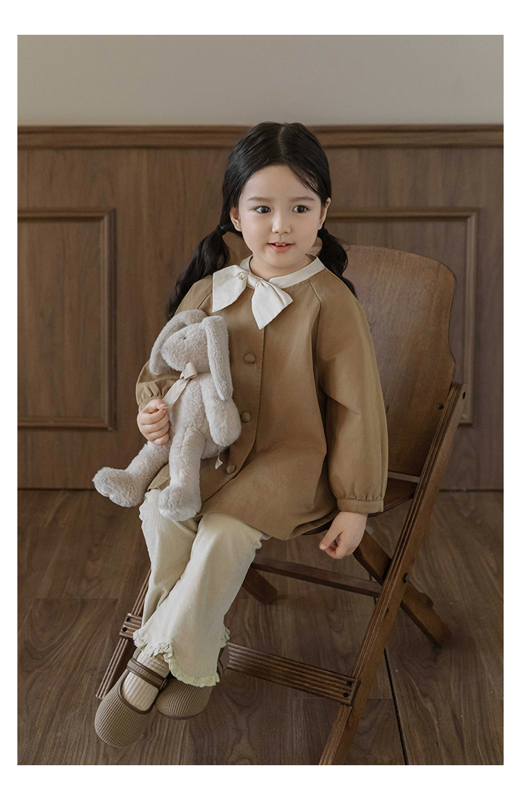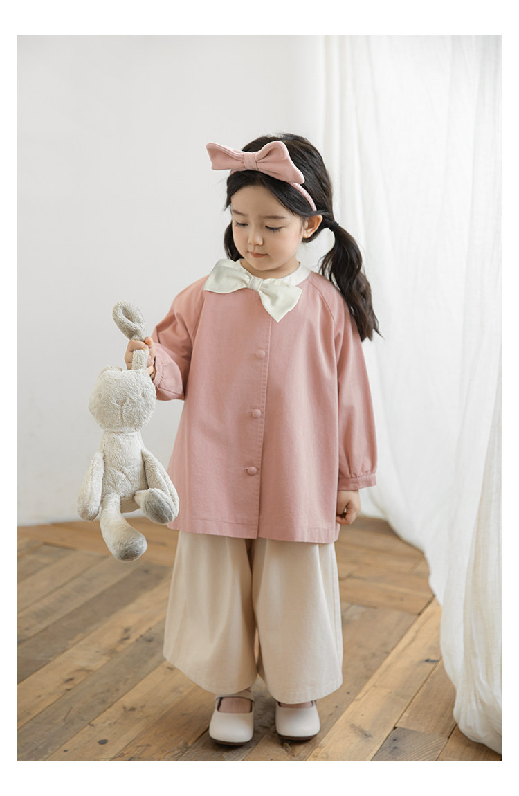 Wuri Boo Girl의 달콤하고 섬세한 활 코트 중간 길이의 가을 어린이 명암 칼라 캐주얼 코트