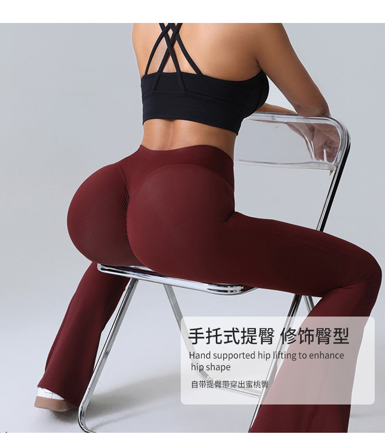 국경 간 복숭아 벨 바지 여성 요가 바지 높은 허리 엉덩이 리프팅 타이트 바지 넓은 다리 바지 여성을위한 빠른 건조 달리기 스포츠 바지