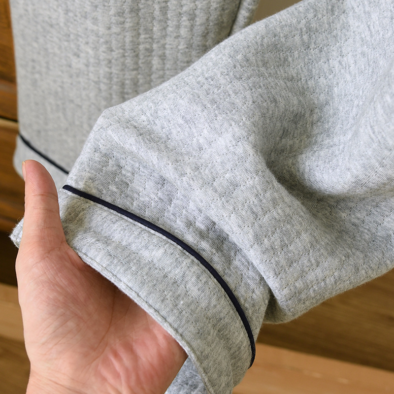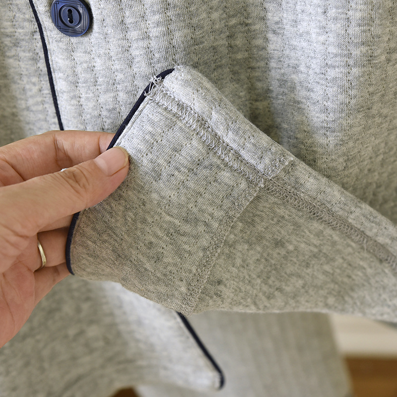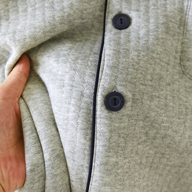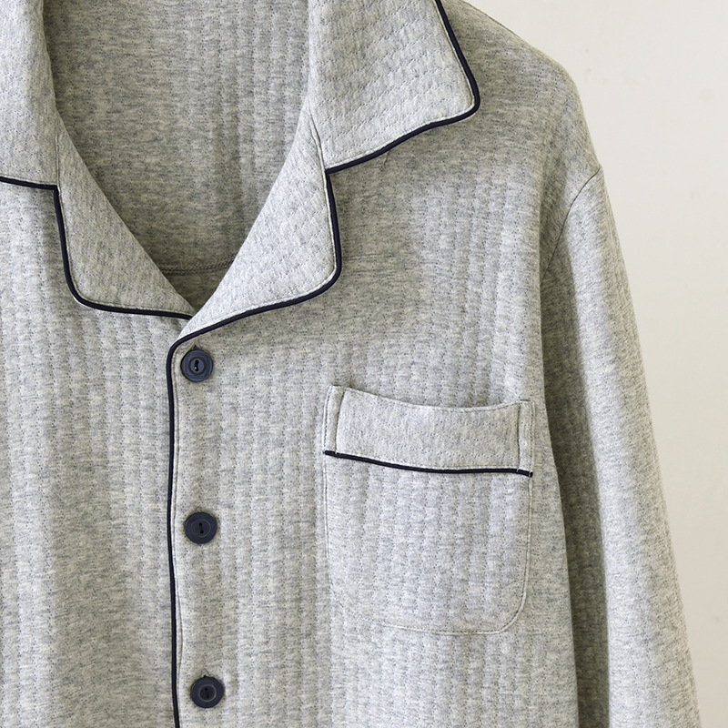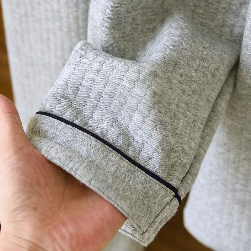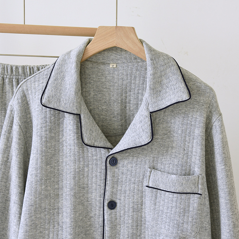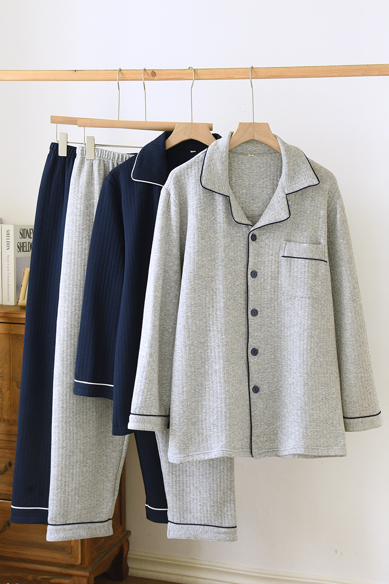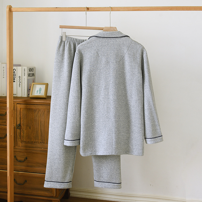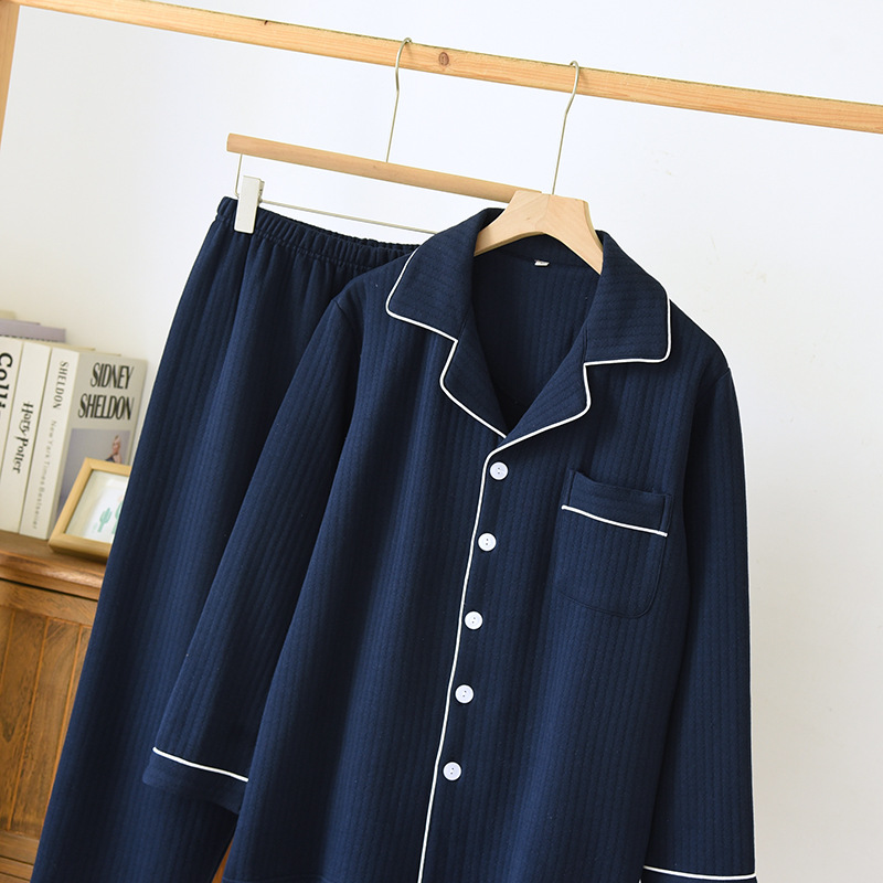 가을과 겨울 면화 남성용 잠옷 다크 스트립 에어 레이어 플러스 사이즈 파자마 긴팔 바지 면화 홈 옷 중간 두께의 단순