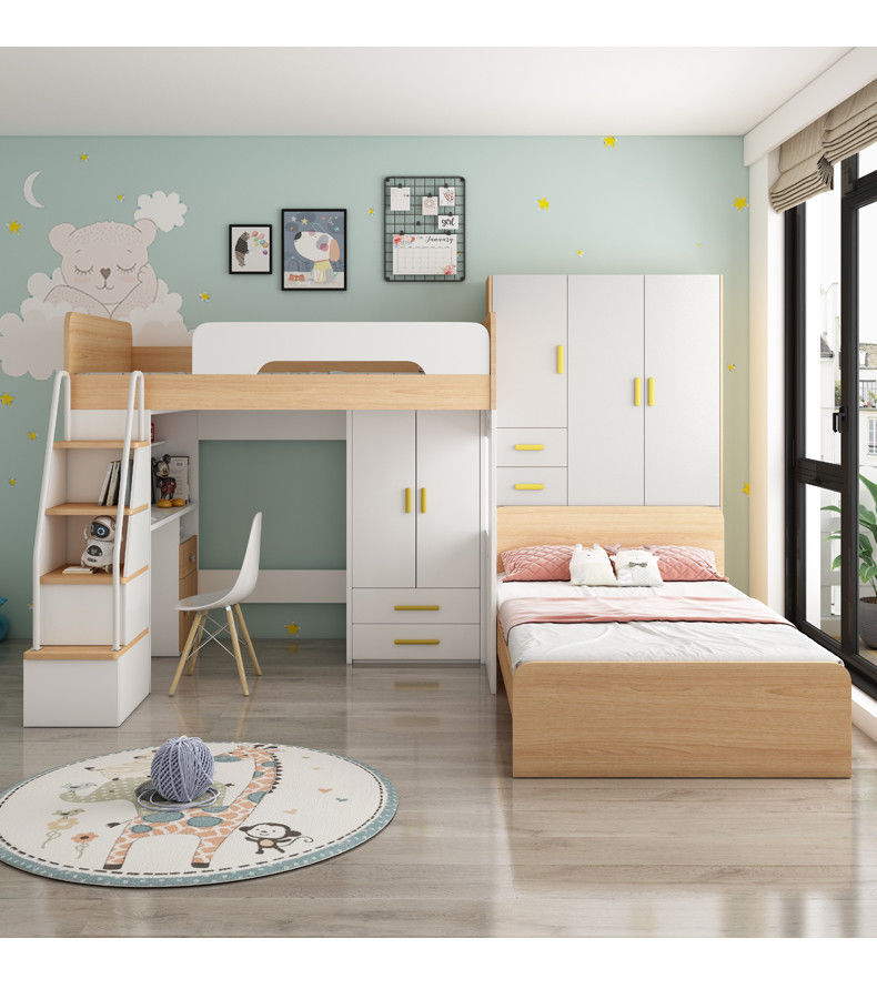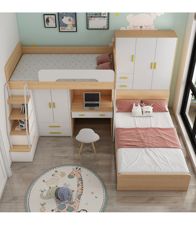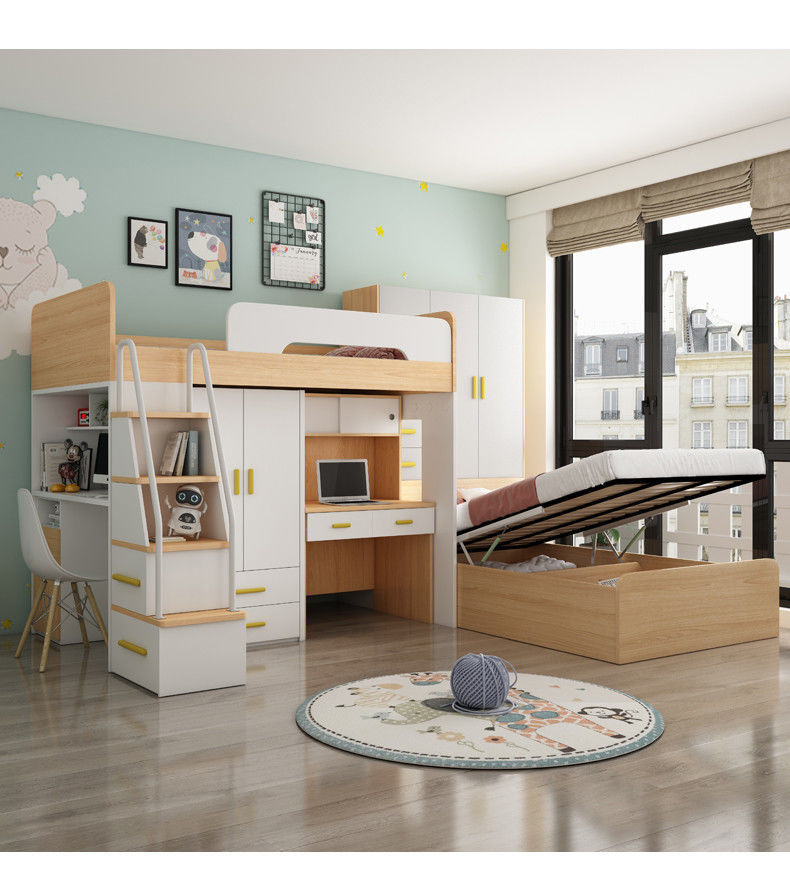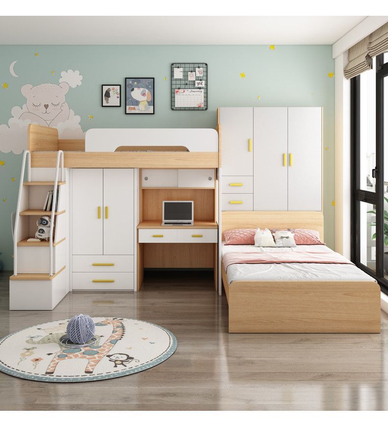 옷장 침대 이층 침대는 높고 낮은 침대입니다. 어린이 다기능 조합 데스크 통합 계단 침대