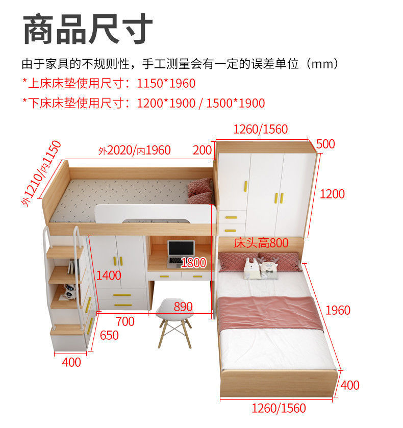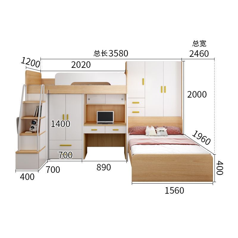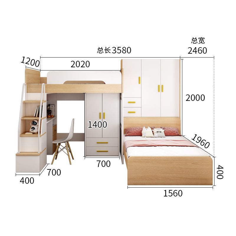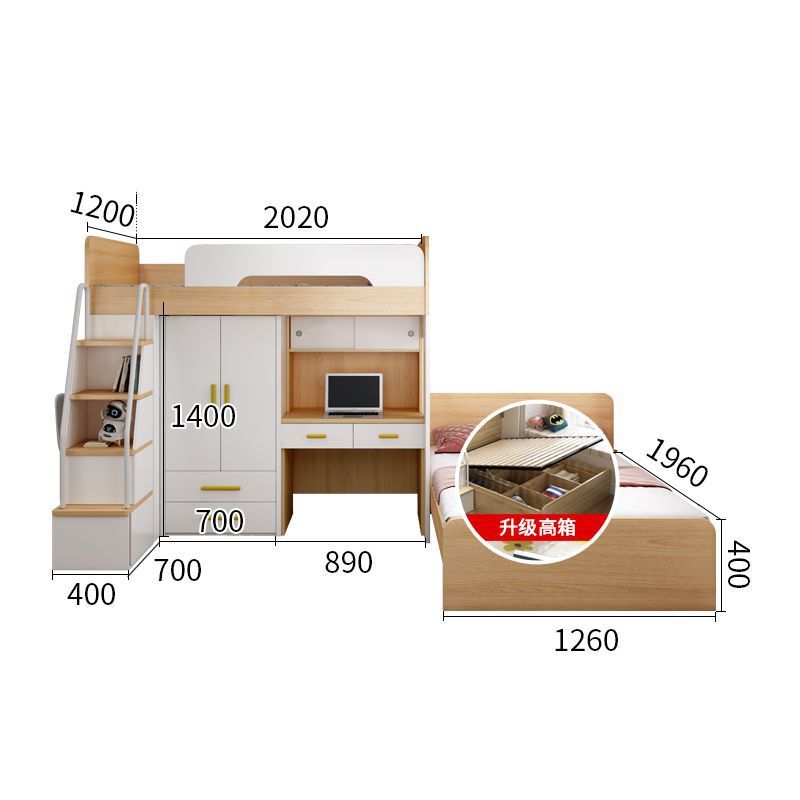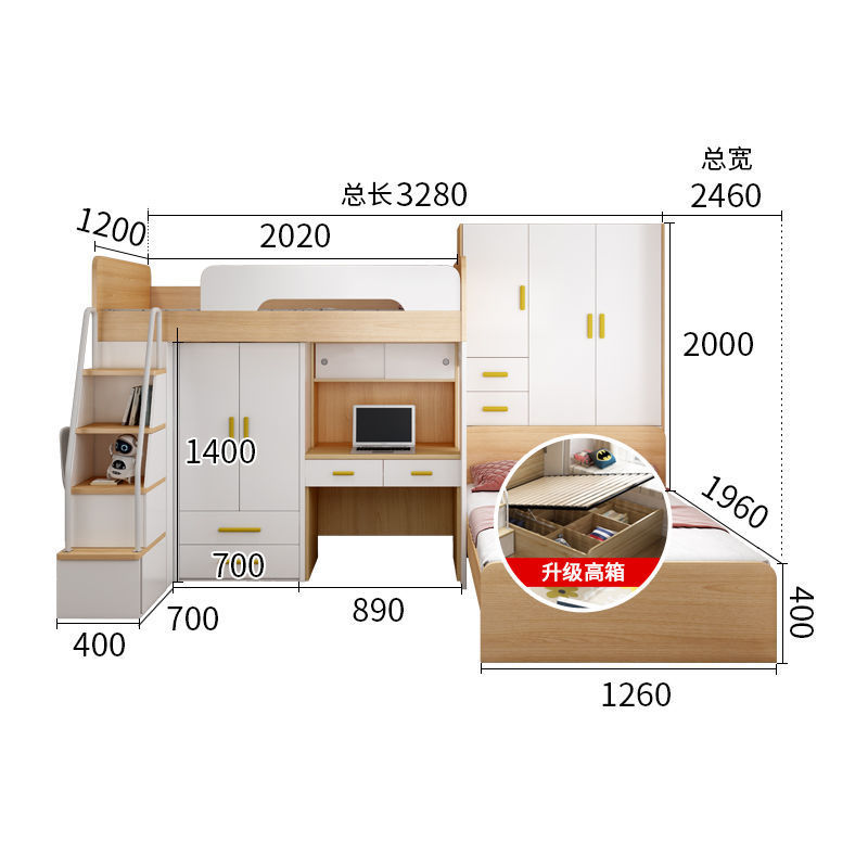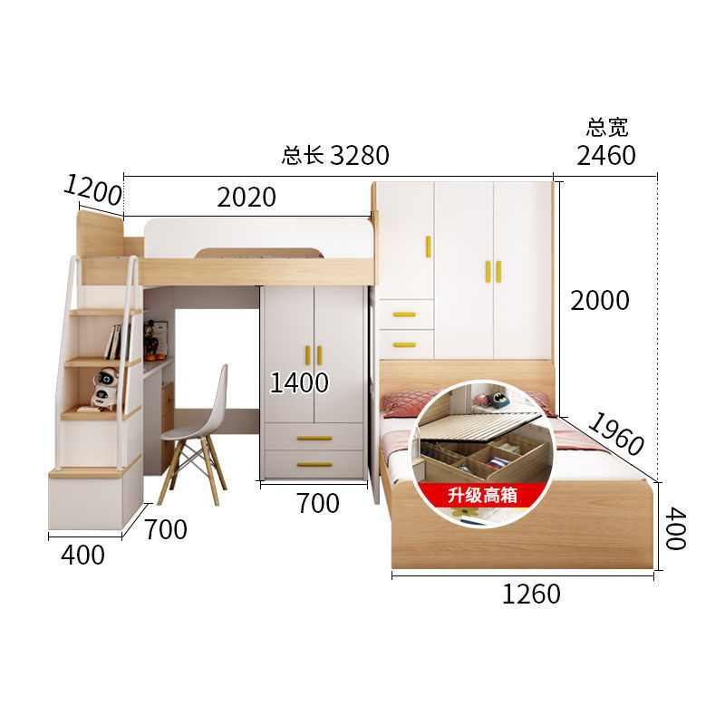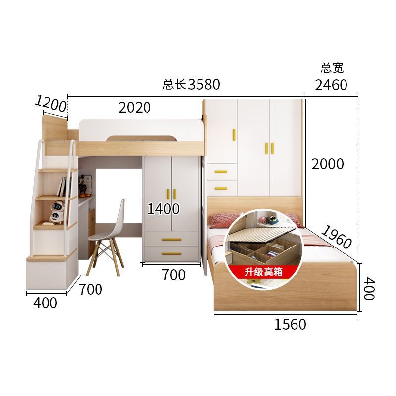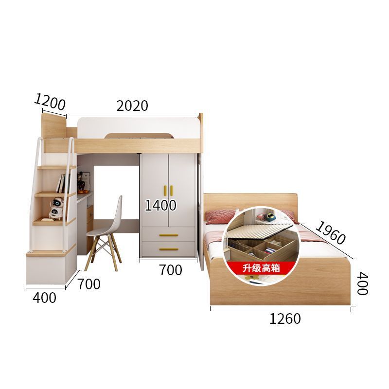 • 높은 침대 + 옷장 + 책상 + 1.2 높은 상자 아래 침대