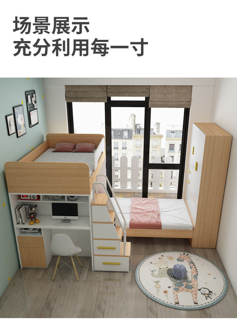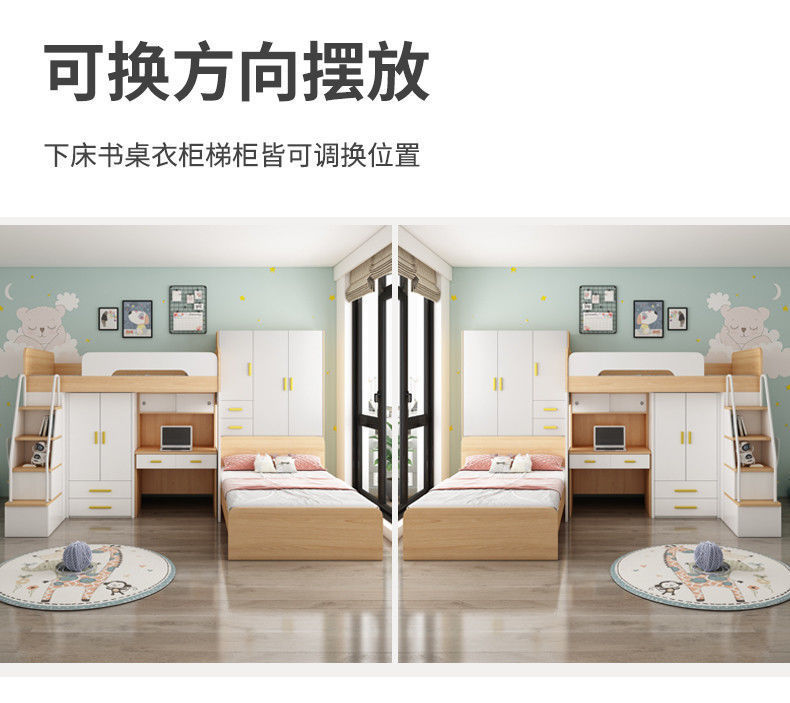 옷장 침대 이층 침대는 높고 낮은 침대입니다. 어린이 다기능 조합 데스크 통합 계단 침대스토어 가기