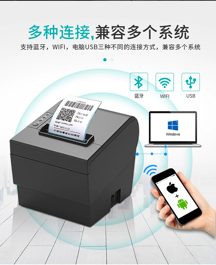 80mm 감열식 라벨 프린터 블루투스 연결 자가접착식 바코드 영수증 상업용 프린터스토어 가기
