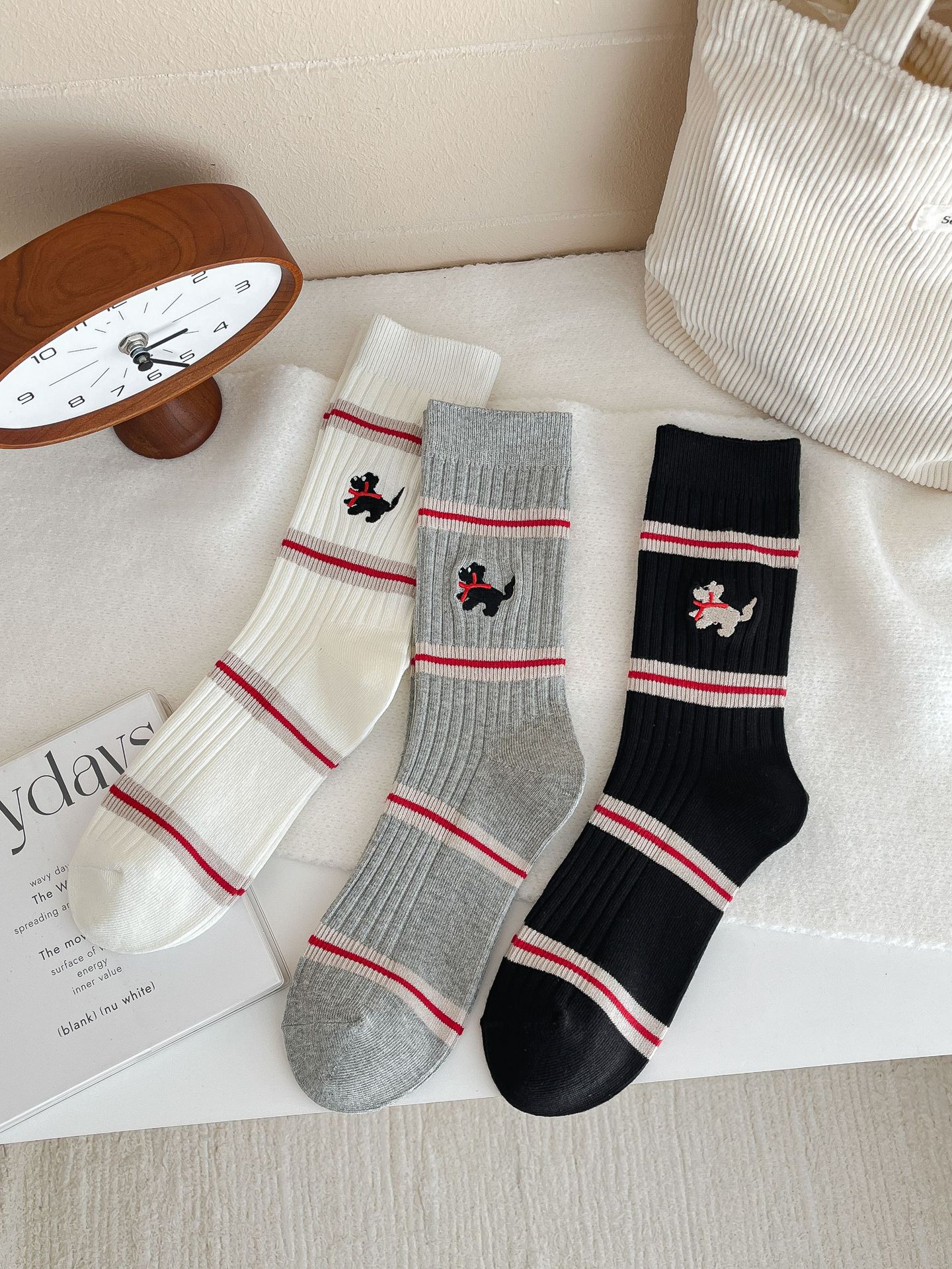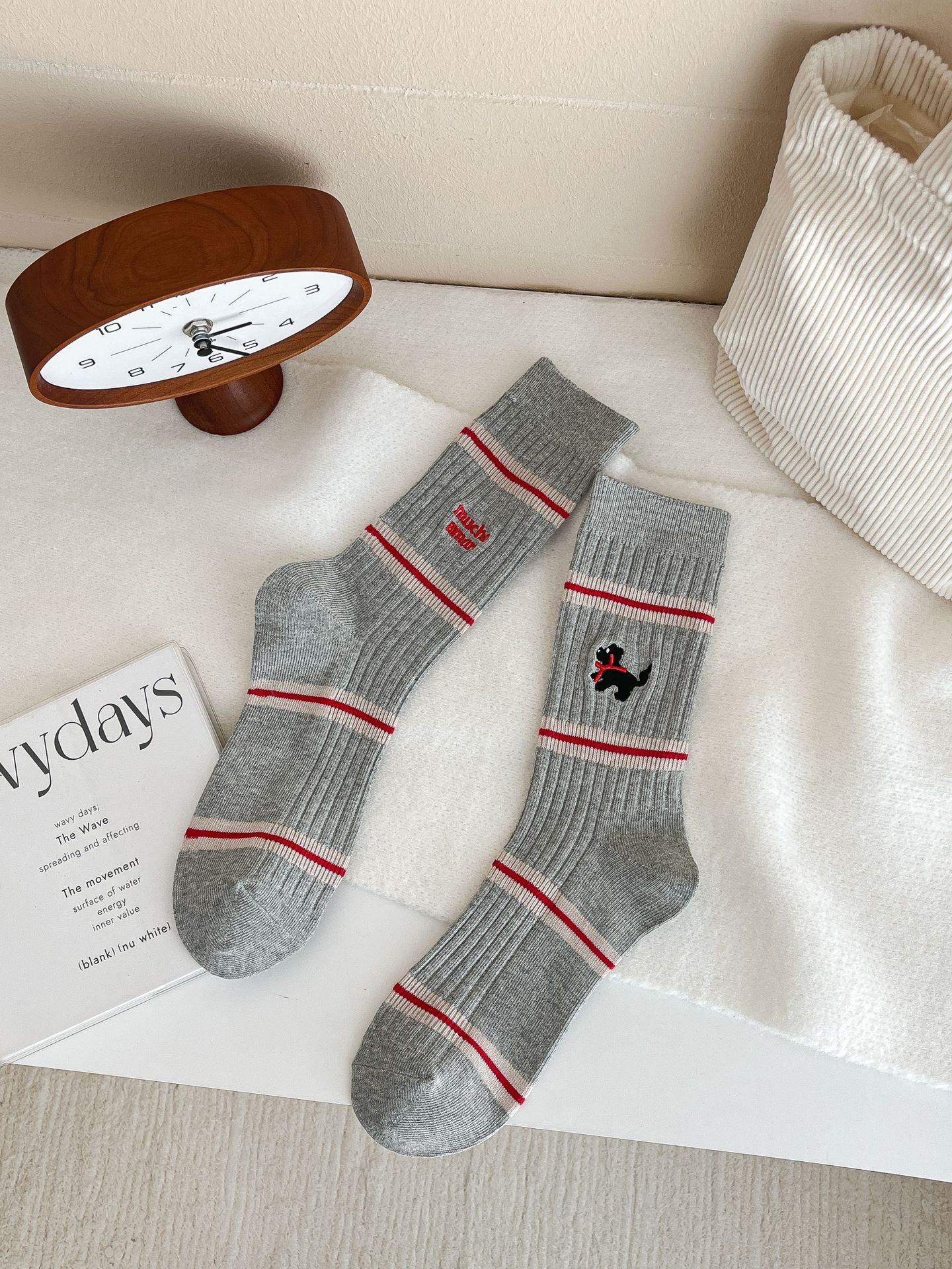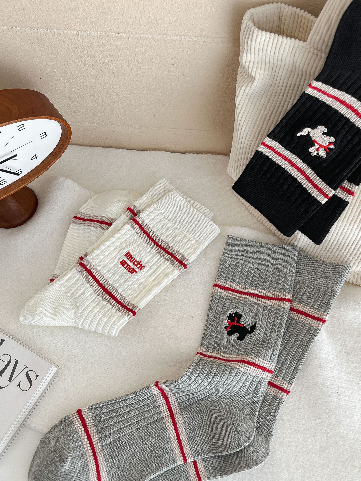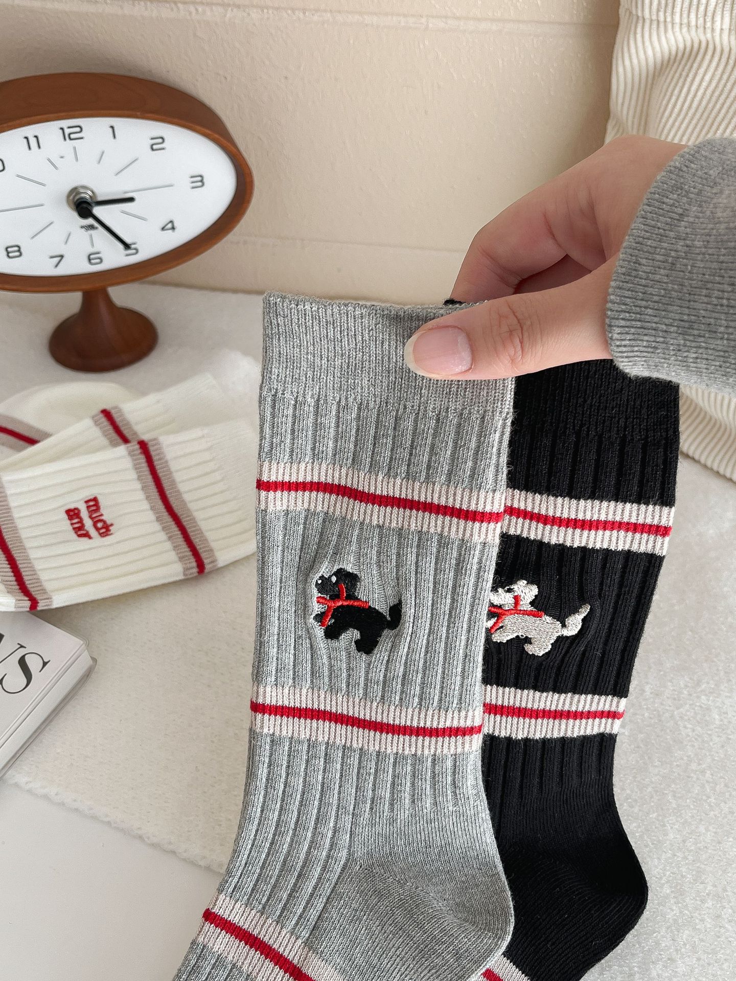 최근 차오 사랑 착용! TB 대학 스타일 스태킹 양말 AB 강아지 영어 수 놓은 JK 스타일 면 양말