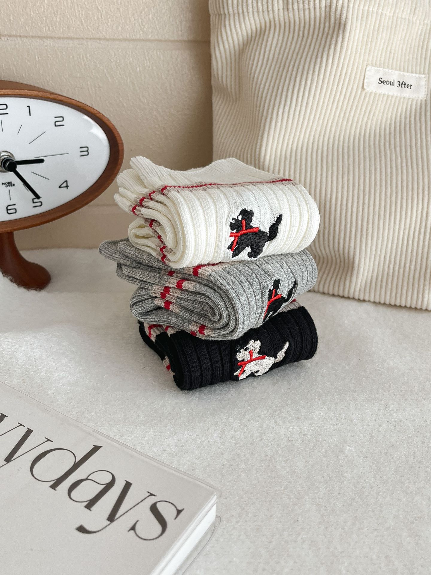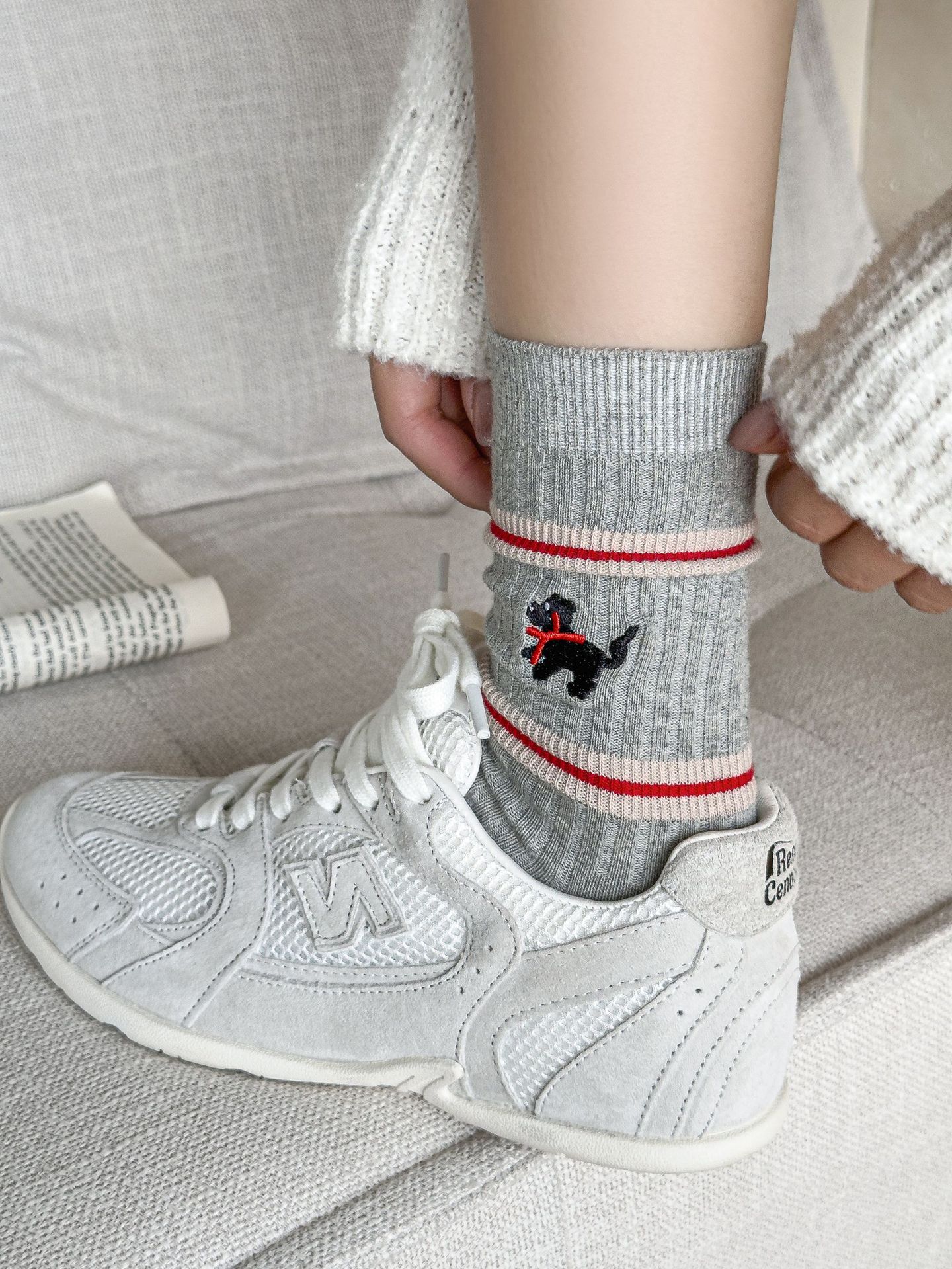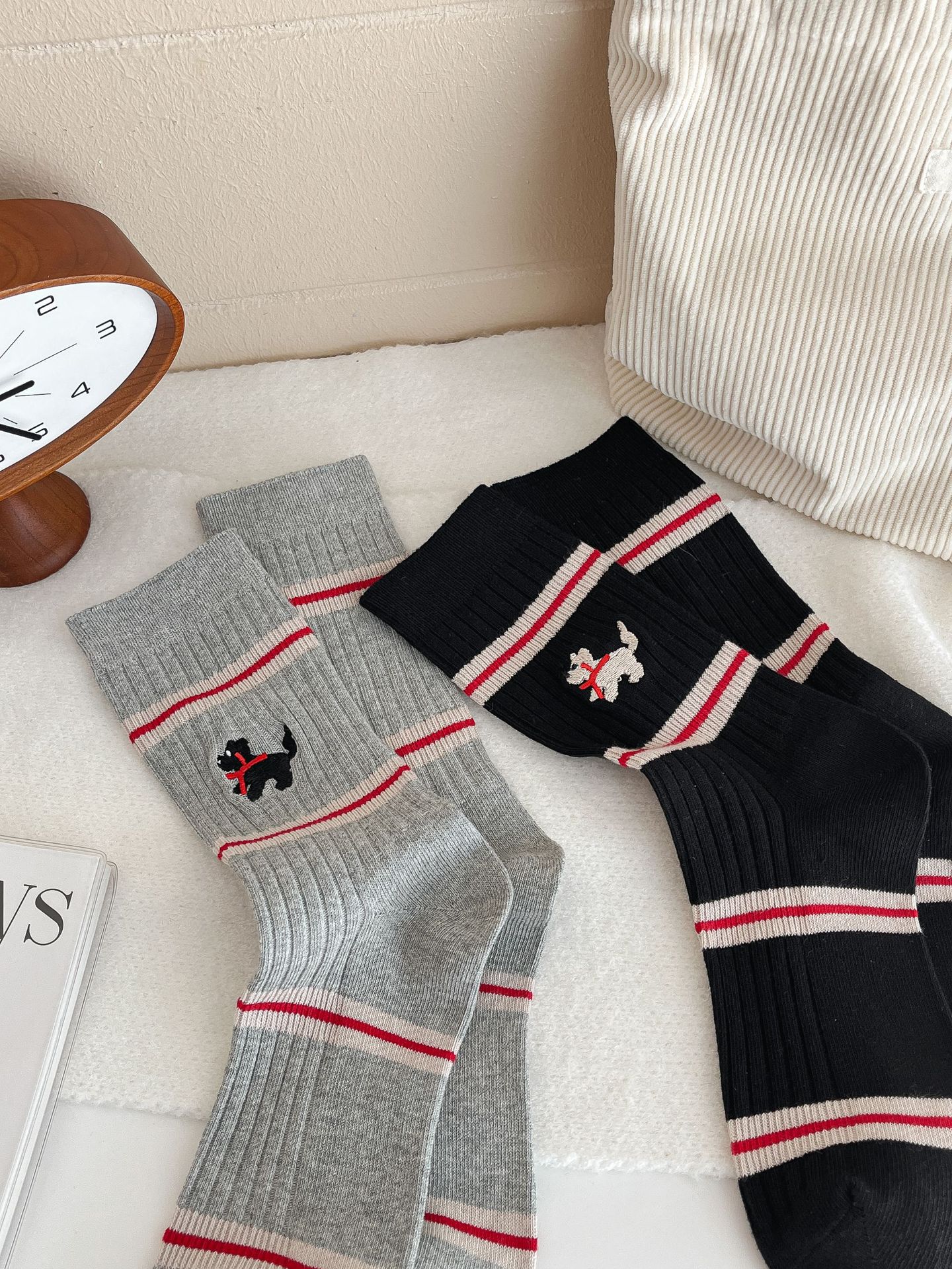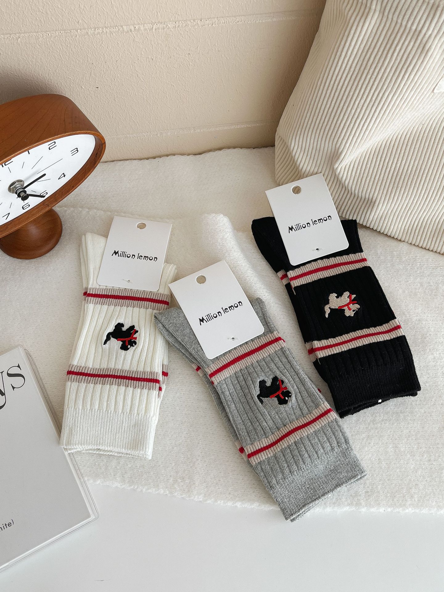 최근 차오 사랑 착용! TB 대학 스타일 스태킹 양말 AB 강아지 영어 수 놓은 JK 스타일 면 양말