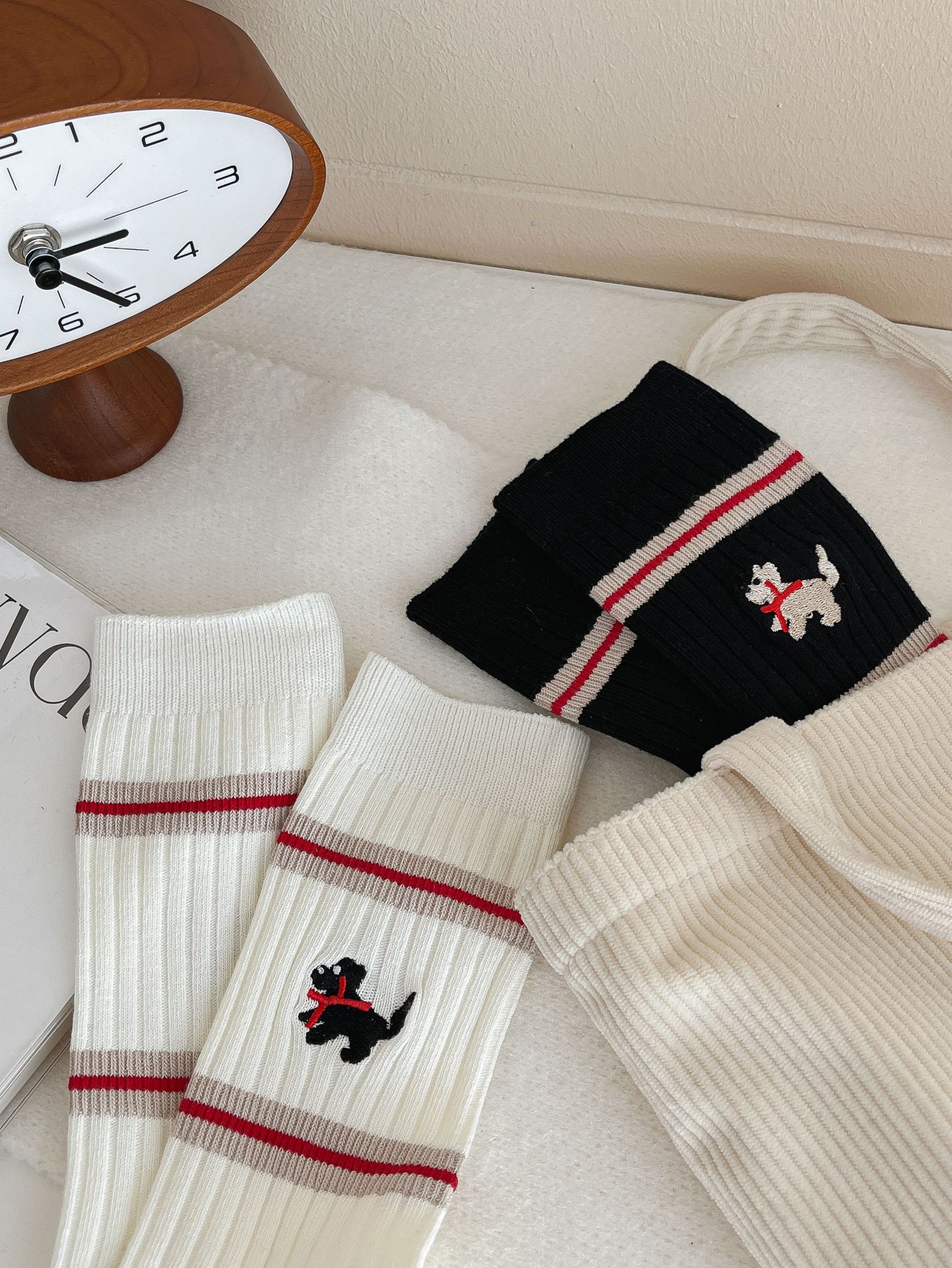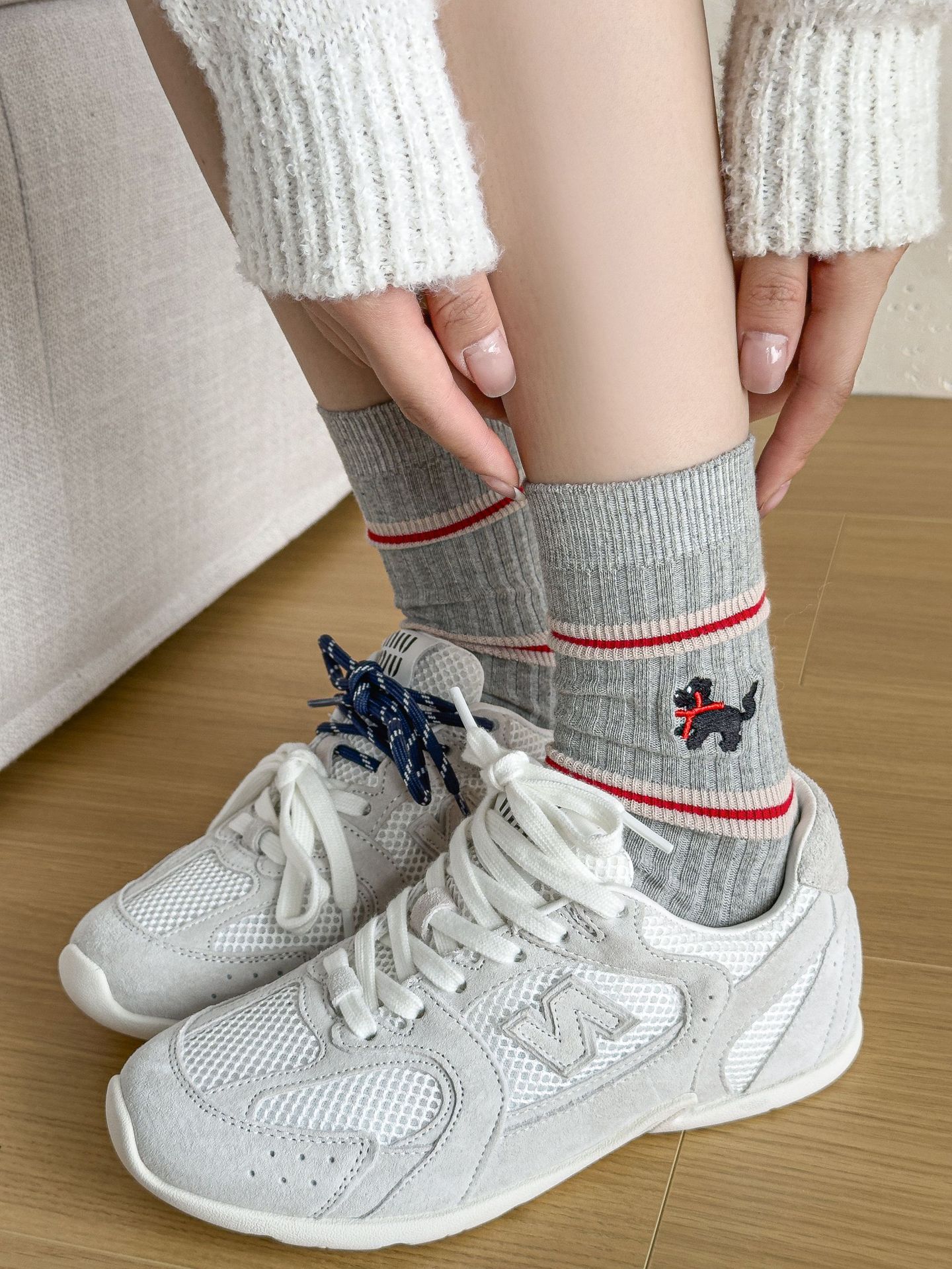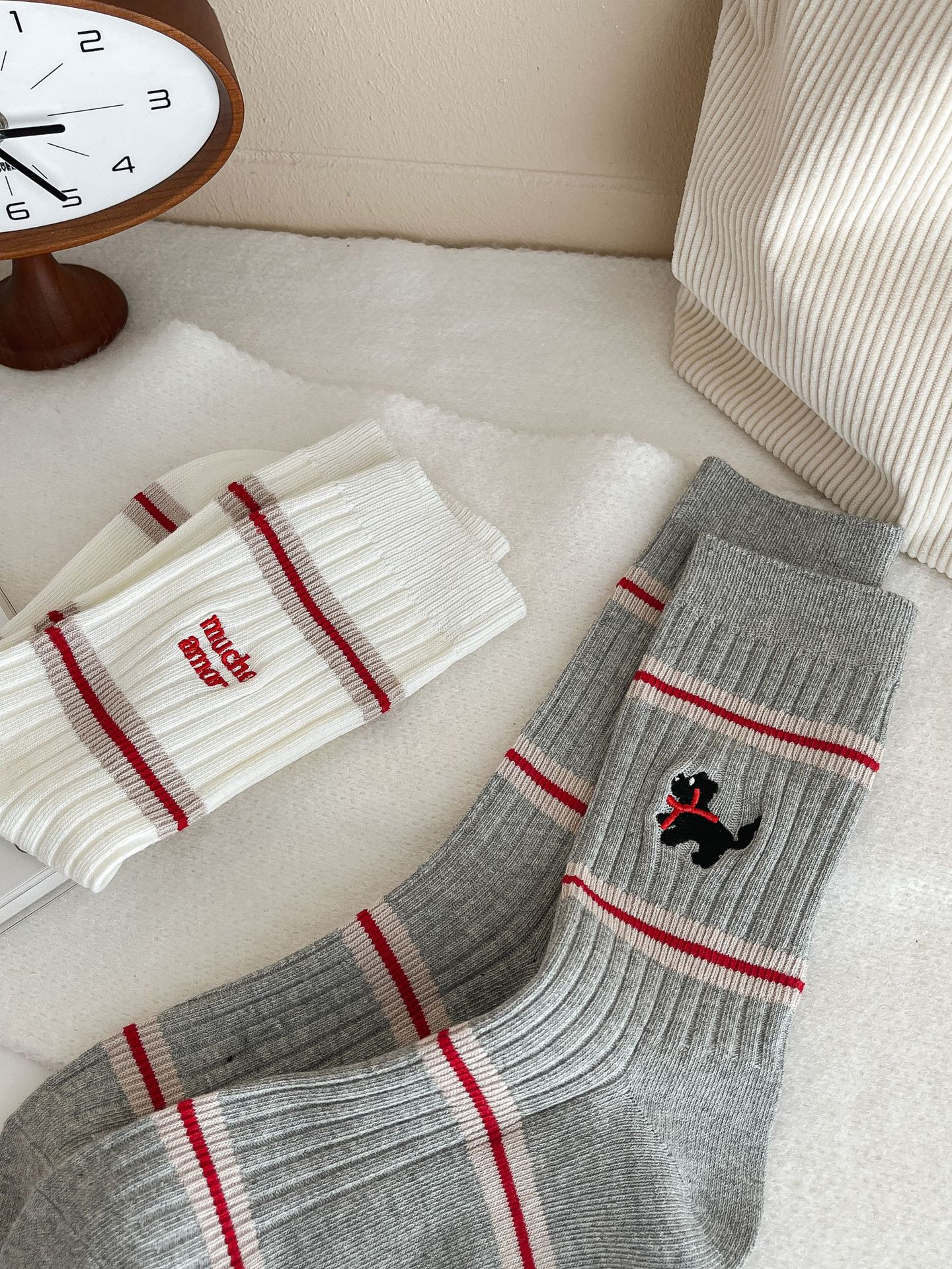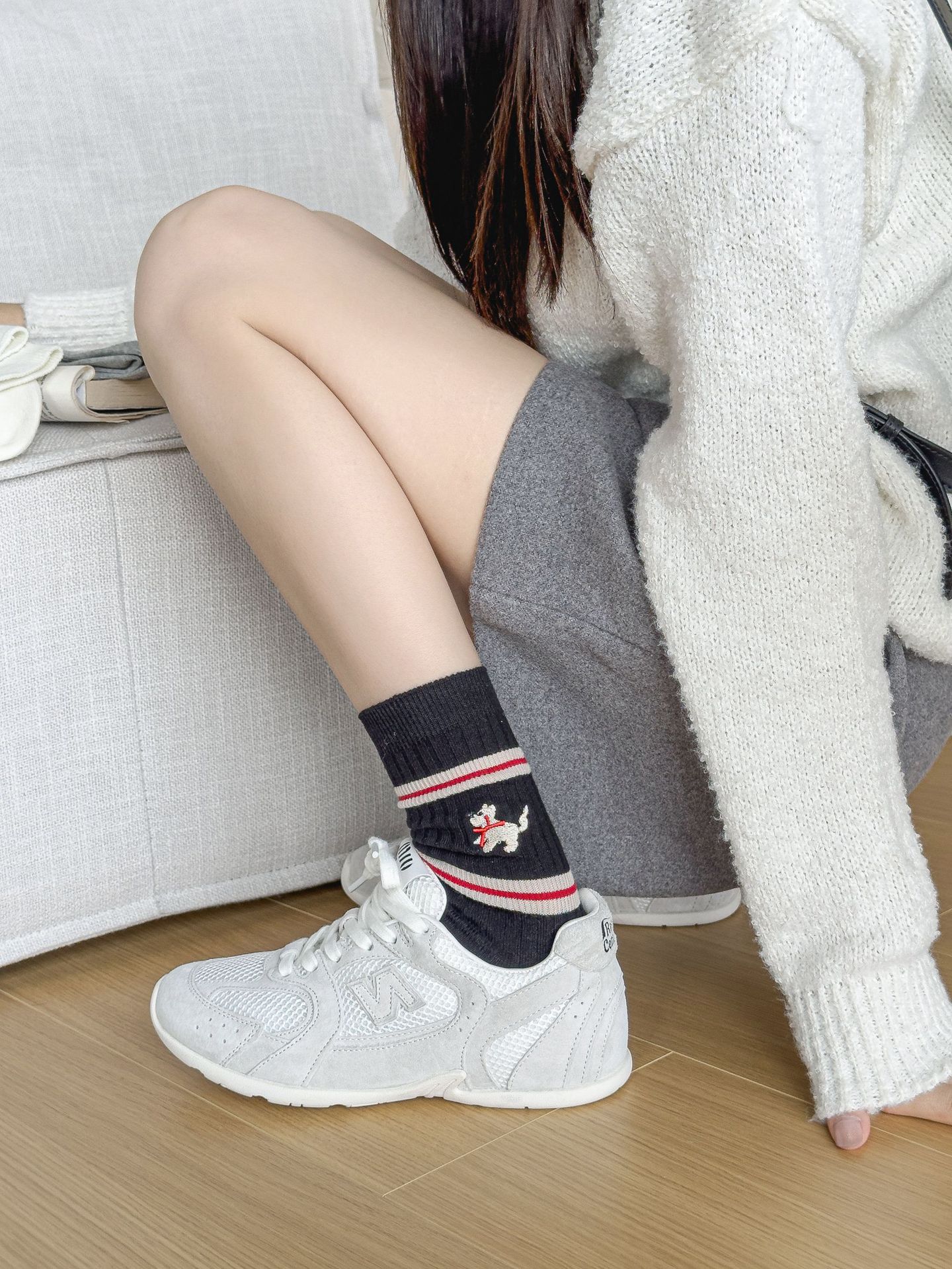 최근 차오 사랑 착용! TB 대학 스타일 스태킹 양말 AB 강아지 영어 수 놓은 JK 스타일 면 양말