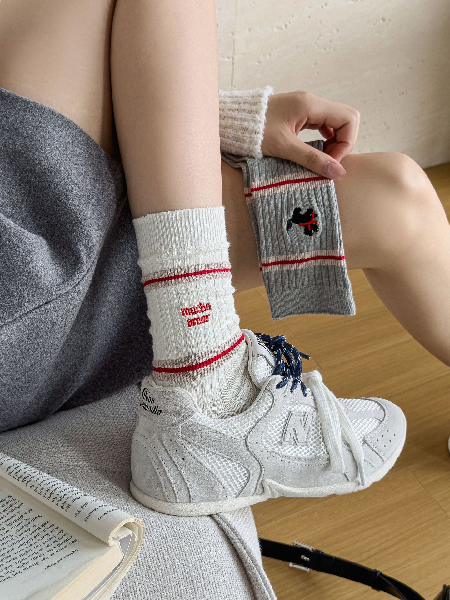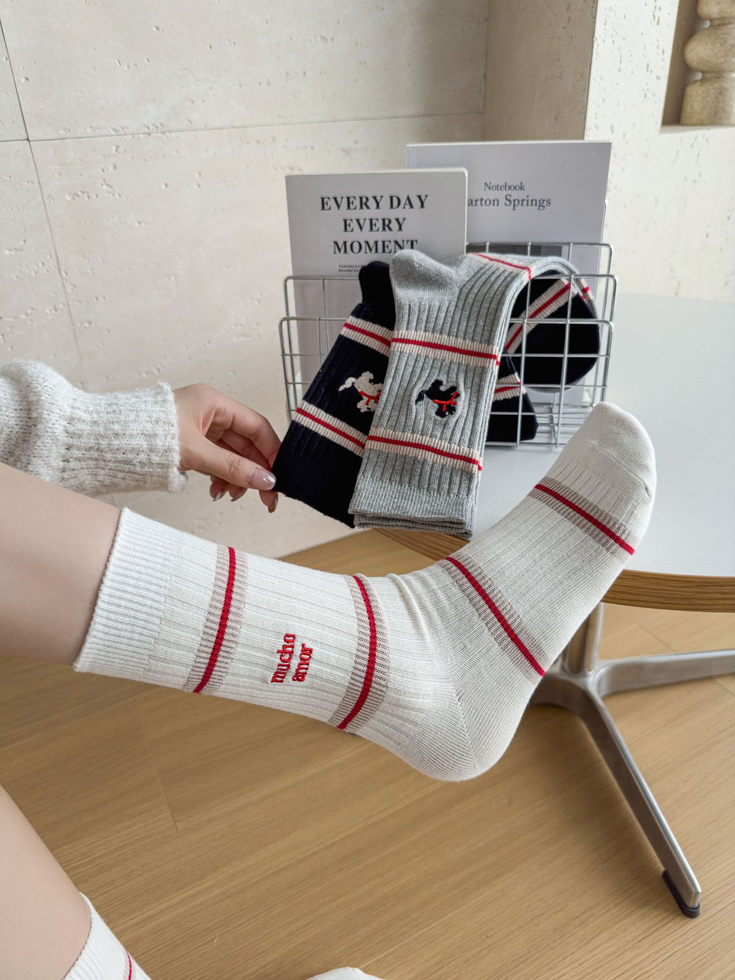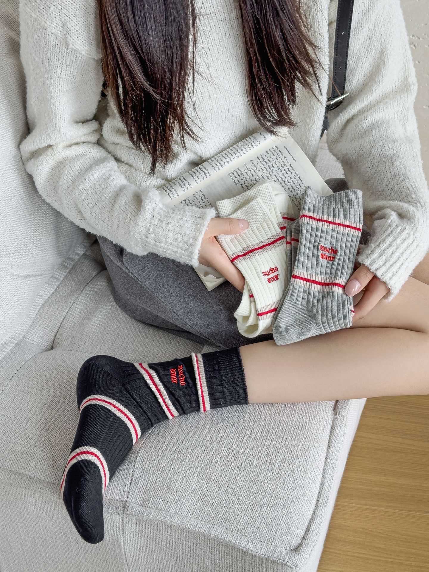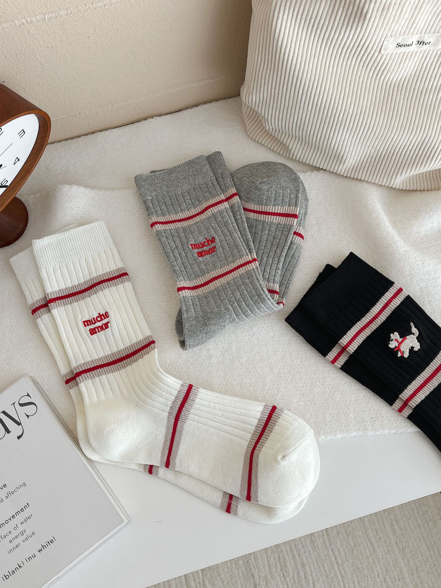 최근 차오 사랑 착용! TB 대학 스타일 스태킹 양말 AB 강아지 영어 수 놓은 JK 스타일 면 양말스토어 가기