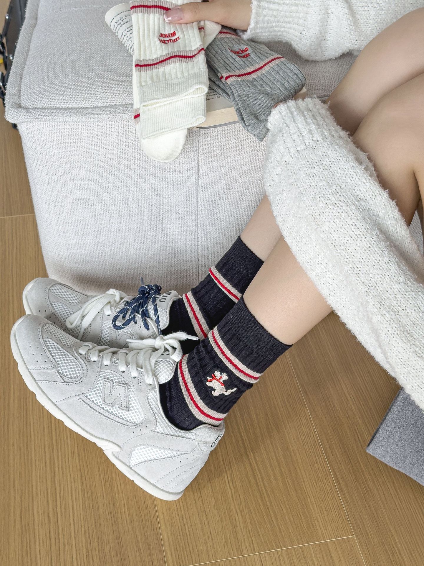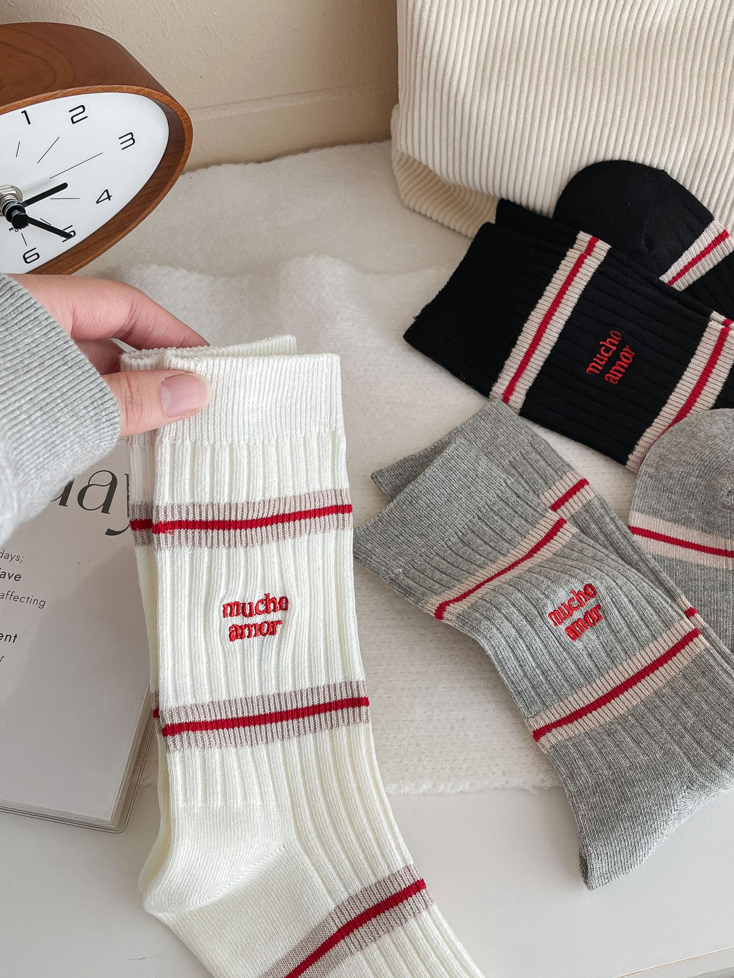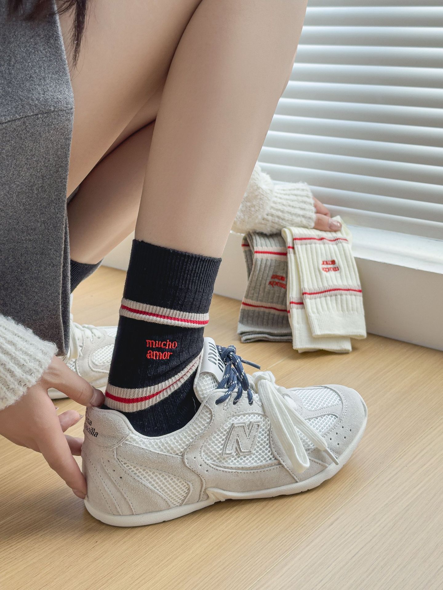 최근 차오 사랑 착용! TB 대학 스타일 스태킹 양말 AB 강아지 영어 수 놓은 JK 스타일 면 양말스토어 가기