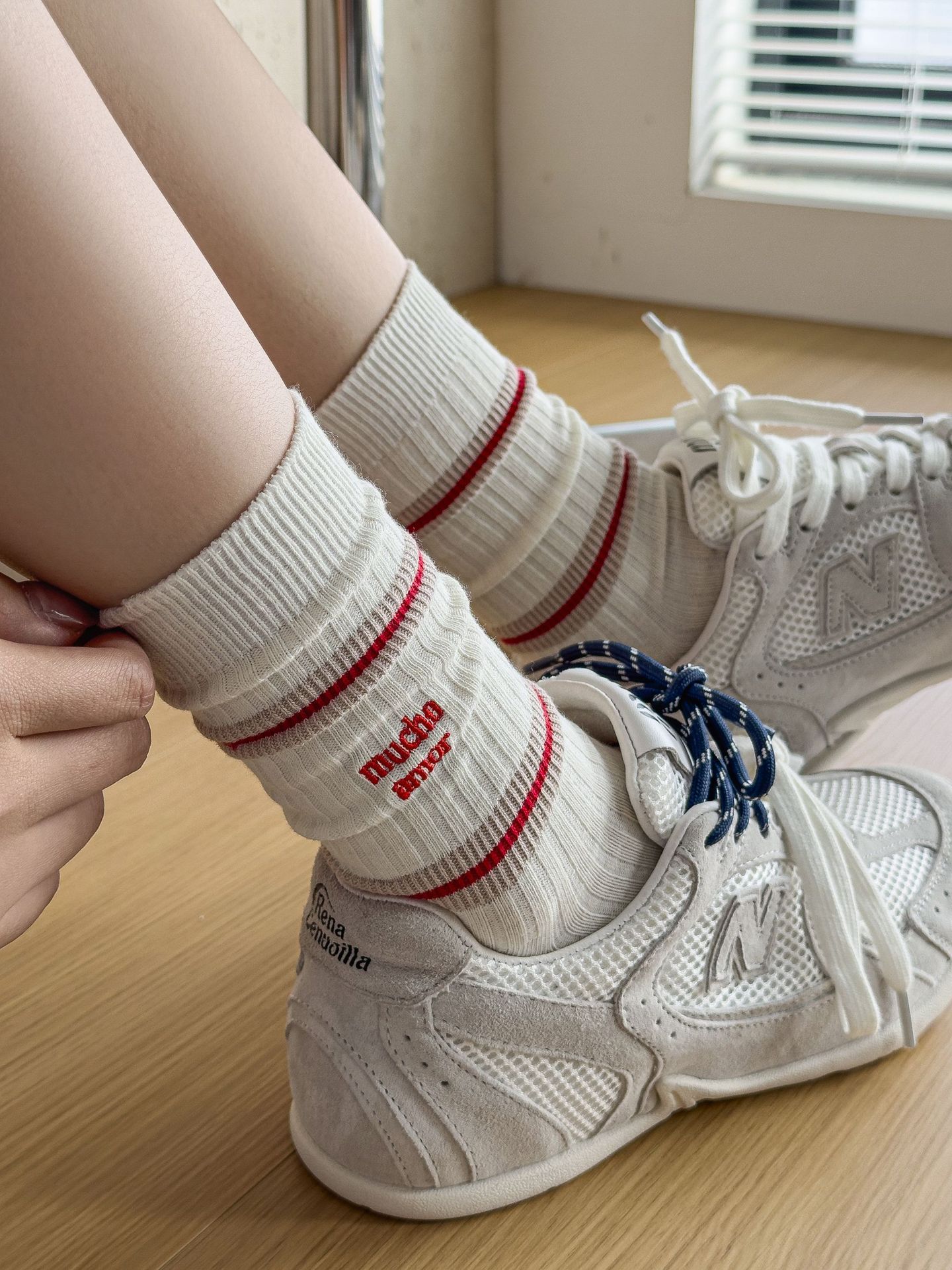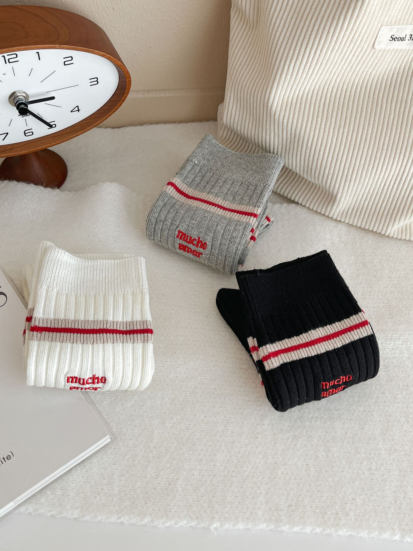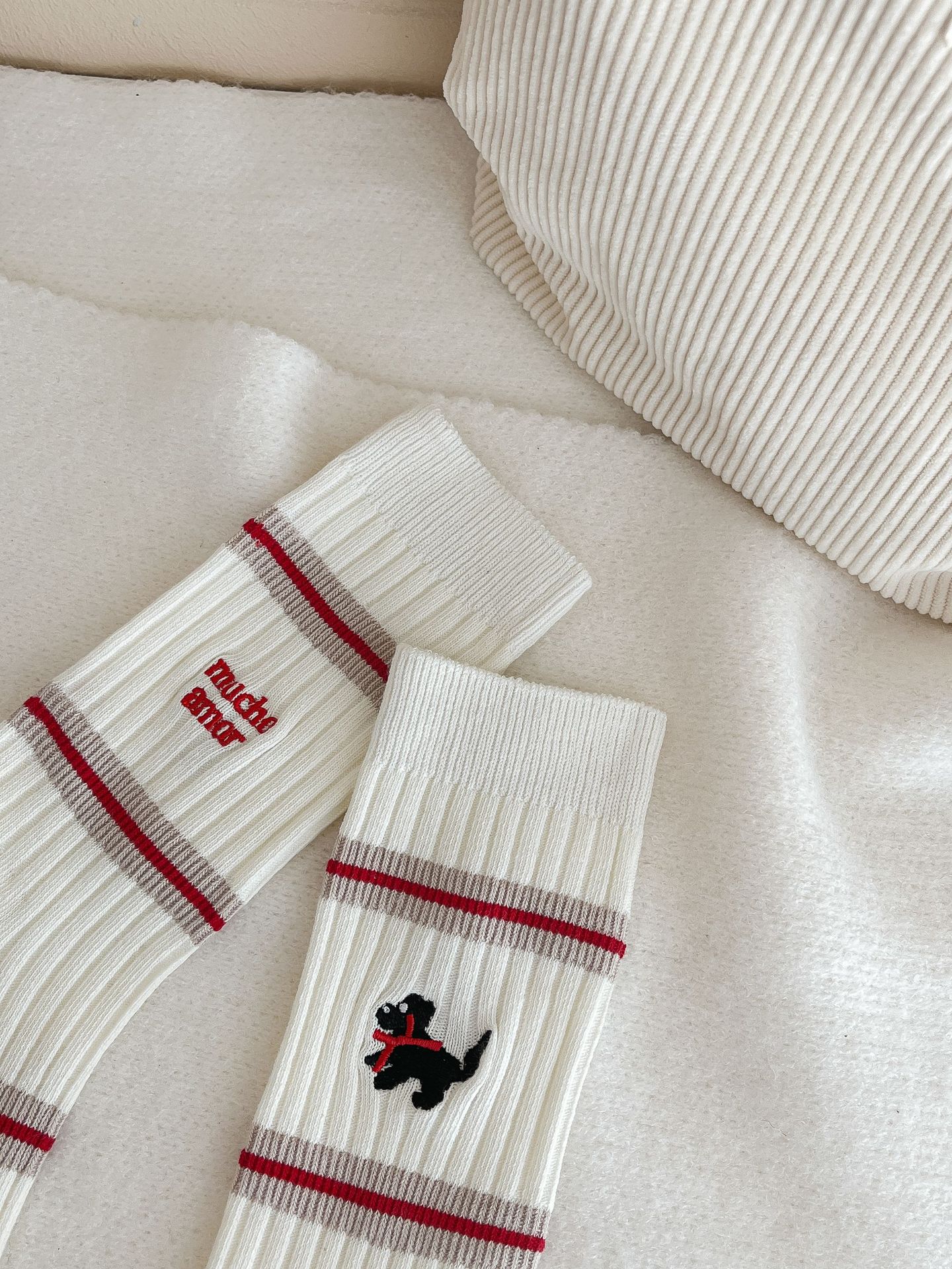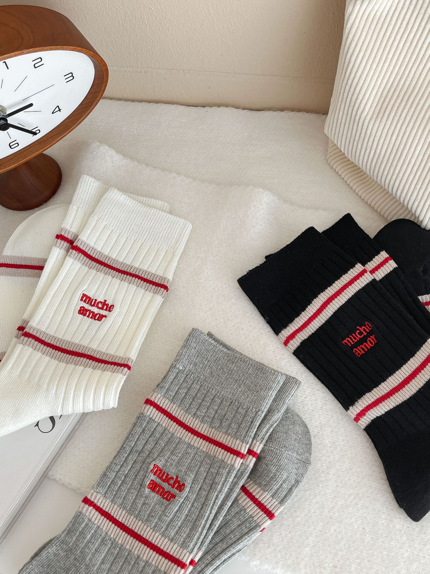 최근 차오 사랑 착용! TB 대학 스타일 스태킹 양말 AB 강아지 영어 수 놓은 JK 스타일 면 양말스토어 가기