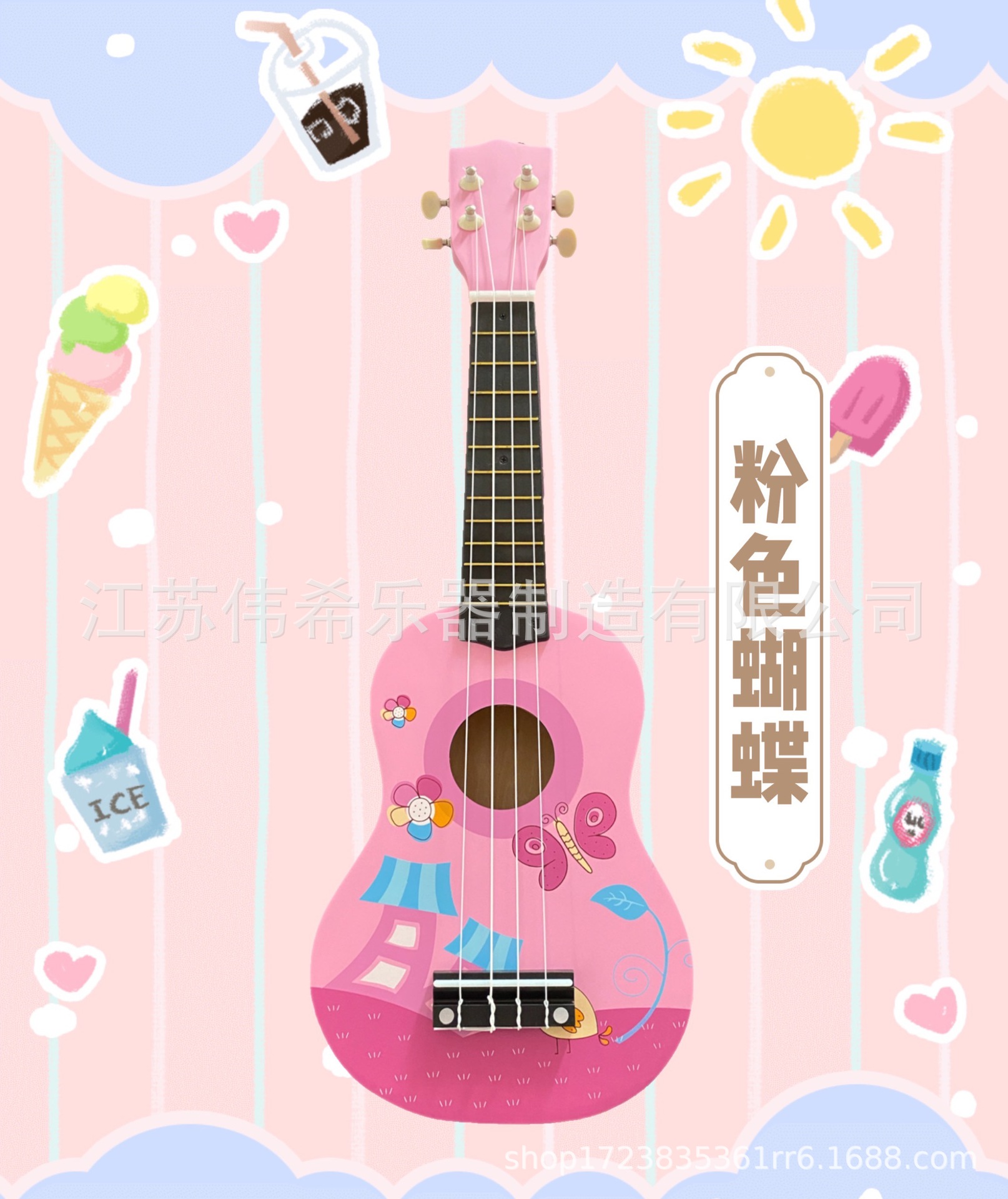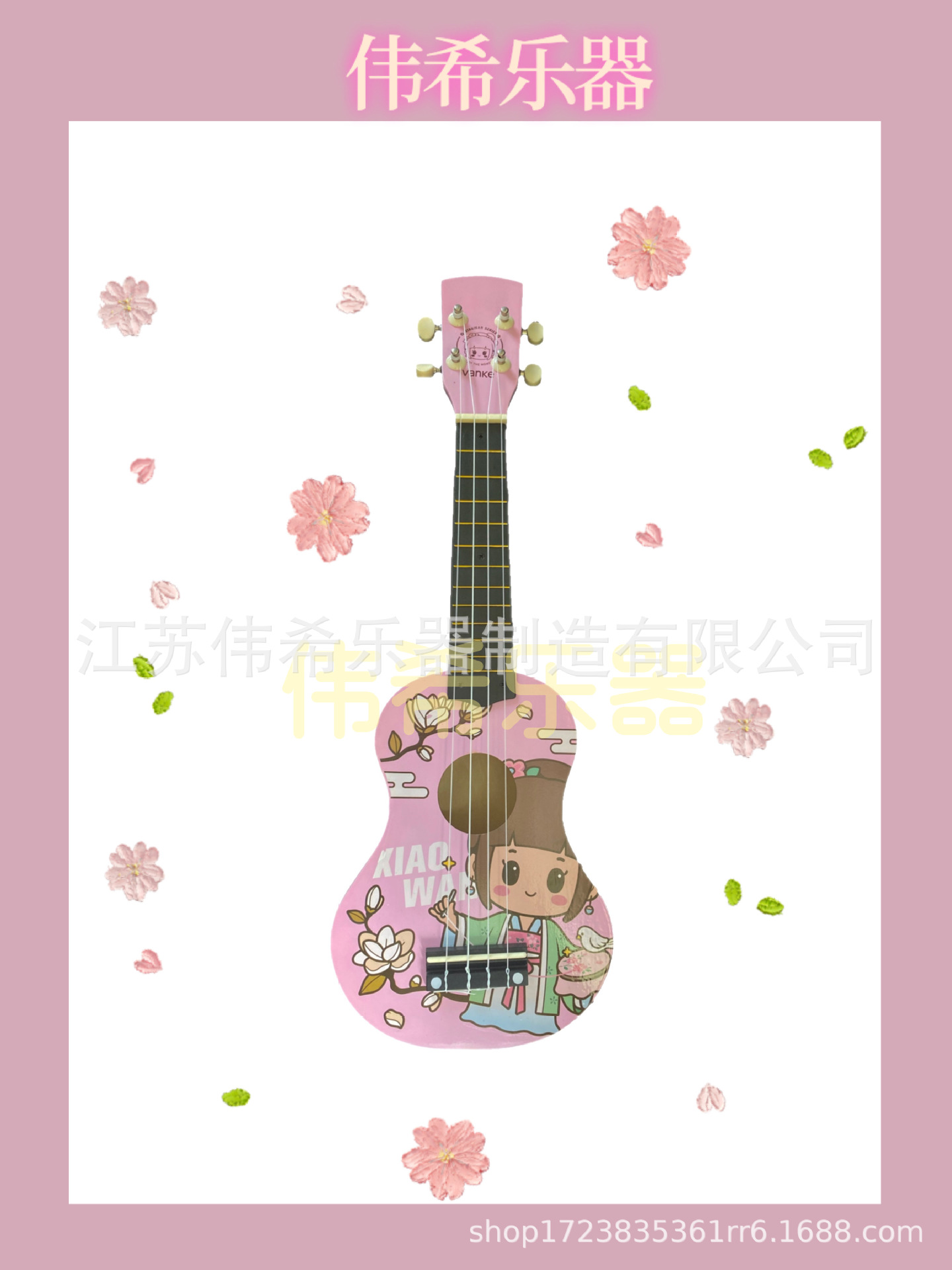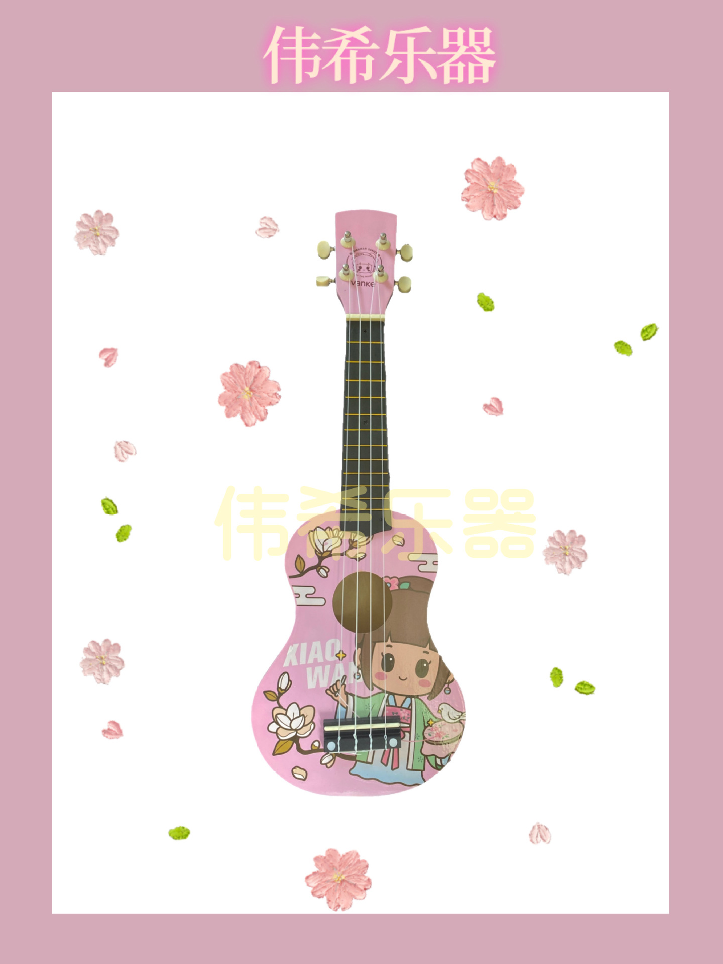 만화 패턴 우쿨렐레 나무 장난감 깨달음 조기 교육은 어린이 기타 악기 제조 업체를 재생할 수 있습니다 도매