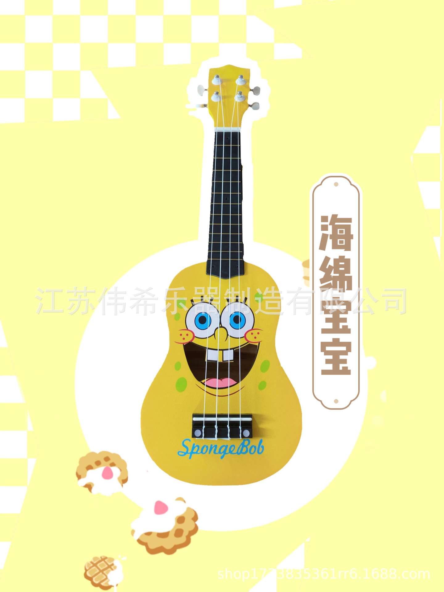만화 패턴 우쿨렐레 나무 장난감 깨달음 조기 교육은 어린이 기타 악기 제조 업체를 재생할 수 있습니다 도매스토어 가기