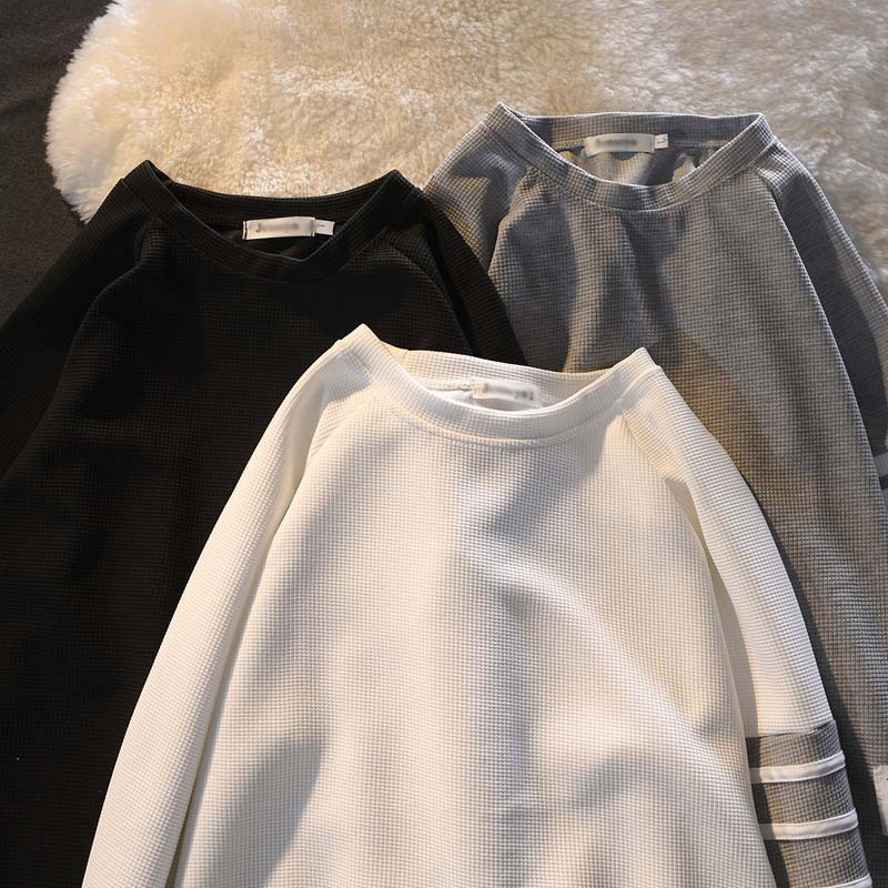가을 남자 스웨터 트렌디 한 브랜드 인 와플베이스 셔츠 긴팔 티셔츠 남자 잘 생긴 느슨한 플러스 사이즈 최고 남성 의류스토어 가기