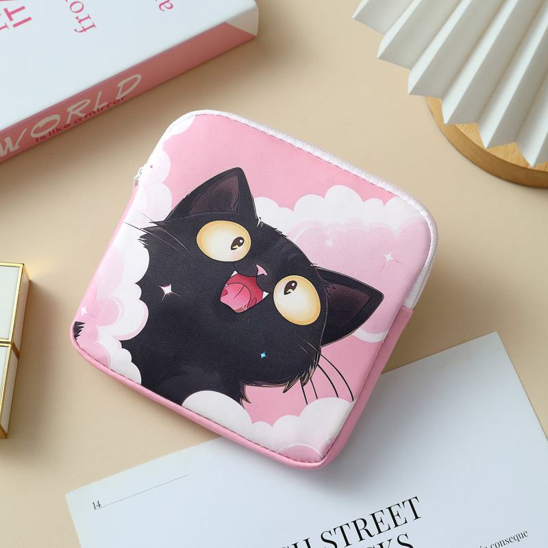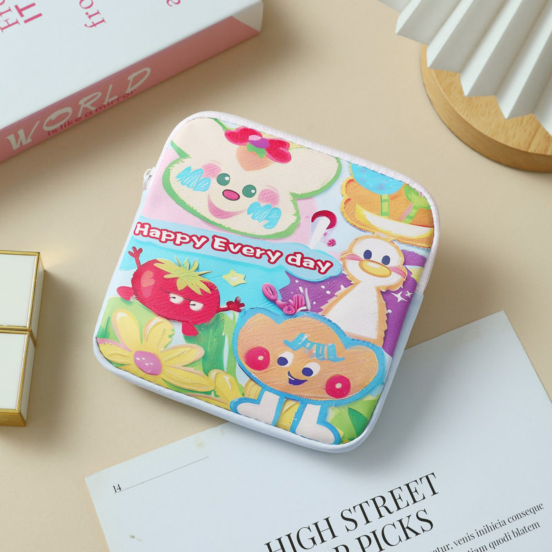 만화 위생 냅킨 저장 가방 소녀를위한 귀여운 메이크업 가방 Auntie 냅킨 저장 가방 Ins 만화 문 가방 방수