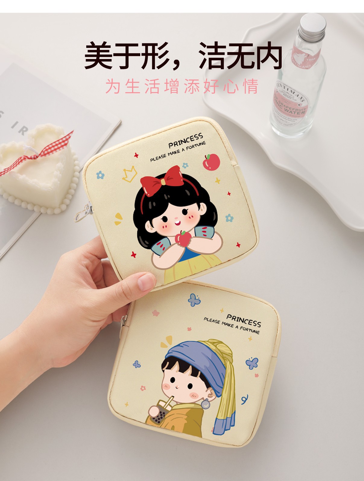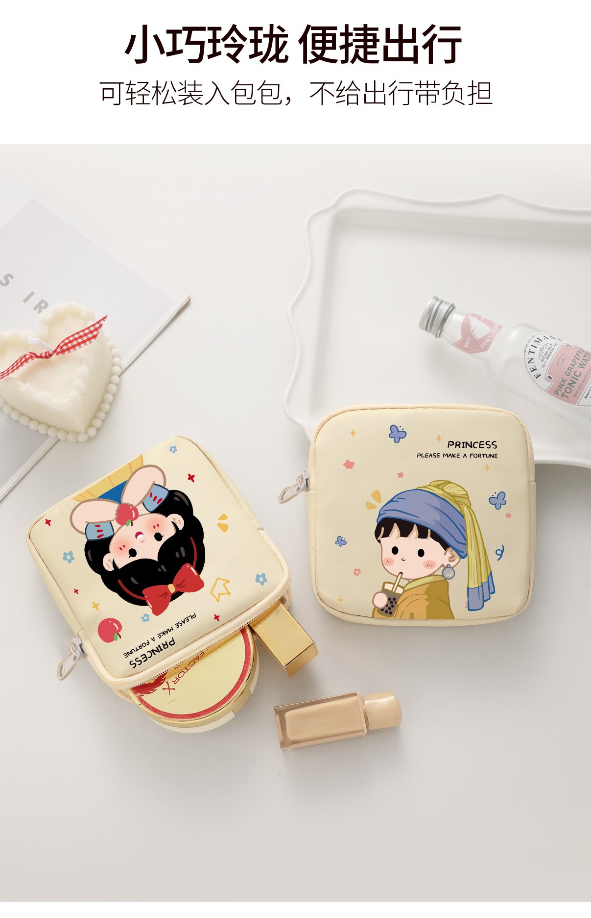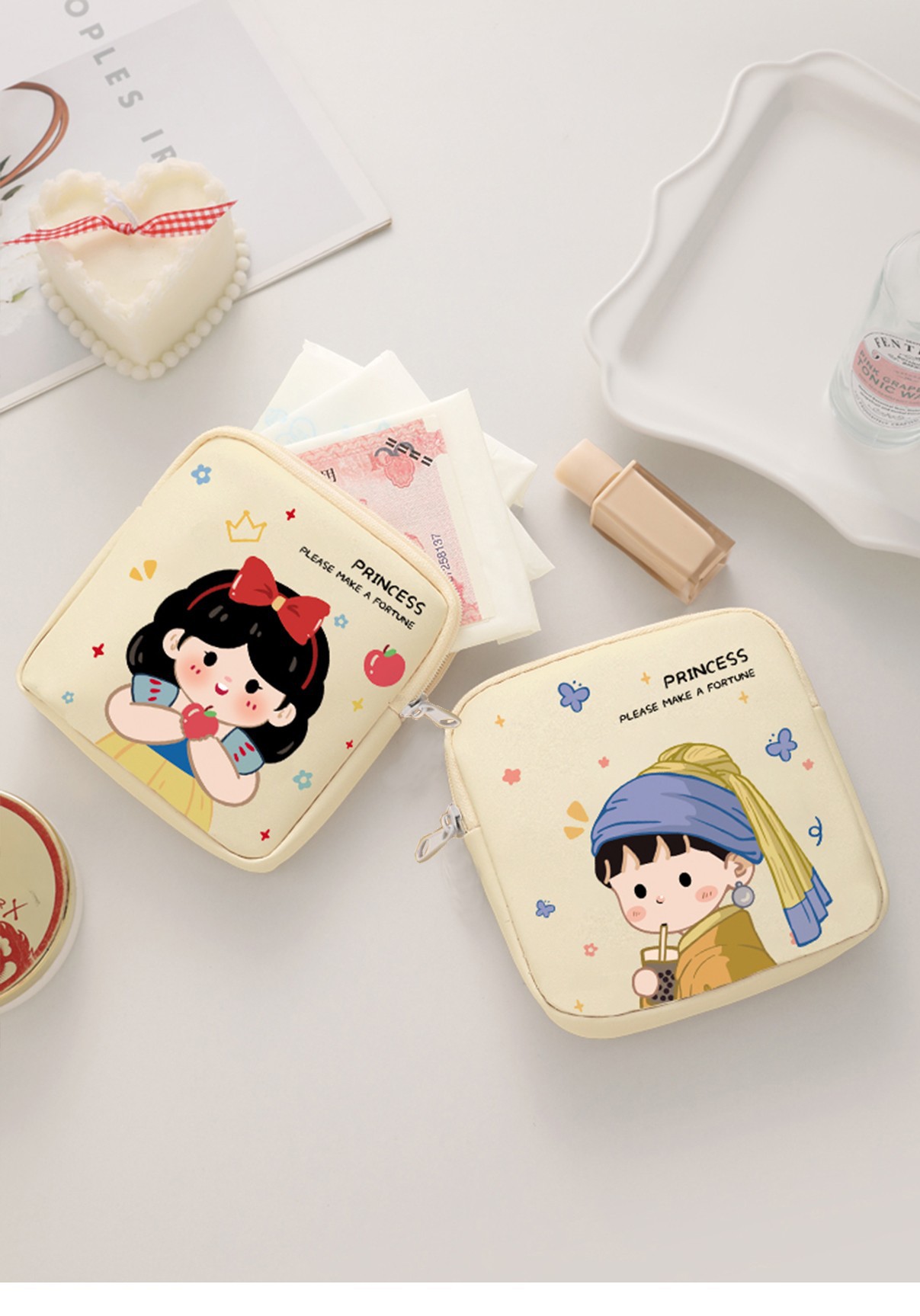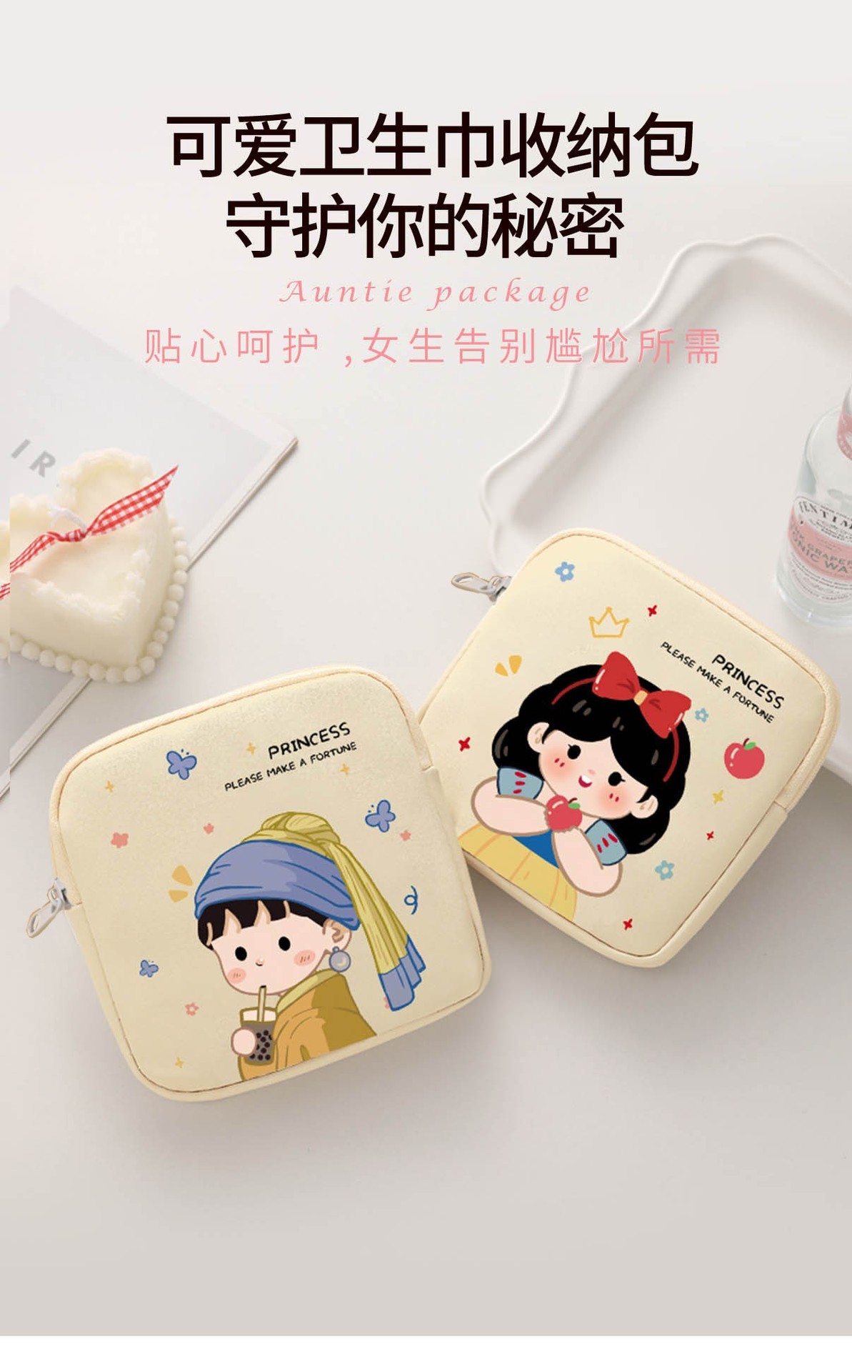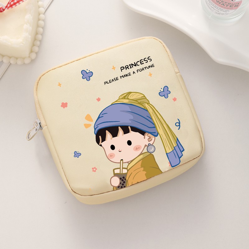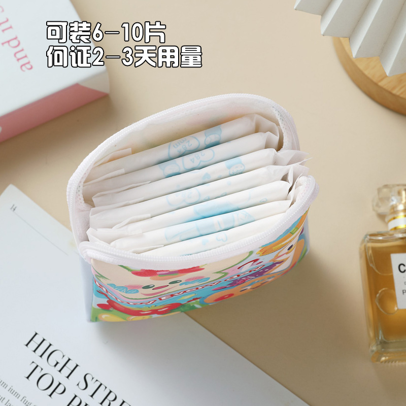 만화 위생 냅킨 저장 가방 소녀를위한 귀여운 메이크업 가방 Auntie 냅킨 저장 가방 Ins 만화 문 가방 방수스토어 가기