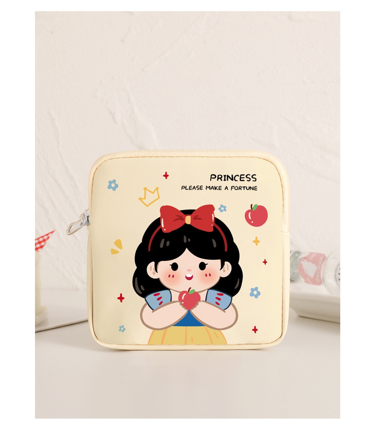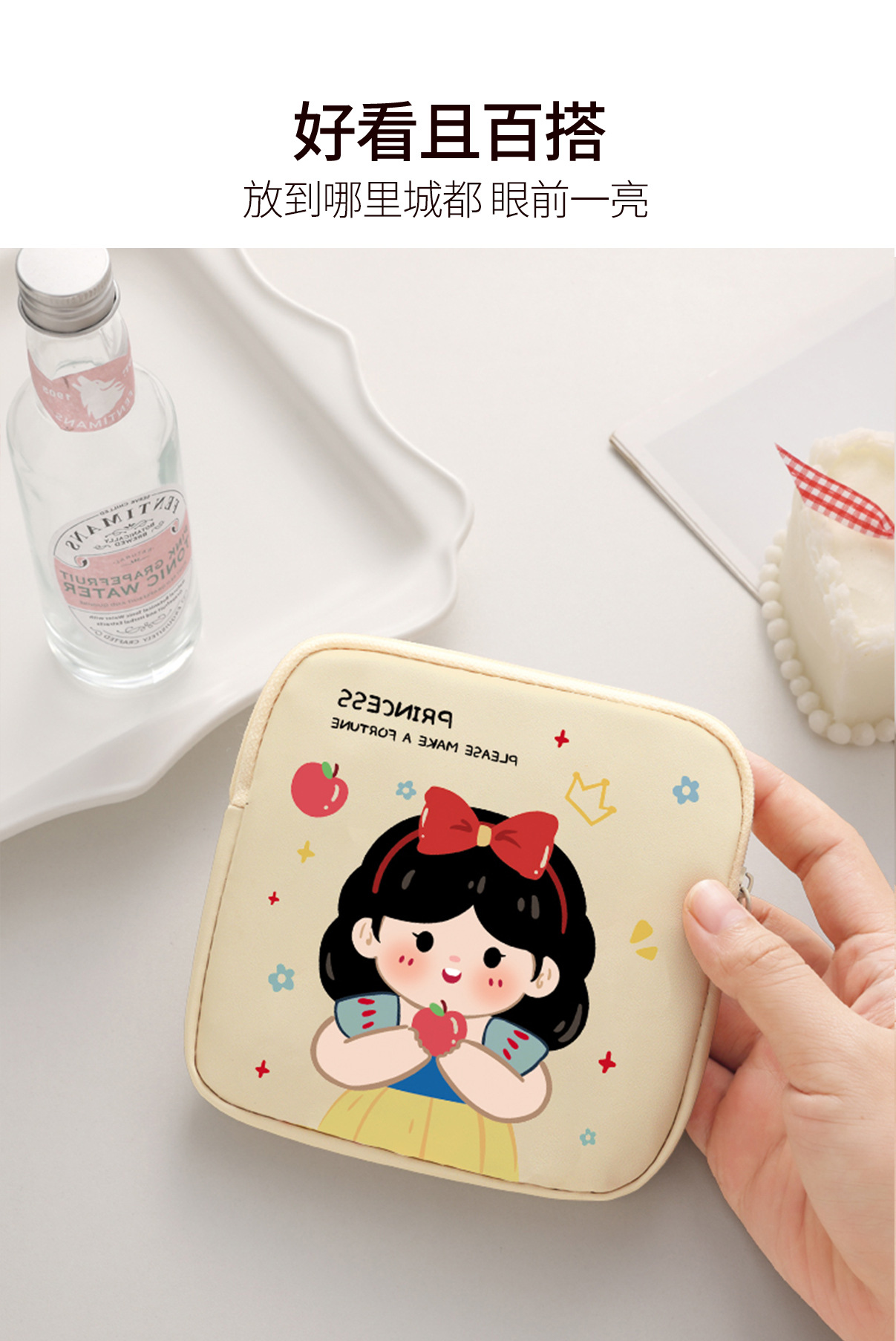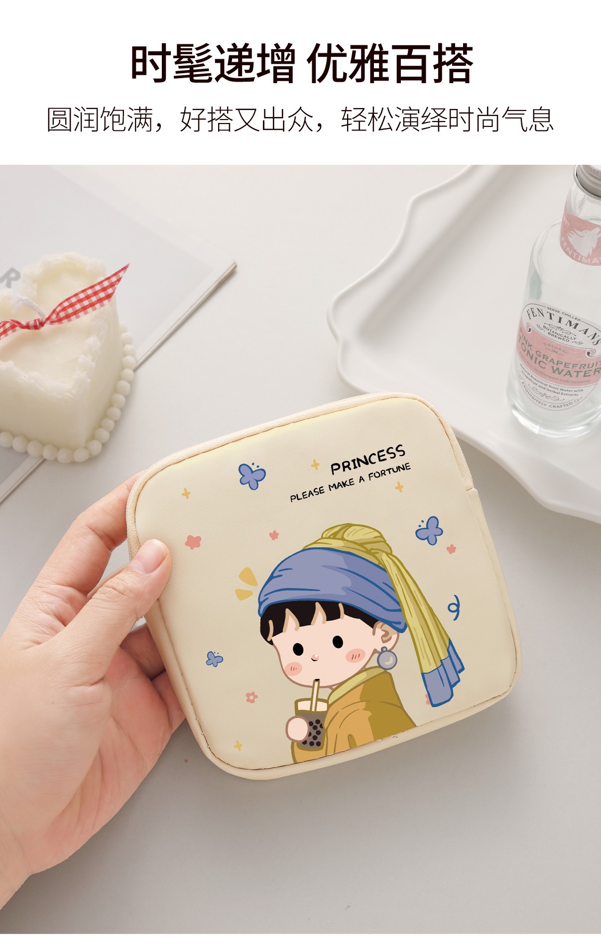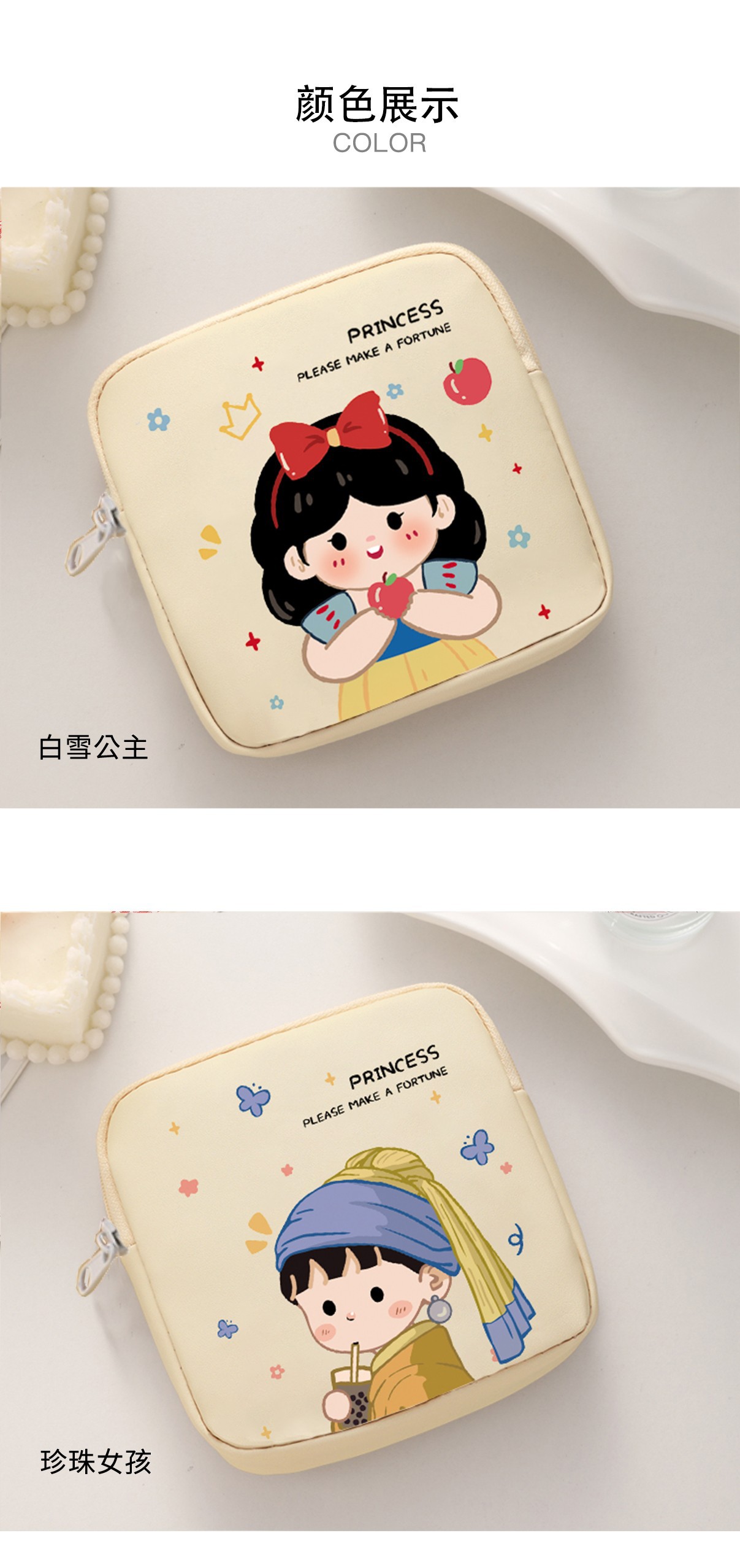 만화 위생 냅킨 저장 가방 소녀를위한 귀여운 메이크업 가방 Auntie 냅킨 저장 가방 Ins 만화 문 가방 방수스토어 가기