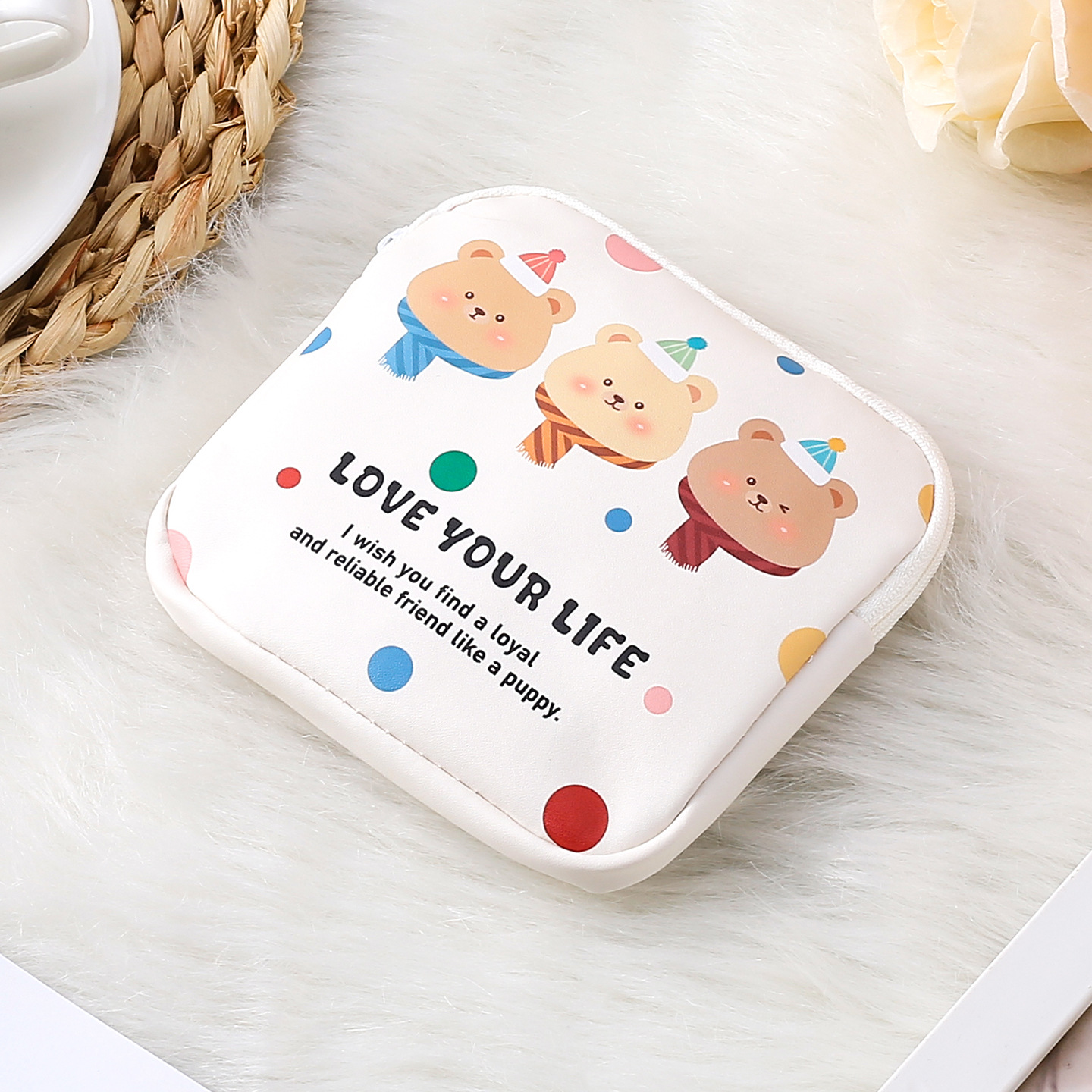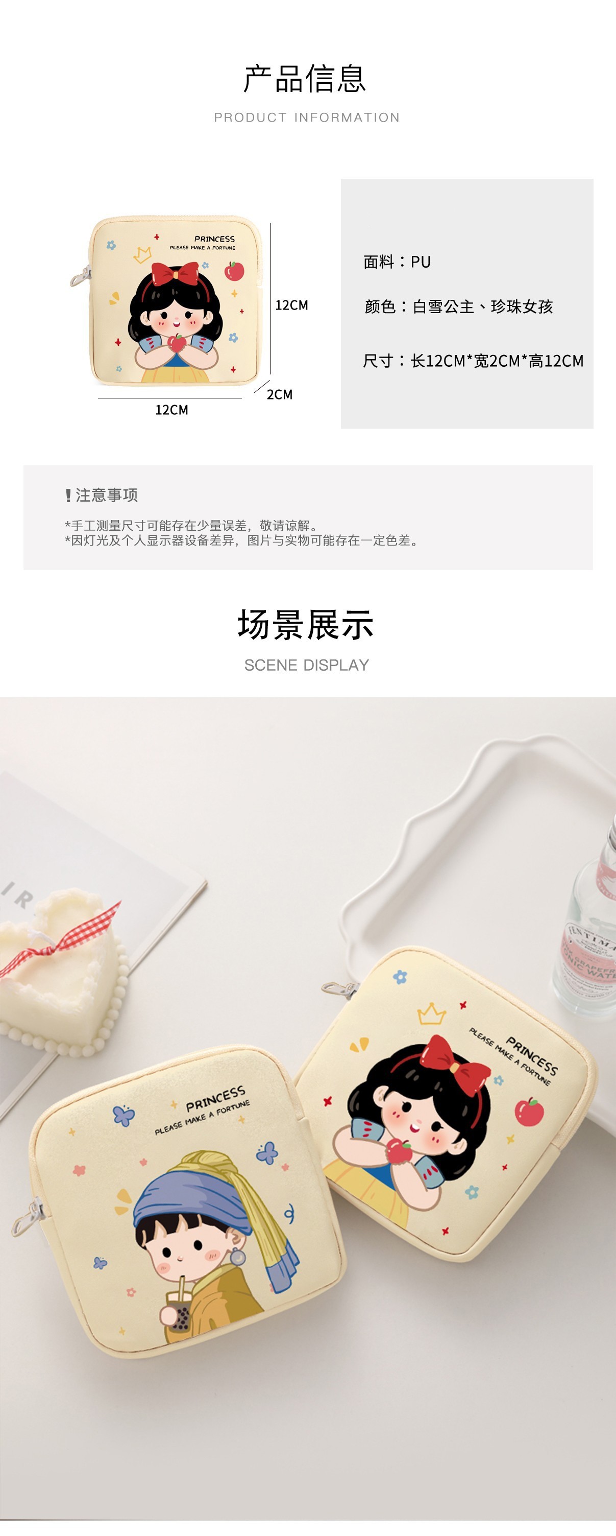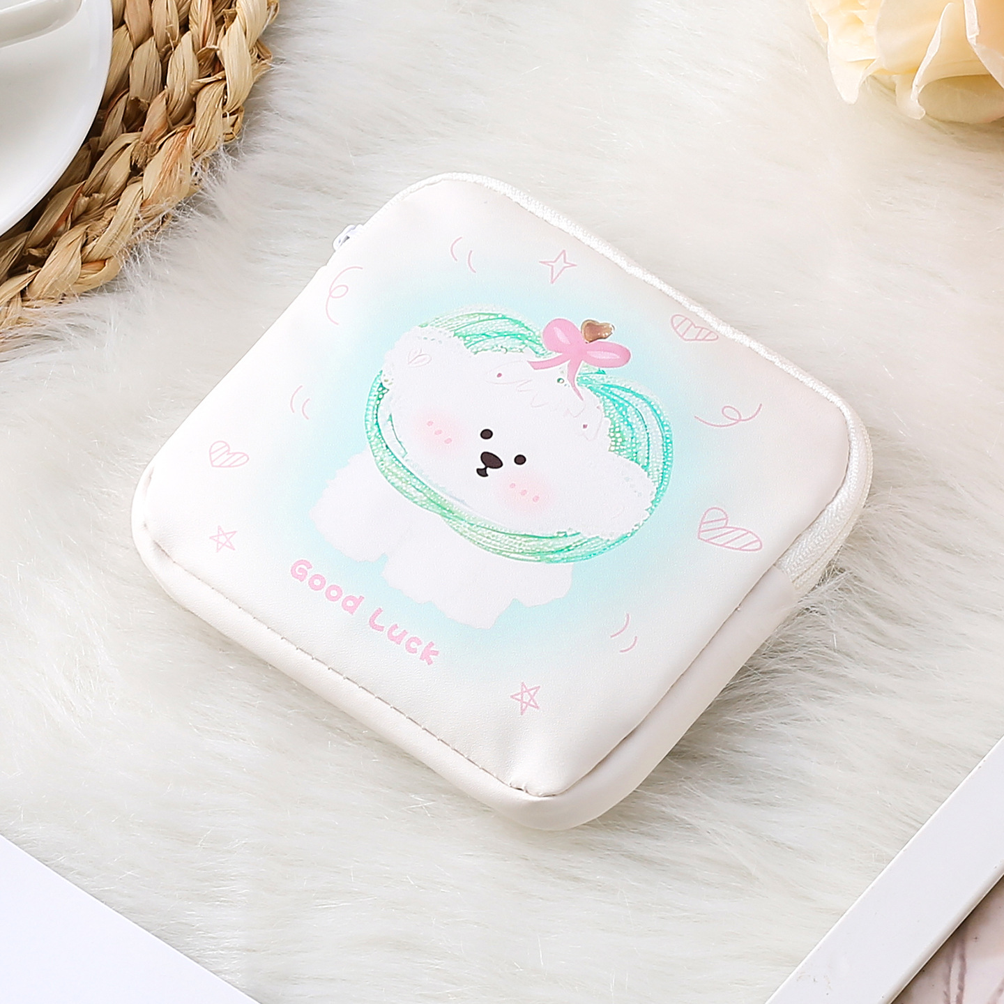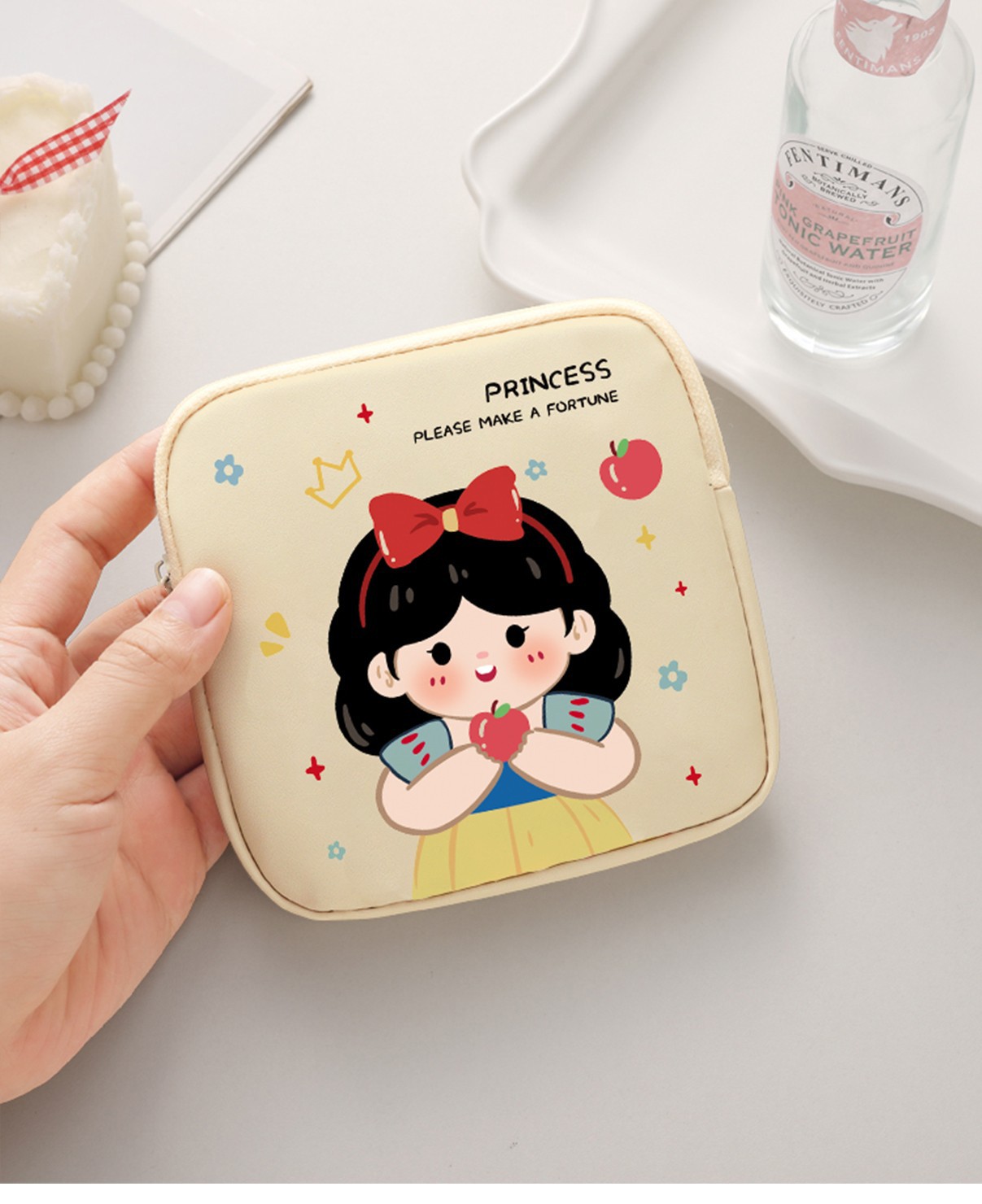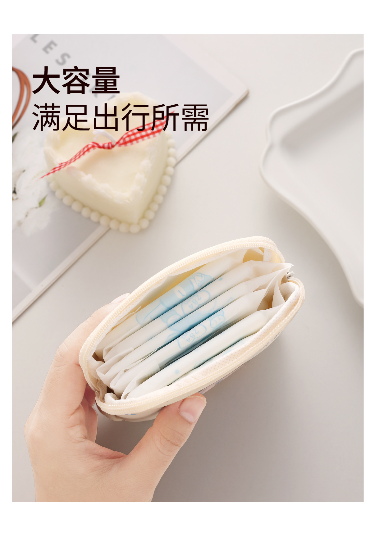 만화 위생 냅킨 저장 가방 소녀를위한 귀여운 메이크업 가방 Auntie 냅킨 저장 가방 Ins 만화 문 가방 방수스토어 가기