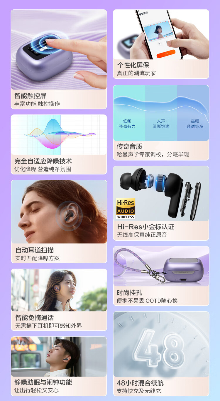 스마트 컬러 스크린 V20 블루투스 헤드셋 ANC 소음 감소 스마트 스포츠 방수 땀 방지 긴 내구성 JBL에 적합스토어 가기