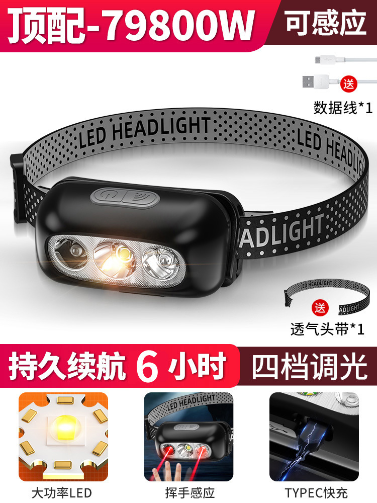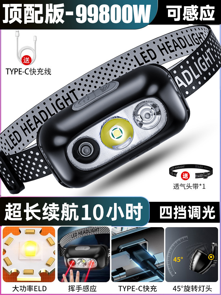 헤드 라이트 충전 슈퍼 밝은 유도 야간 낚시 조명 헤드 장착 야외 초장 내구성 초경량 소형 손전등