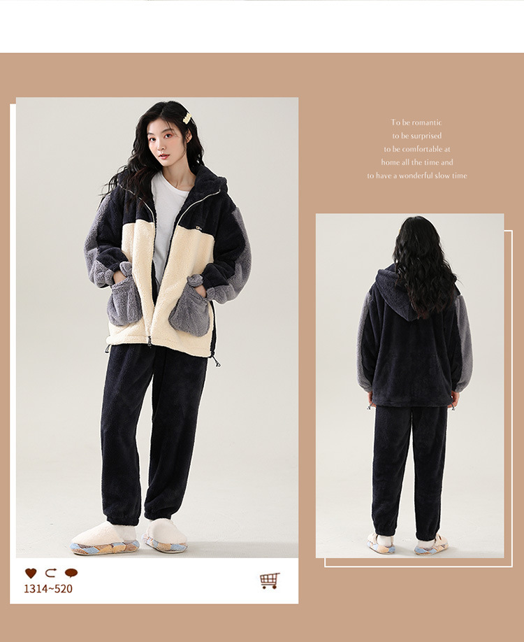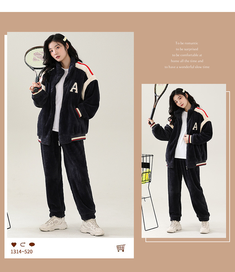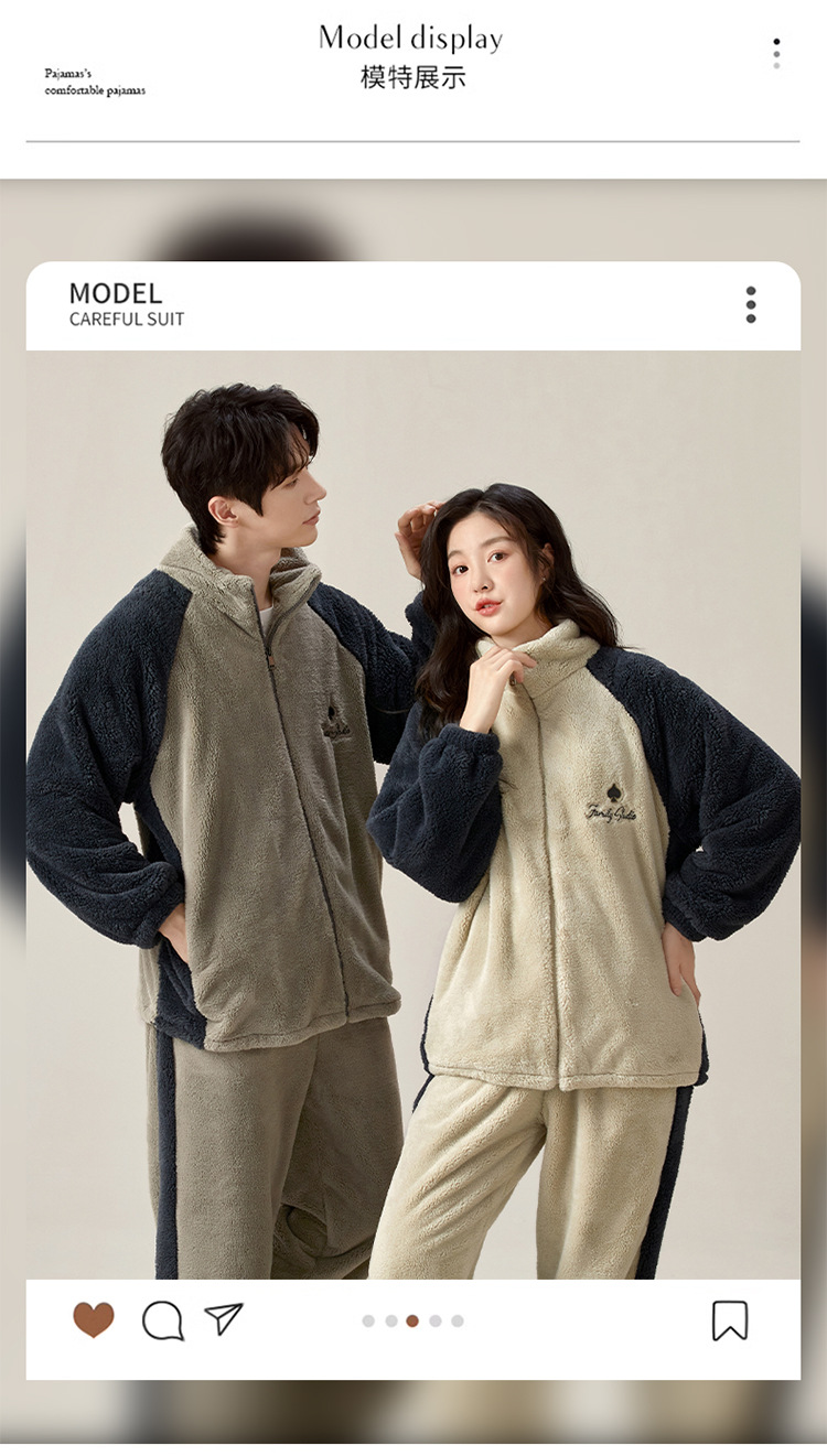 부드러운 높은 명성 벨벳 가을 겨울 커플 파자마 여성 산호 벨벳 칼라 지퍼 따뜻한 두꺼운 남자 홈 옷스토어 가기