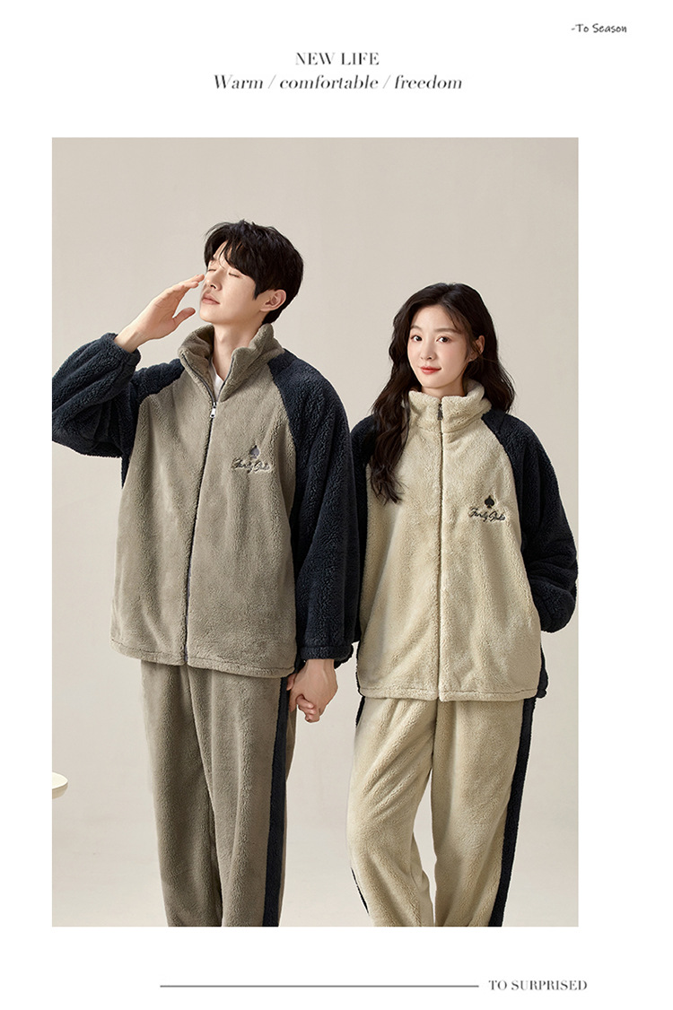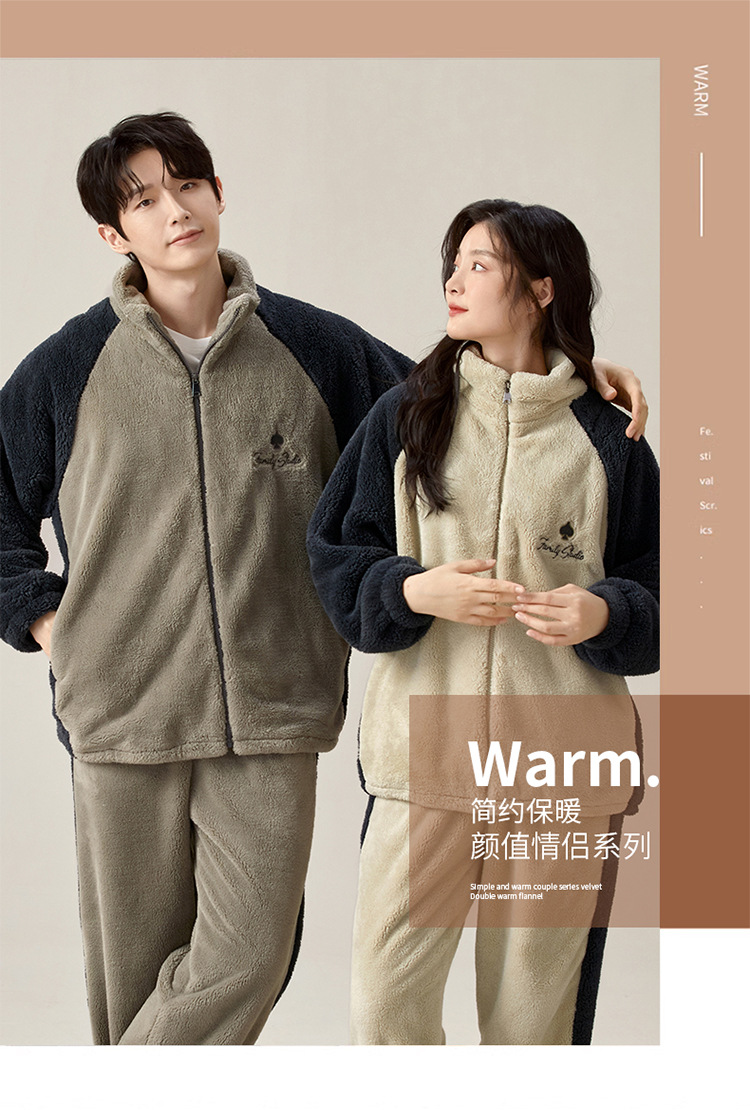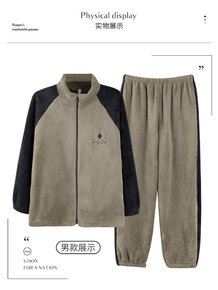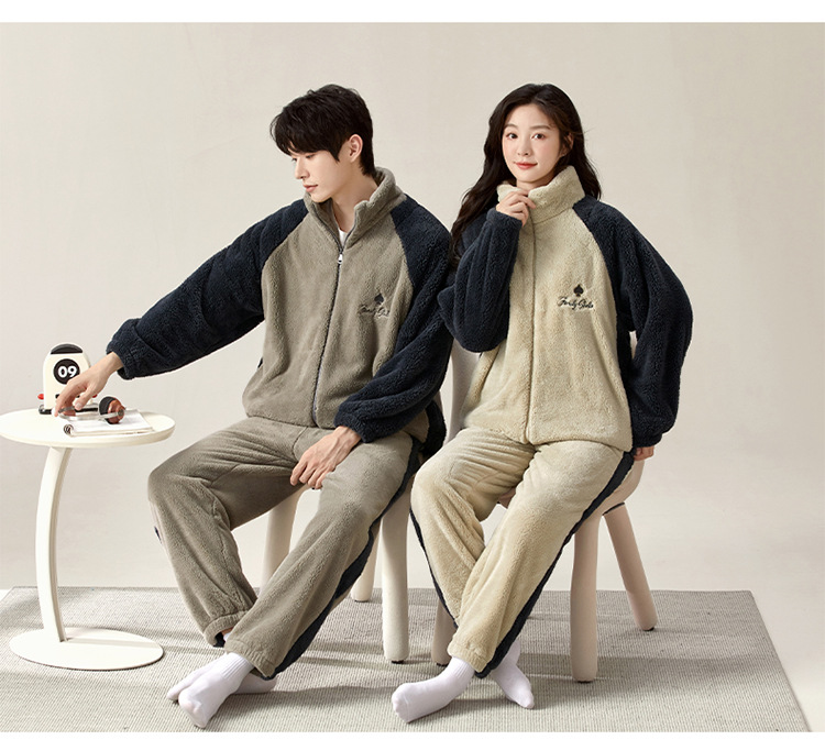부드러운 높은 명성 벨벳 가을 겨울 커플 파자마 여성 산호 벨벳 칼라 지퍼 따뜻한 두꺼운 남자 홈 옷