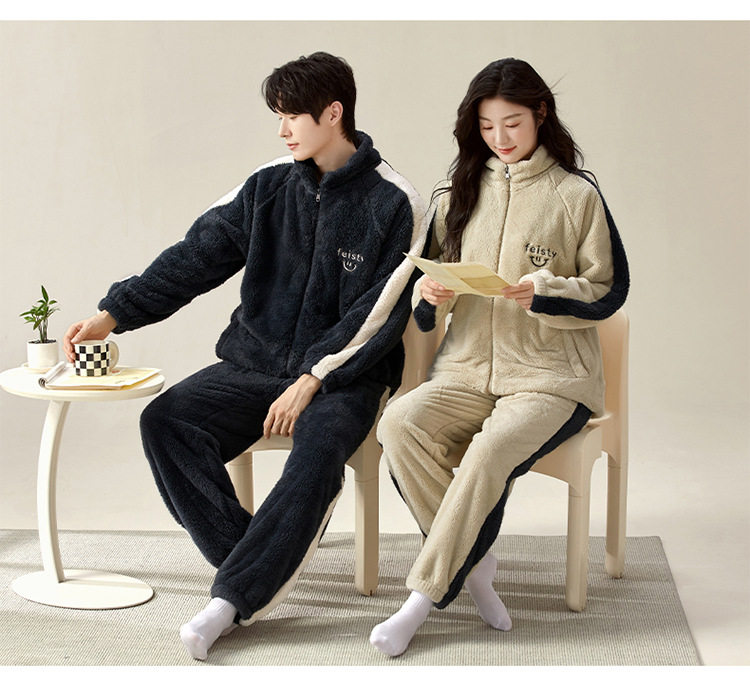 소프트 하이 퀸 벨벳 가을과 겨울 커플 파자마 여성 코랄 벨벳 두꺼운 스포츠 플란넬 남자 홈 옷스토어 가기