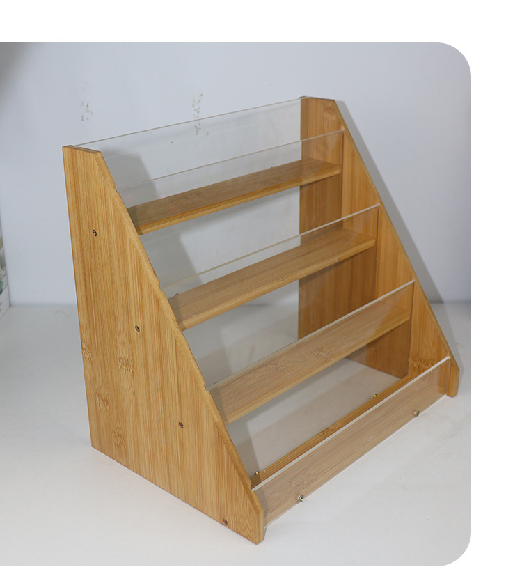잡지 책 데스크탑 스토리지 랙 대나무 홈 디스플레이 랙 다층 아크릴 장식 랙 버블 마트 랙스토어 가기
