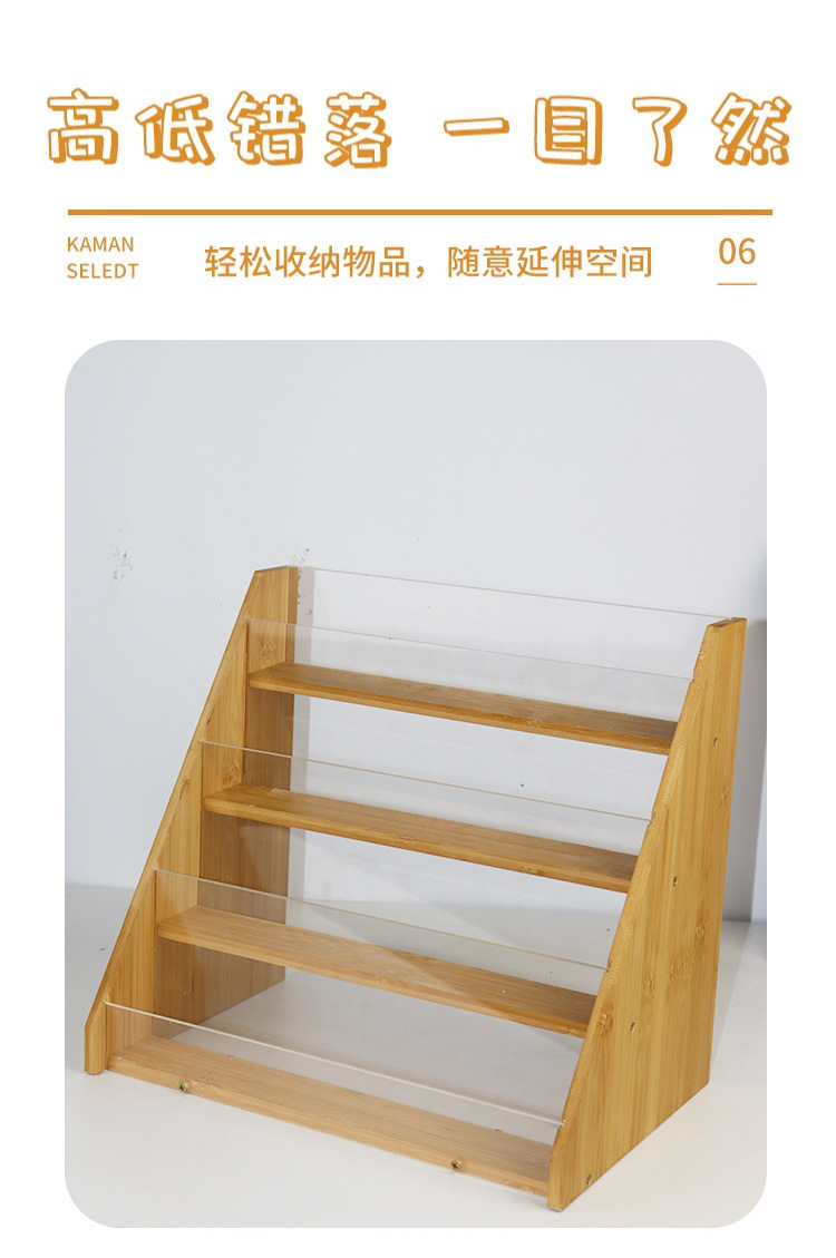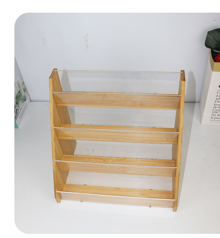 잡지 책 데스크탑 스토리지 랙 대나무 홈 디스플레이 랙 다층 아크릴 장식 랙 버블 마트 랙