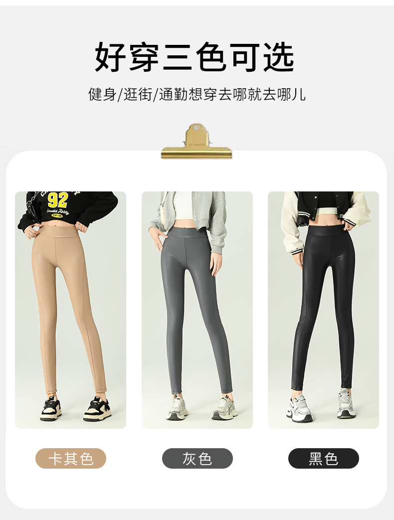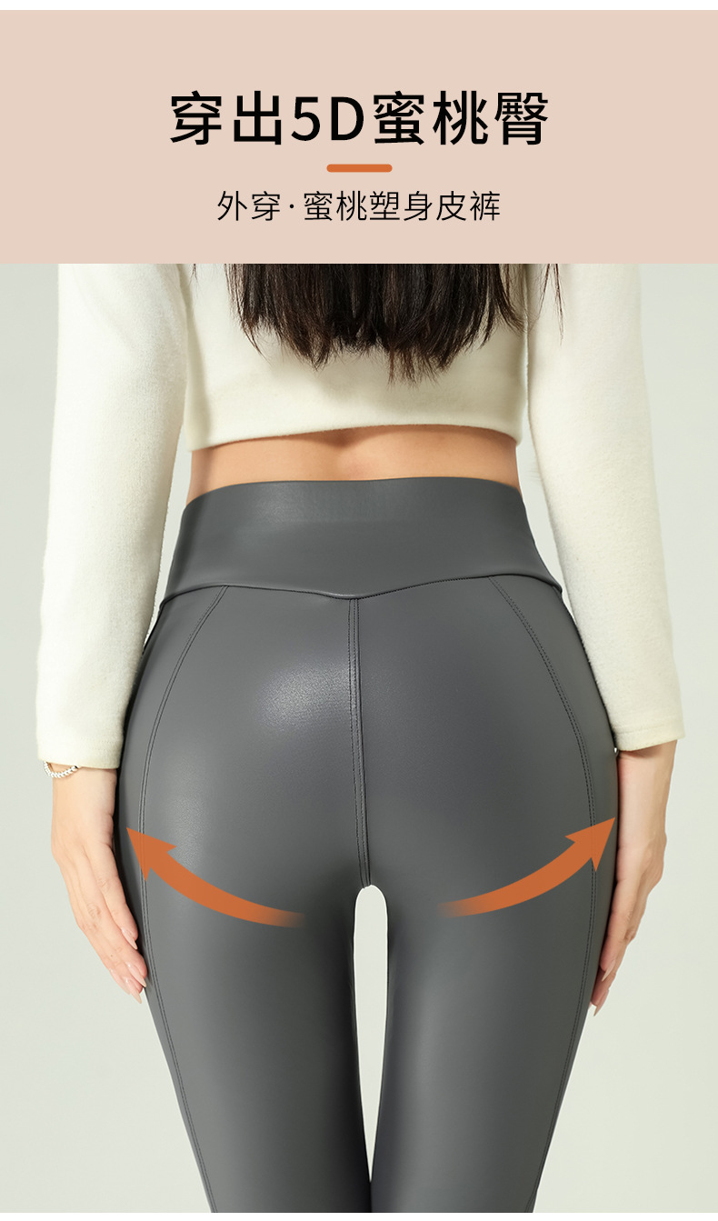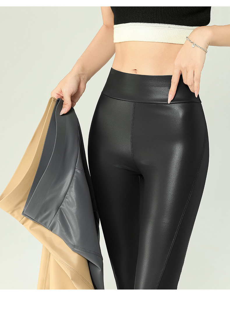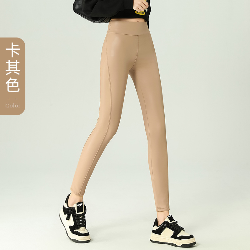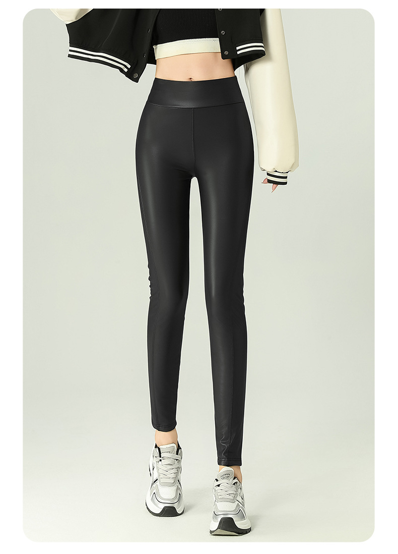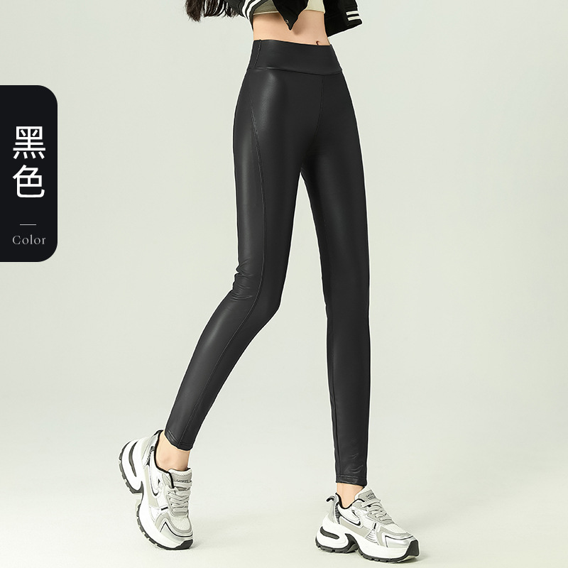 가죽 바지 여성용 타이트 2024 새로운 높은 허리 얇은 자른 바지 기모 가죽 매트 레깅스 외부 착용 긴 바지스토어 가기