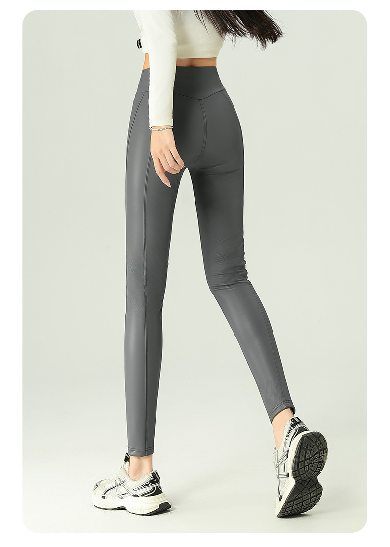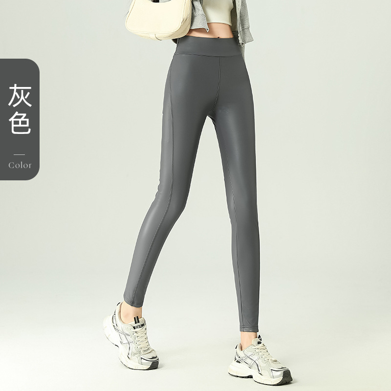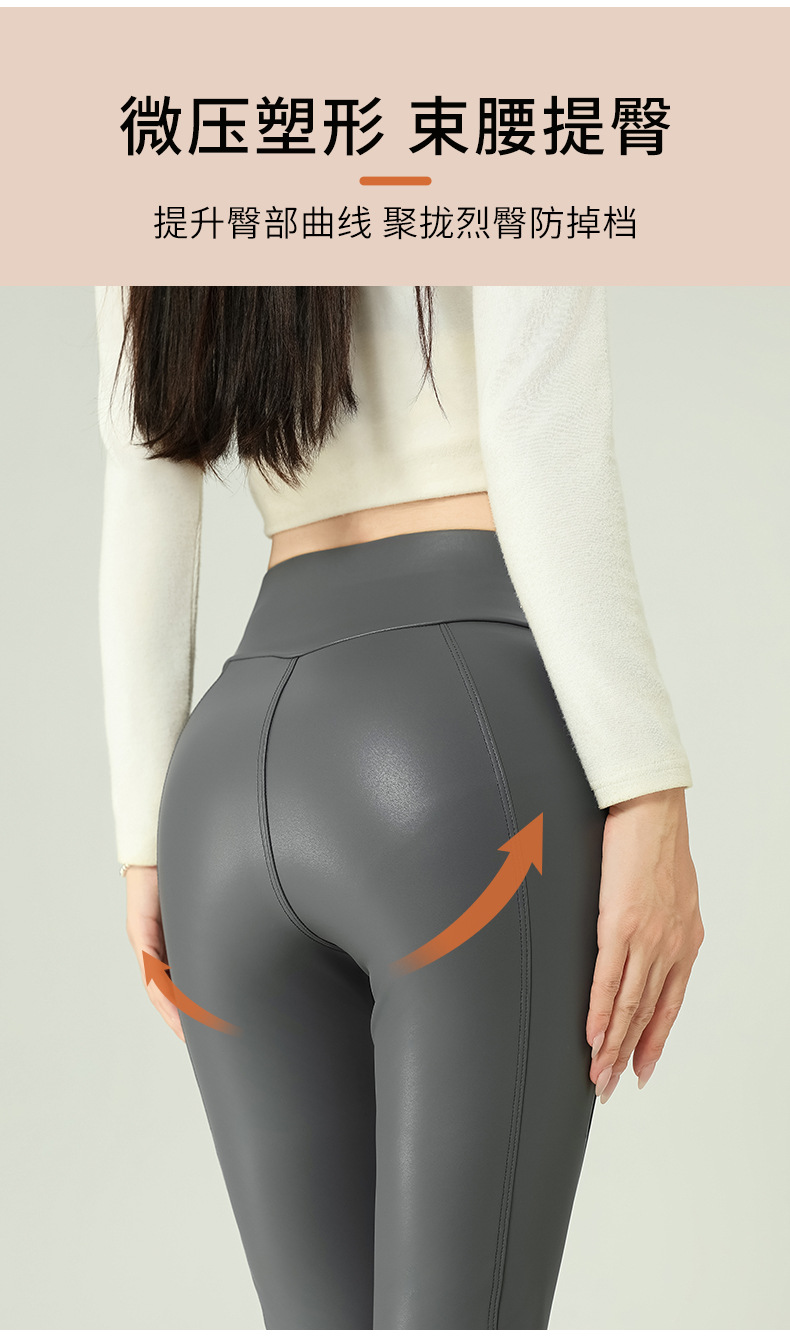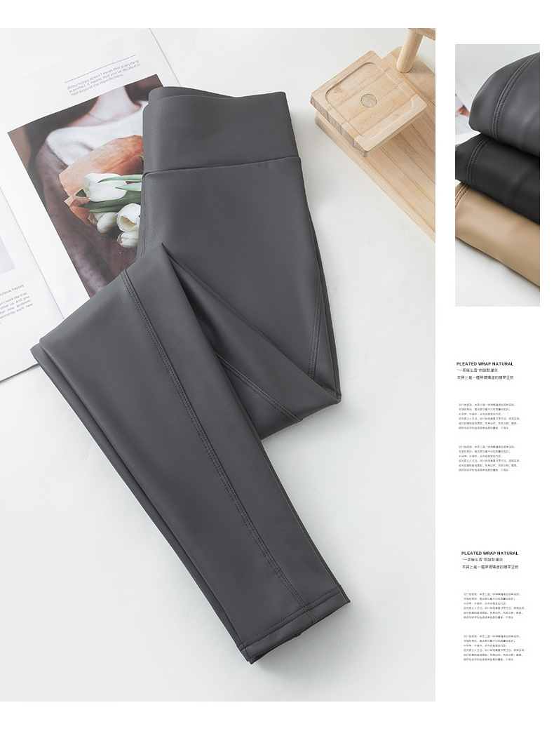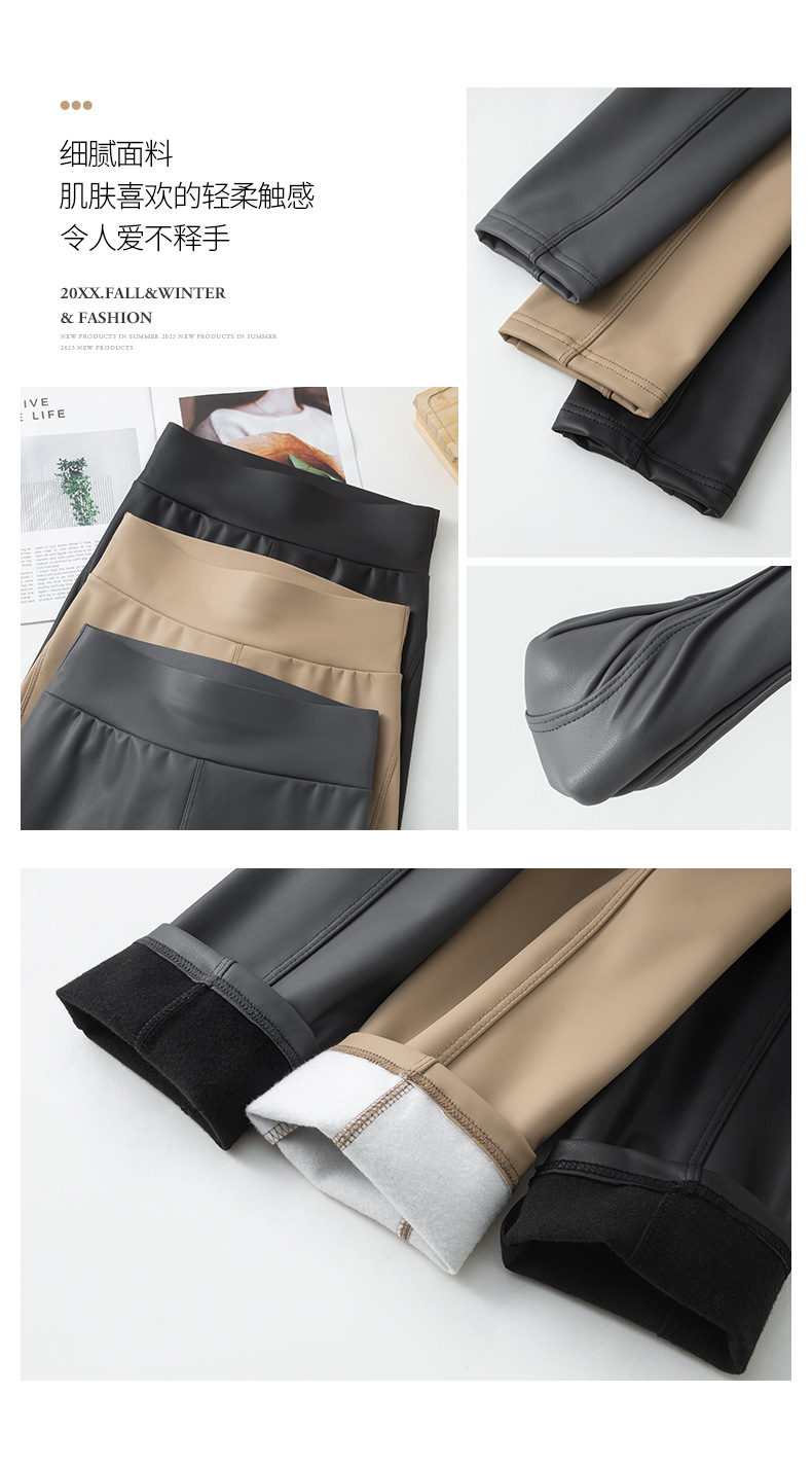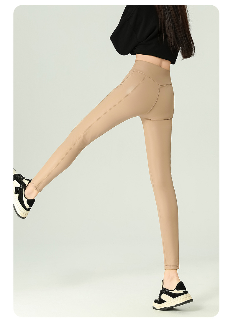 가죽 바지 여성용 타이트 2024 새로운 높은 허리 얇은 자른 바지 기모 가죽 매트 레깅스 외부 착용 긴 바지스토어 가기