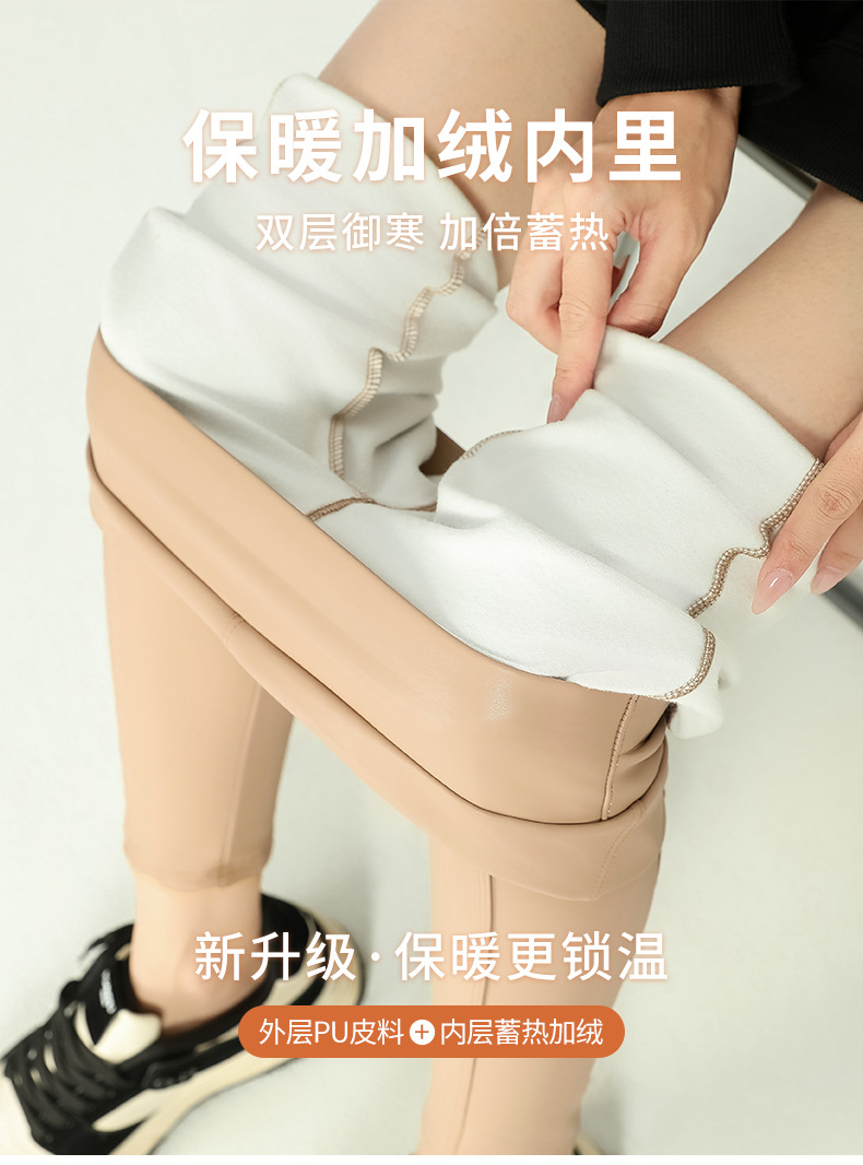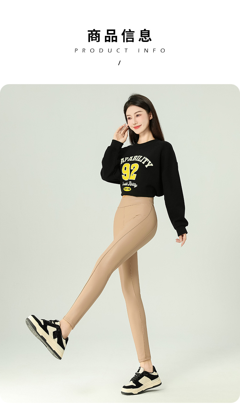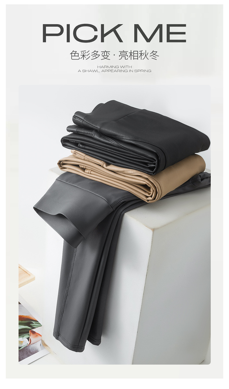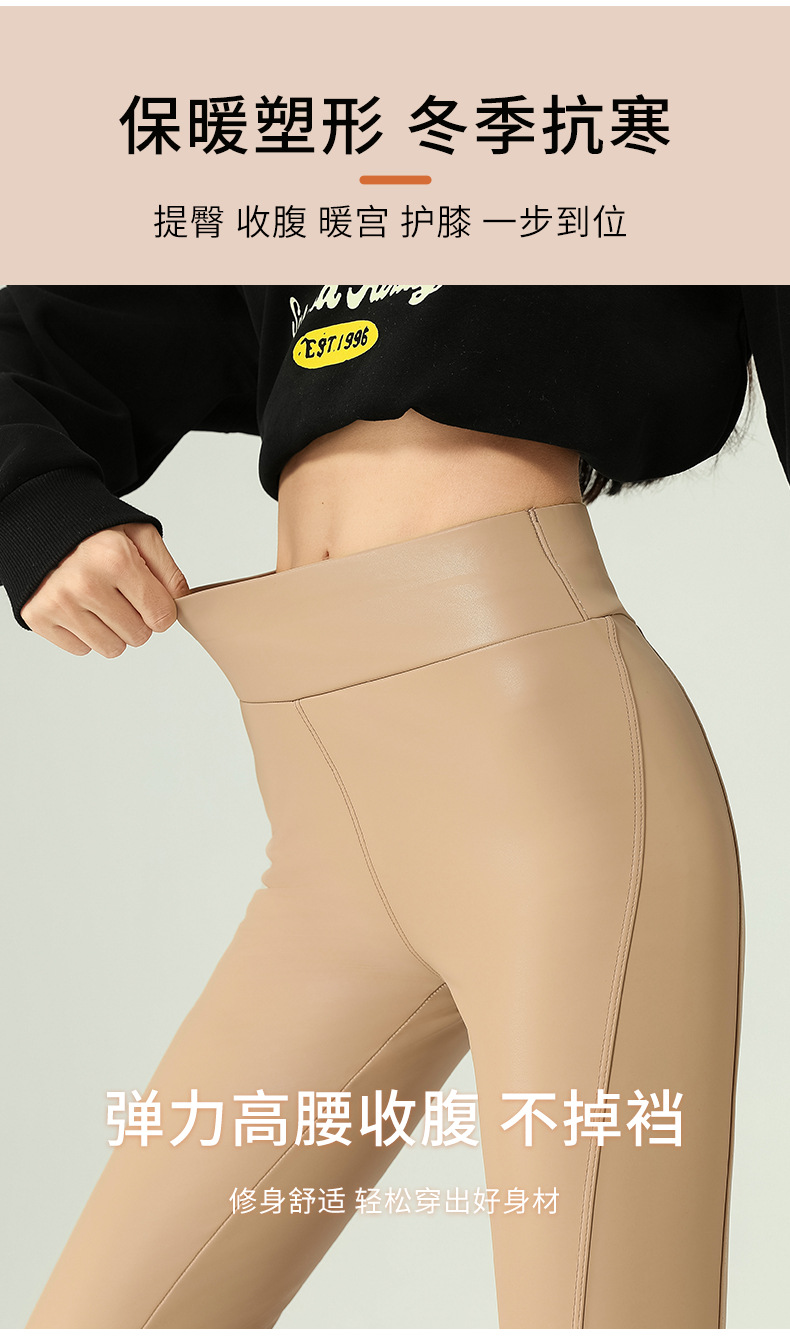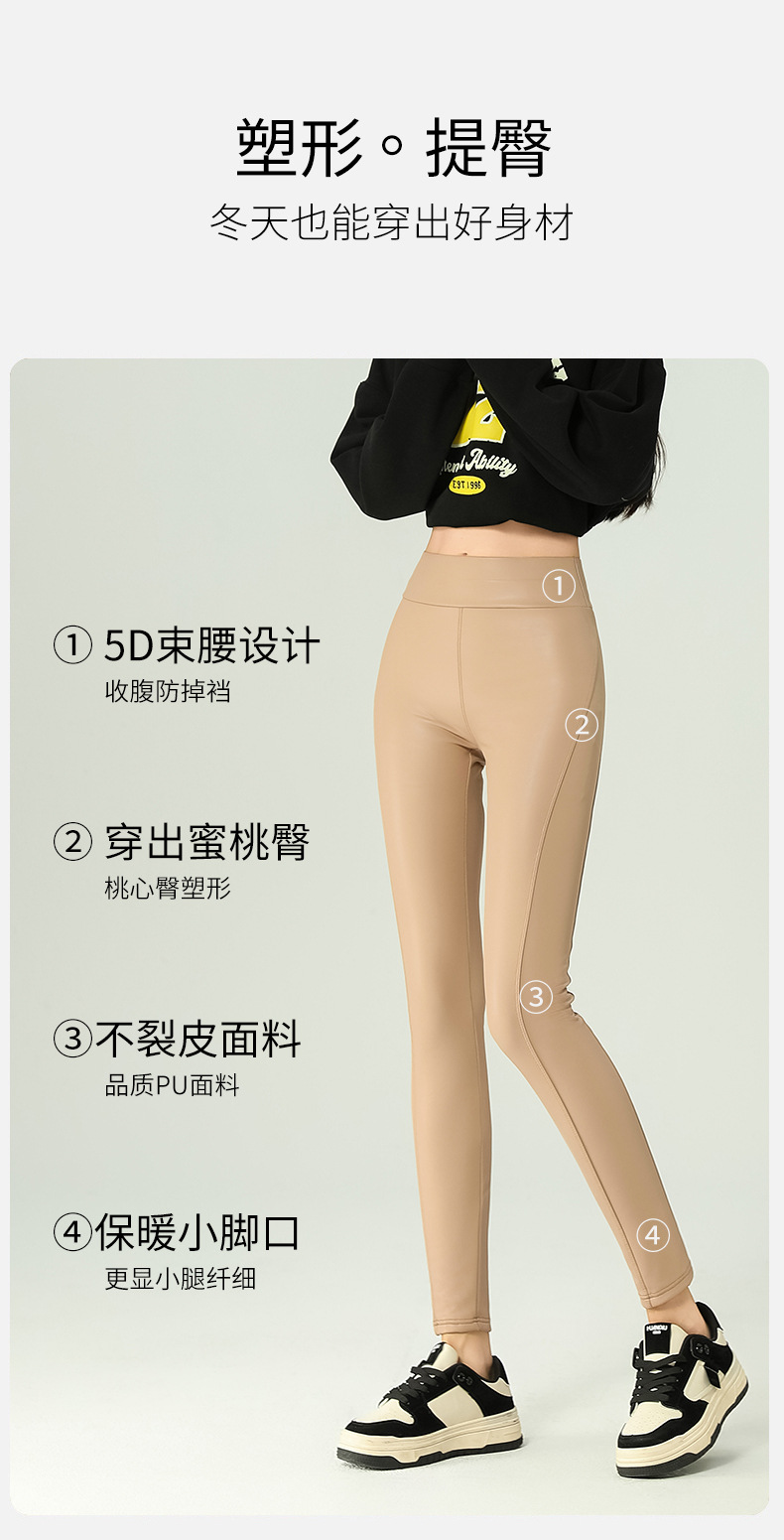 가죽 바지 여성용 타이트 2024 새로운 높은 허리 얇은 자른 바지 기모 가죽 매트 레깅스 외부 착용 긴 바지스토어 가기