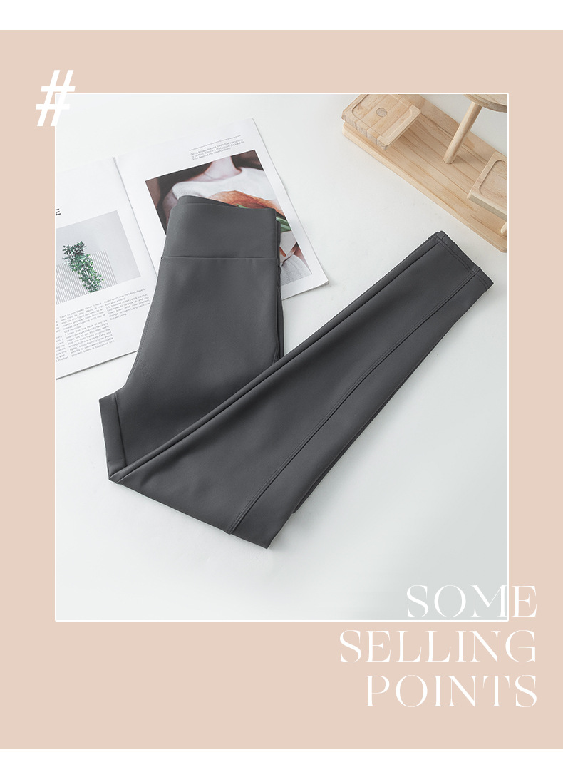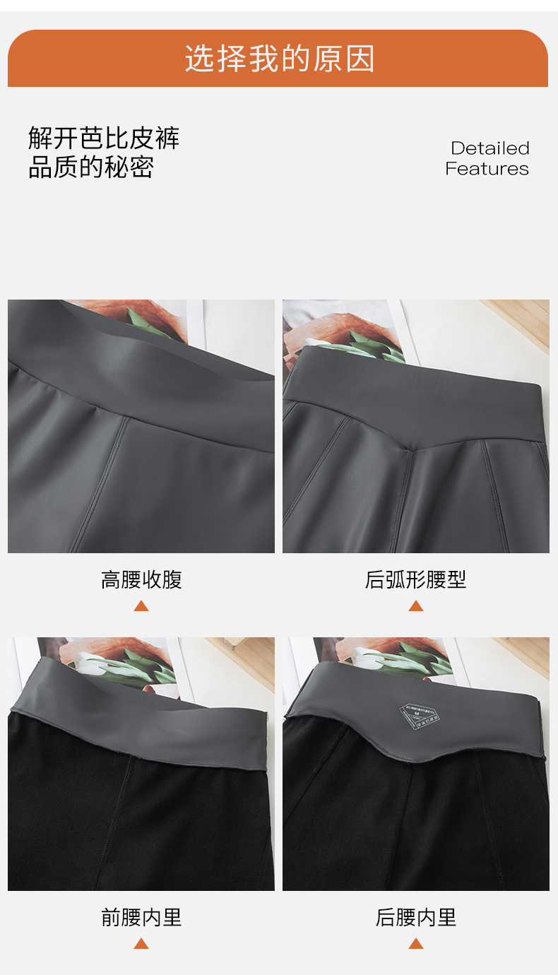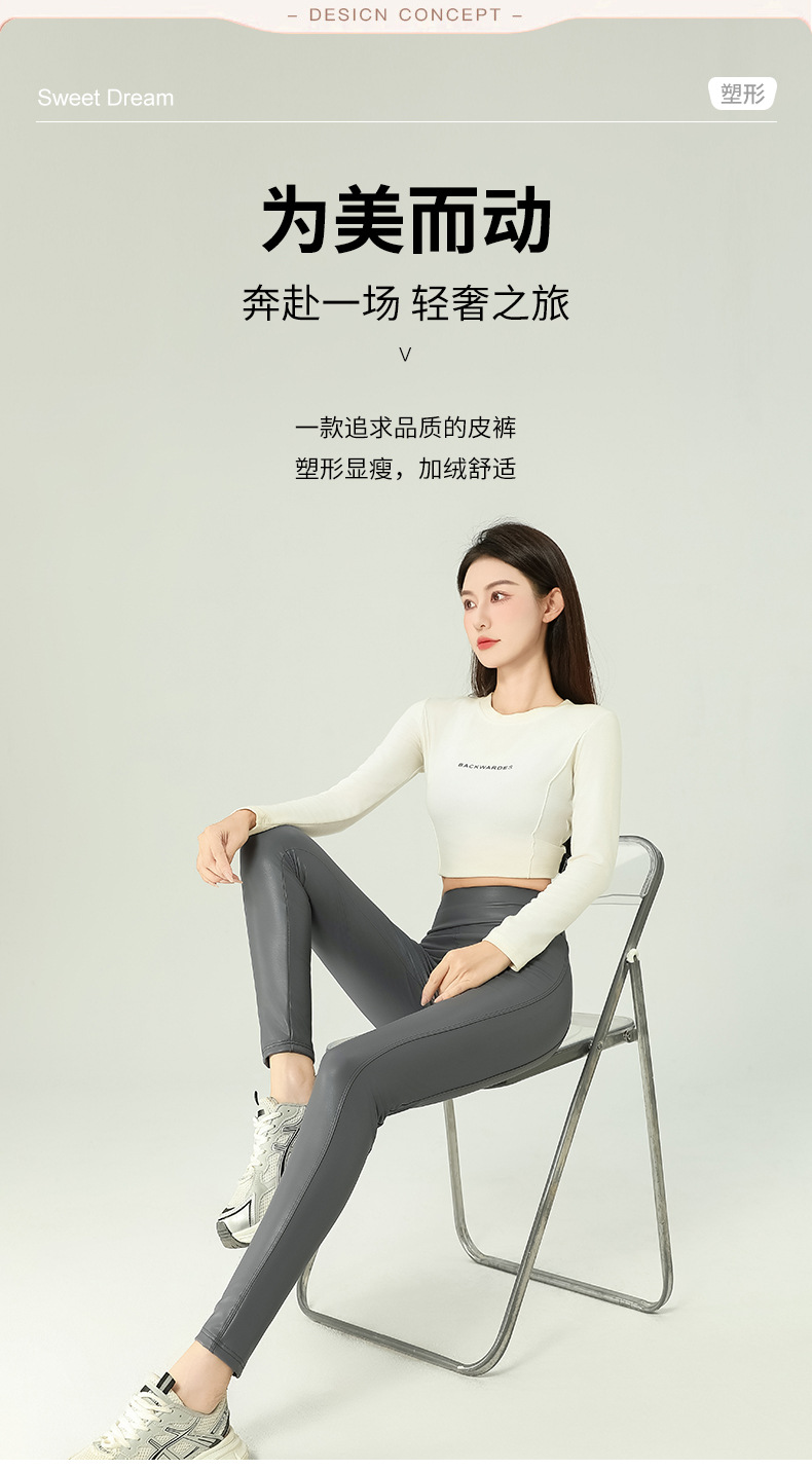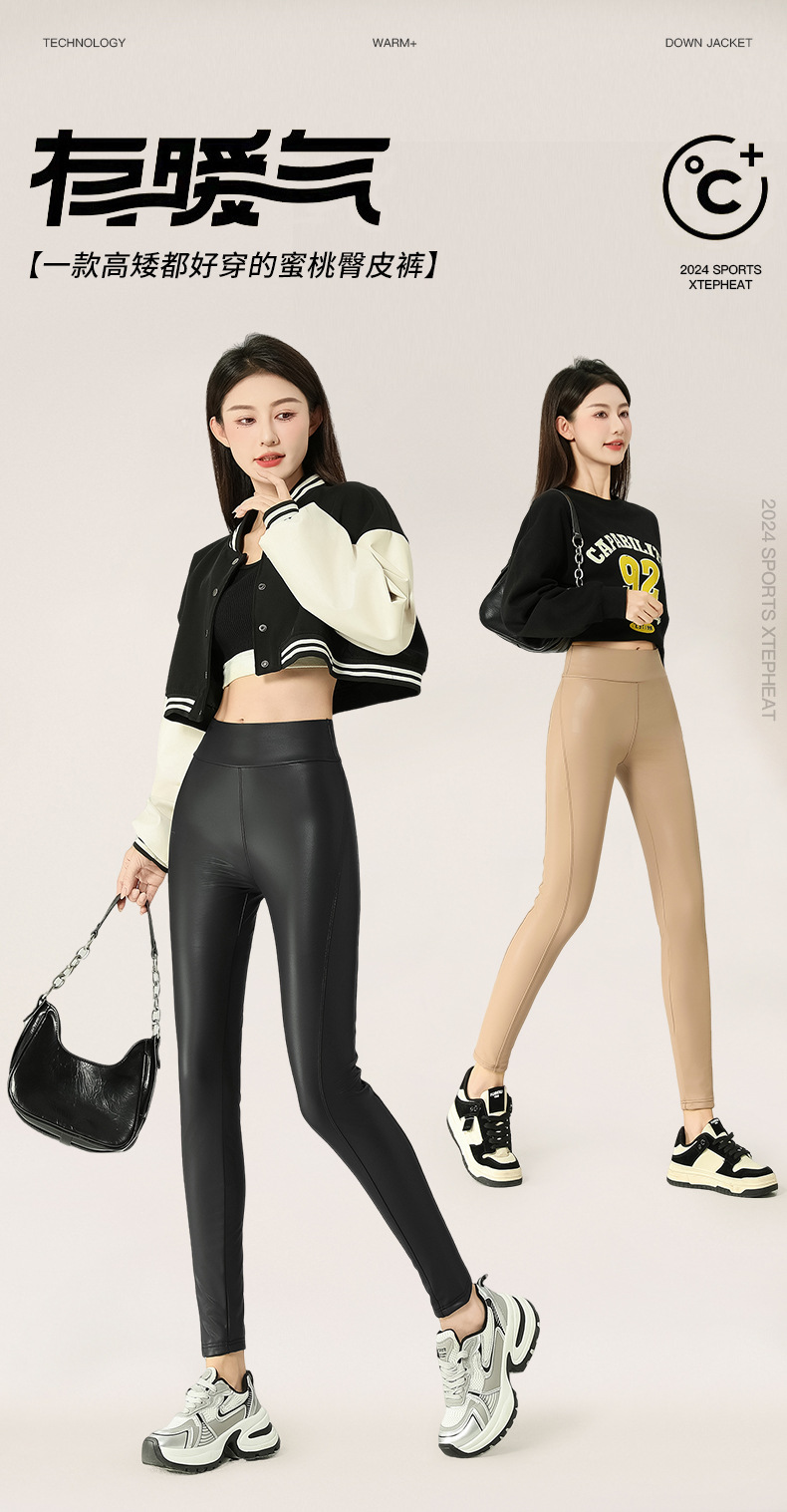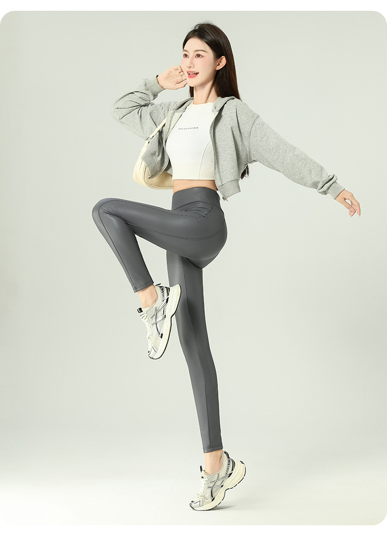 가죽 바지 여성용 타이트 2024 새로운 높은 허리 얇은 자른 바지 기모 가죽 매트 레깅스 외부 착용 긴 바지스토어 가기