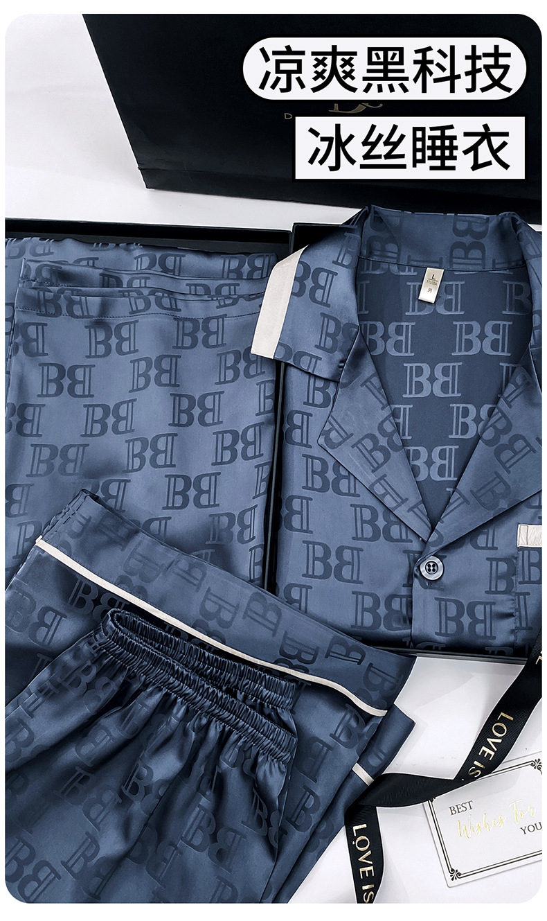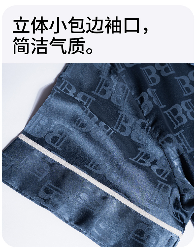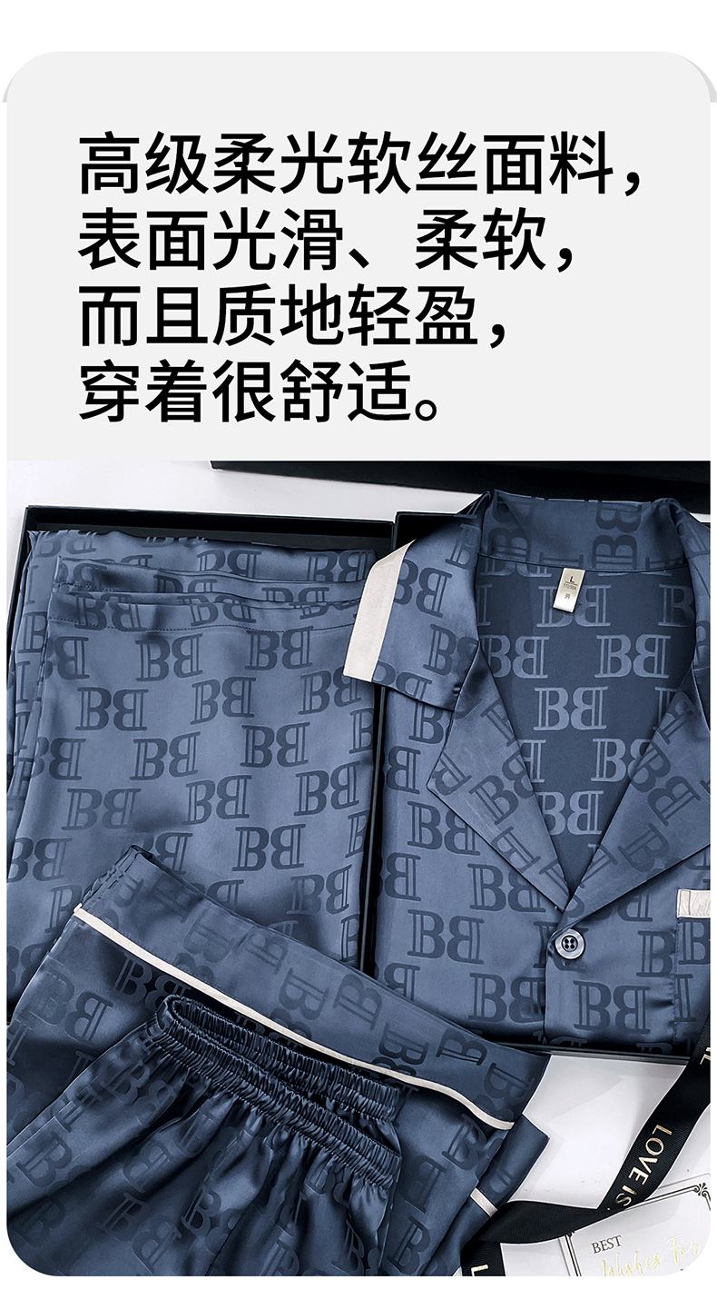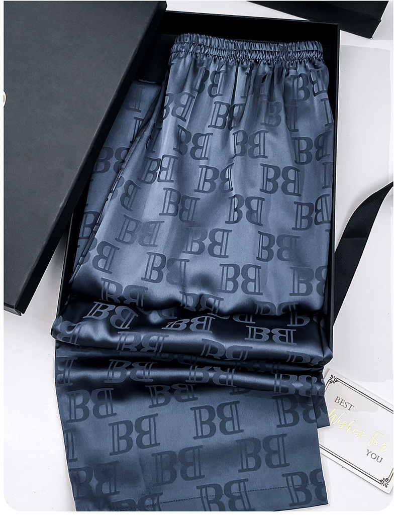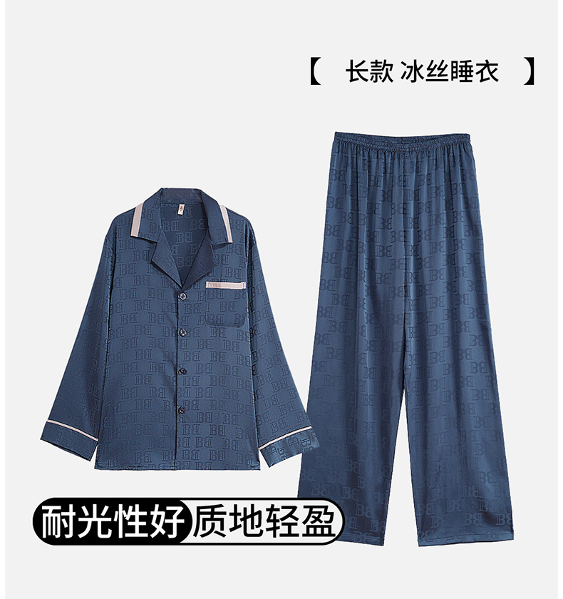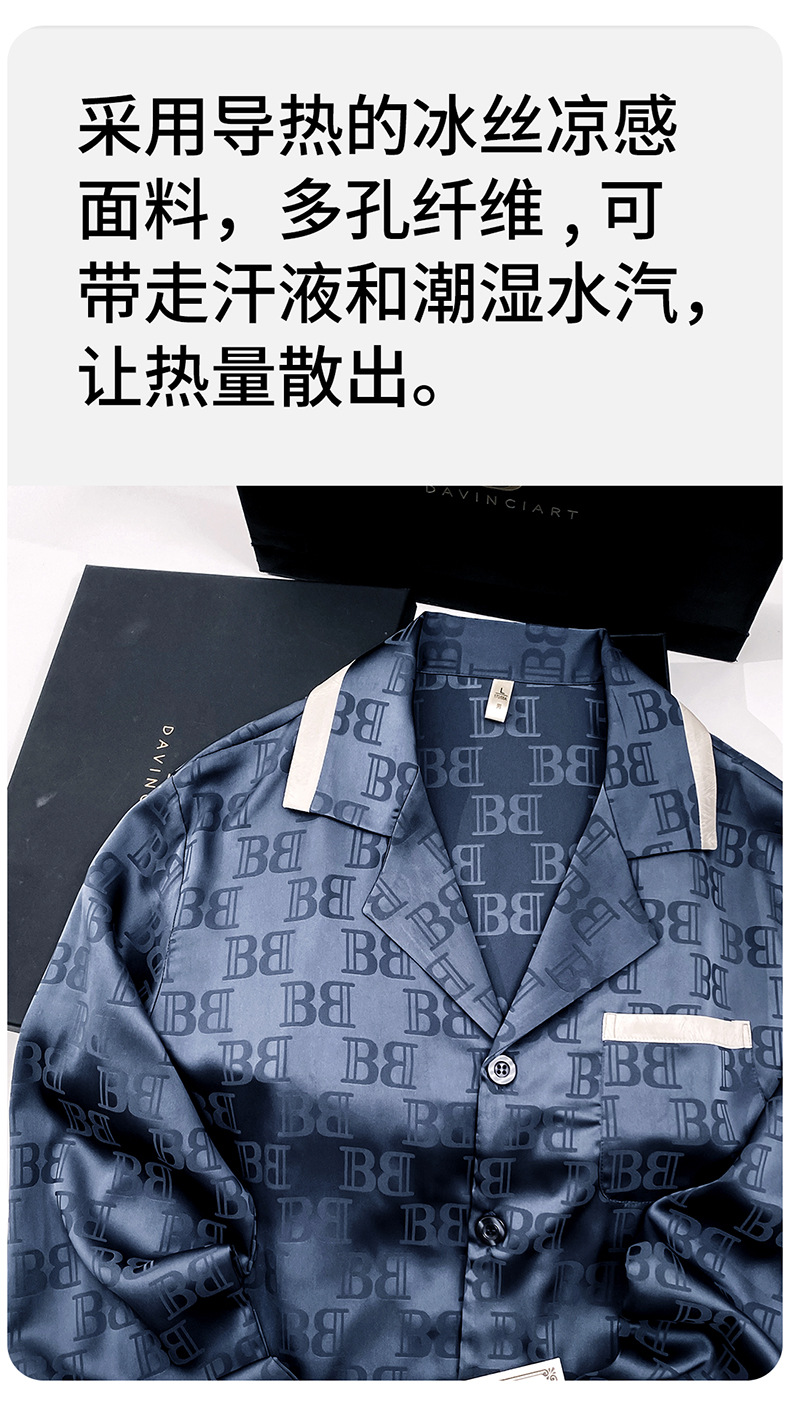 다빈치 코드 고급 젊은 남성용 아이스 실크 잠옷, 긴팔 홈웨어, 얇은 자카드 실크 홈웨어스토어 가기
