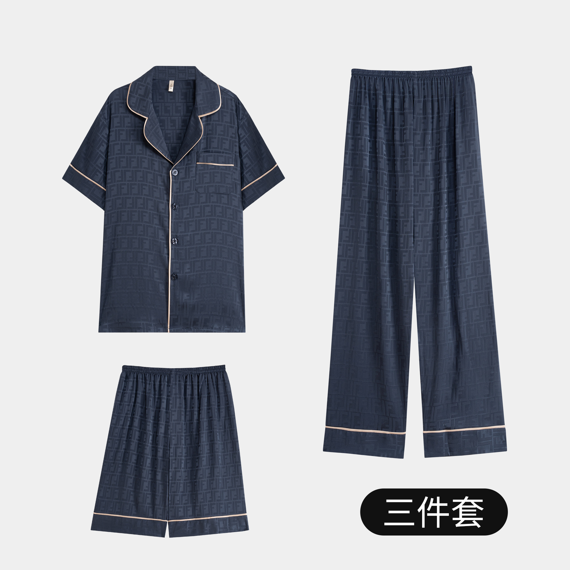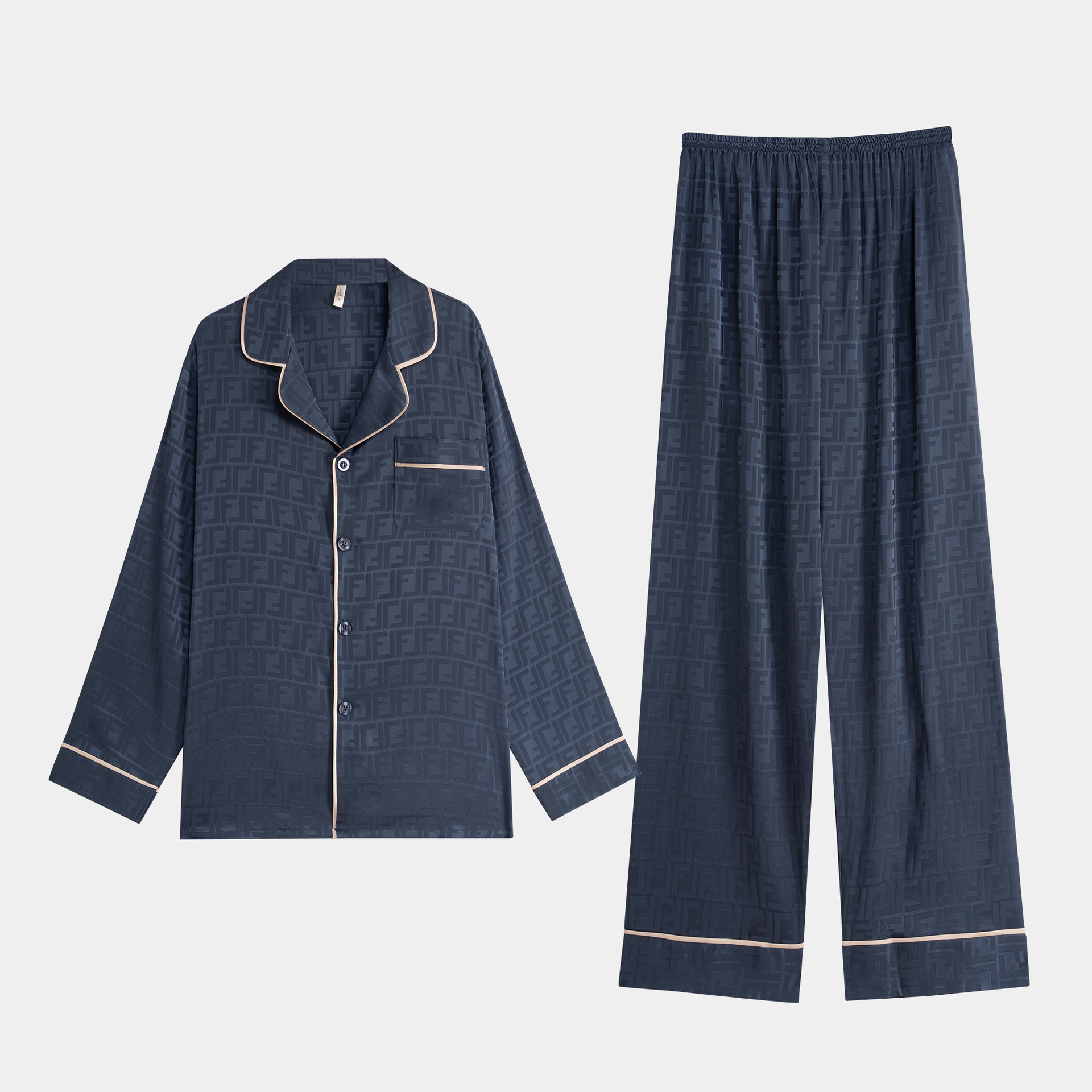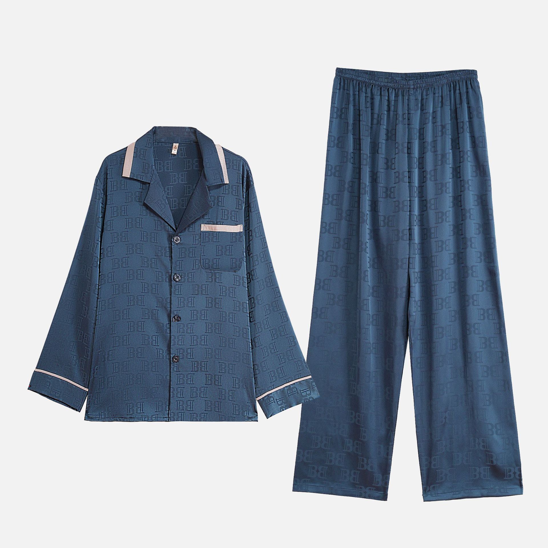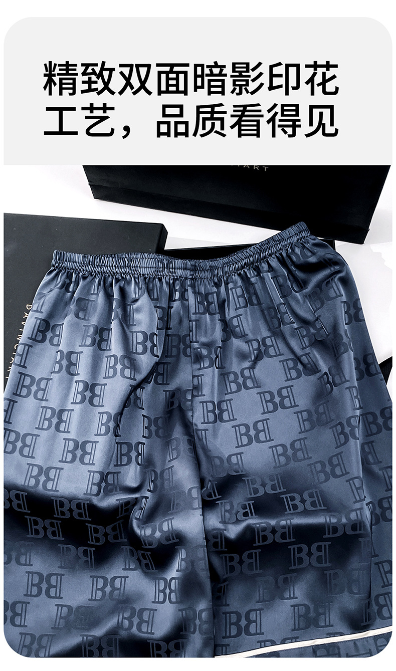 다빈치 코드 고급 젊은 남성용 아이스 실크 잠옷, 긴팔 홈웨어, 얇은 자카드 실크 홈웨어스토어 가기
