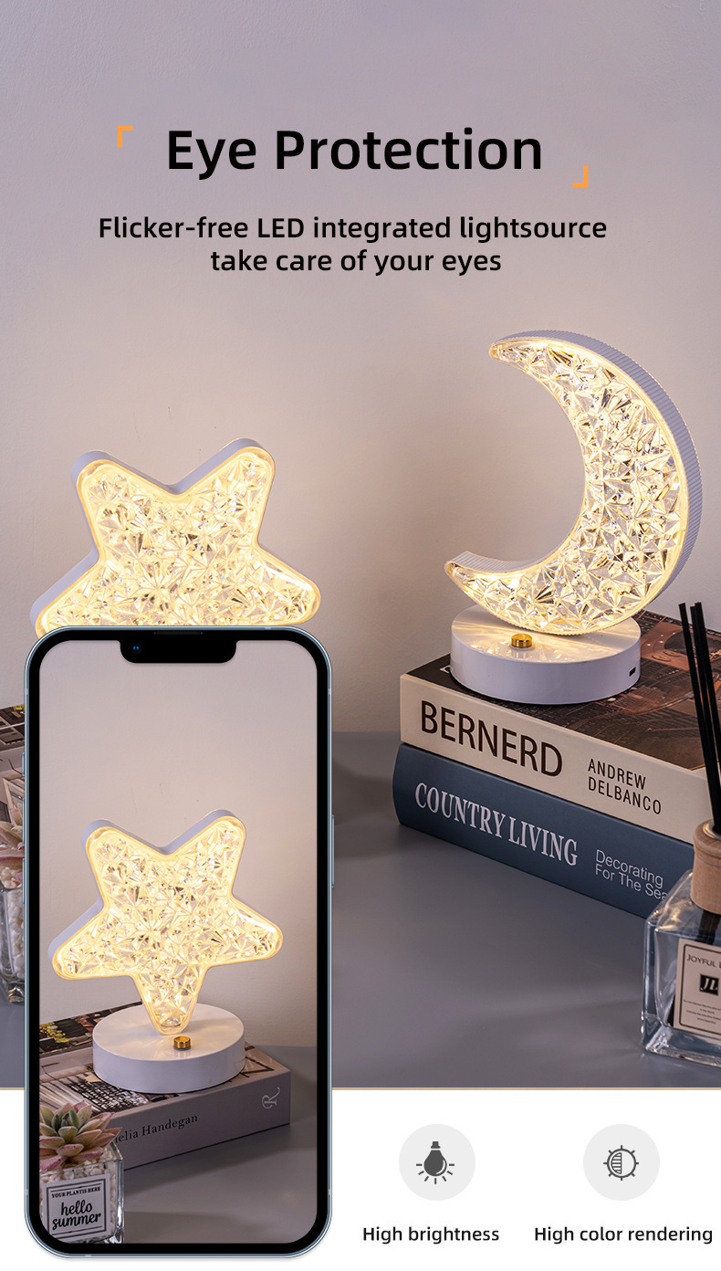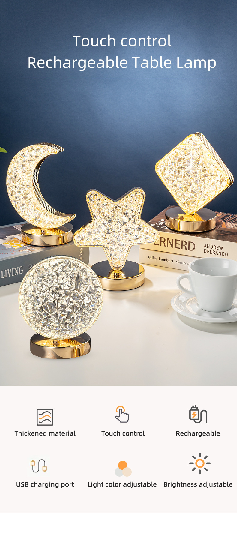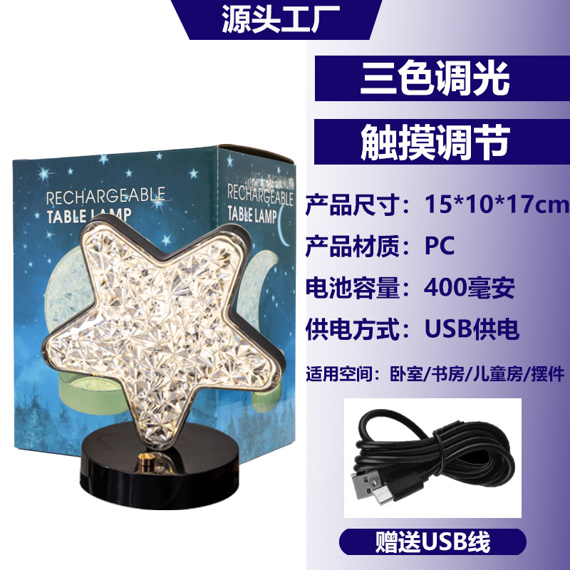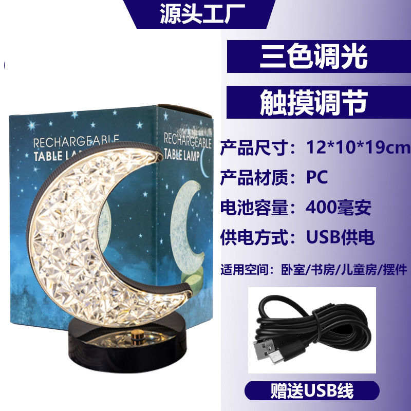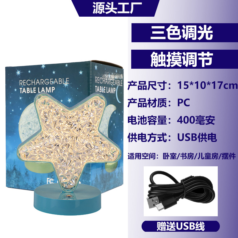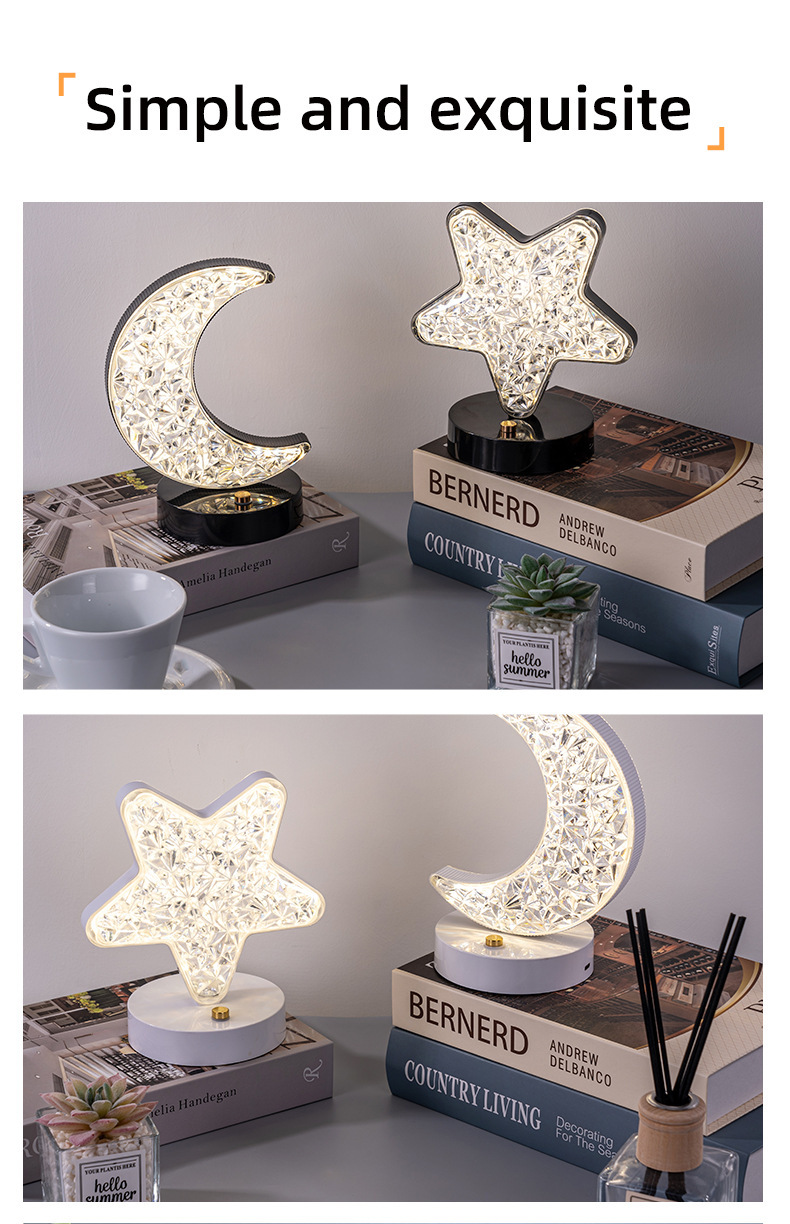 LED 테이블 램프 별 달 충전 터치 침실 침대 옆 선물 작은 테이블 램프 국경 현대 간단한 장식