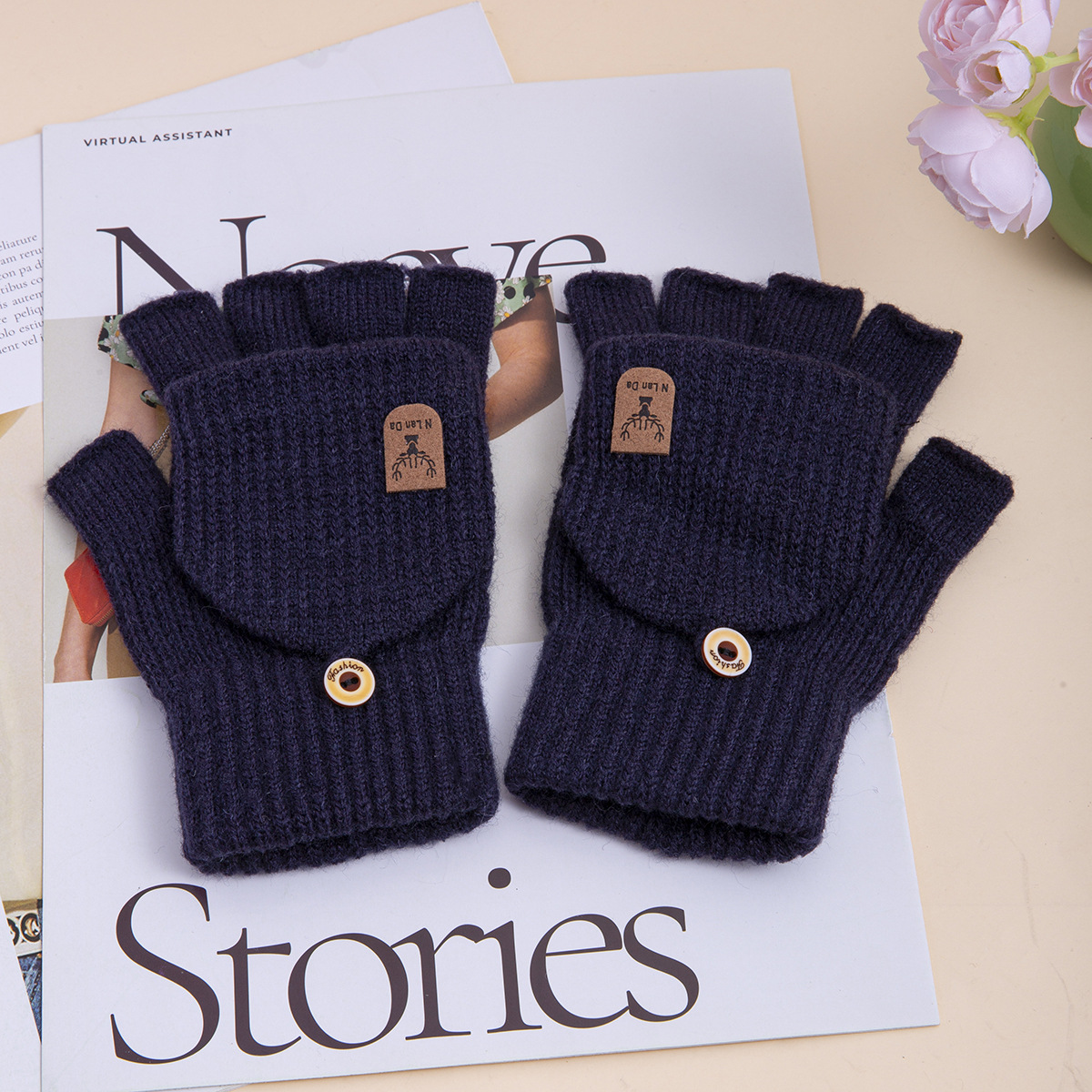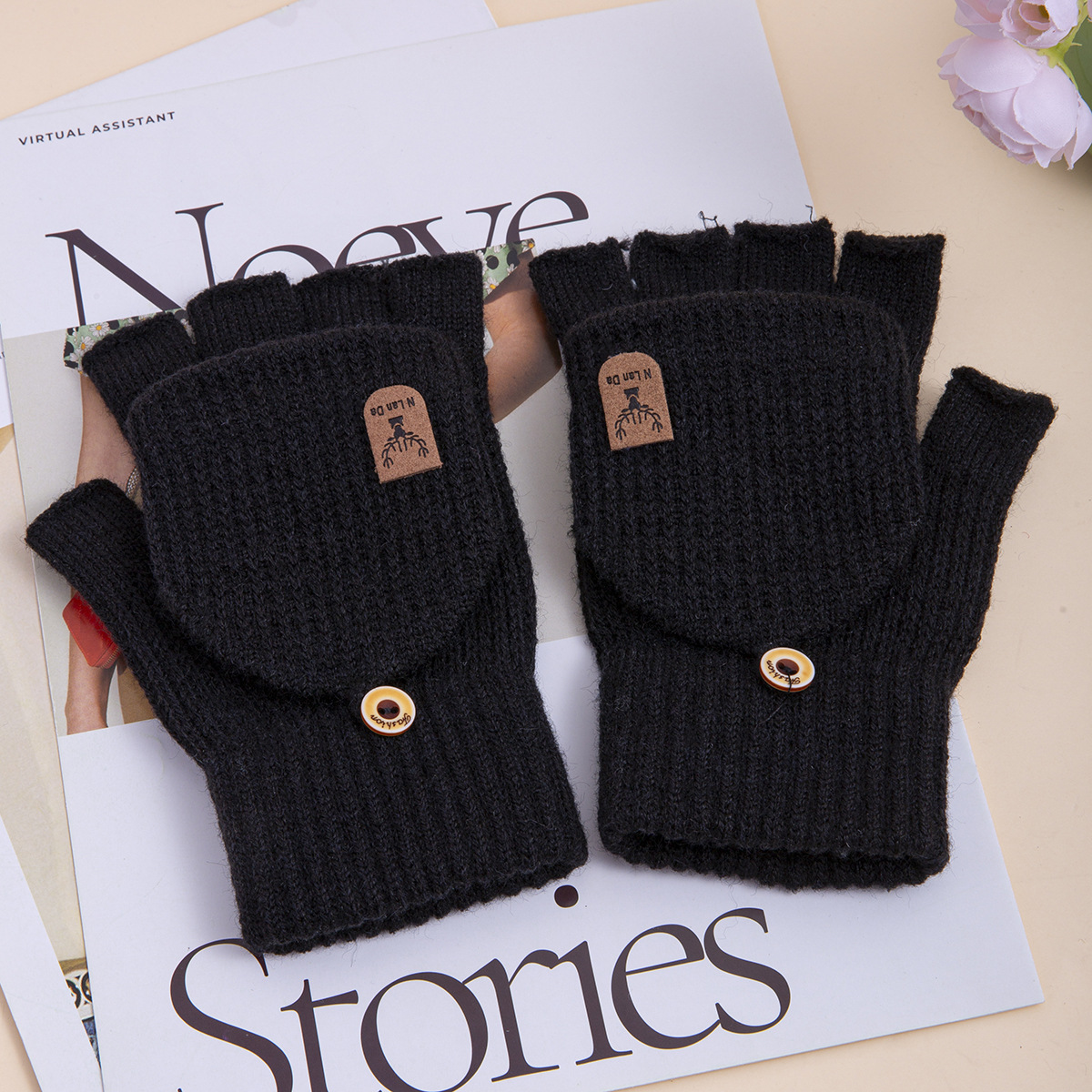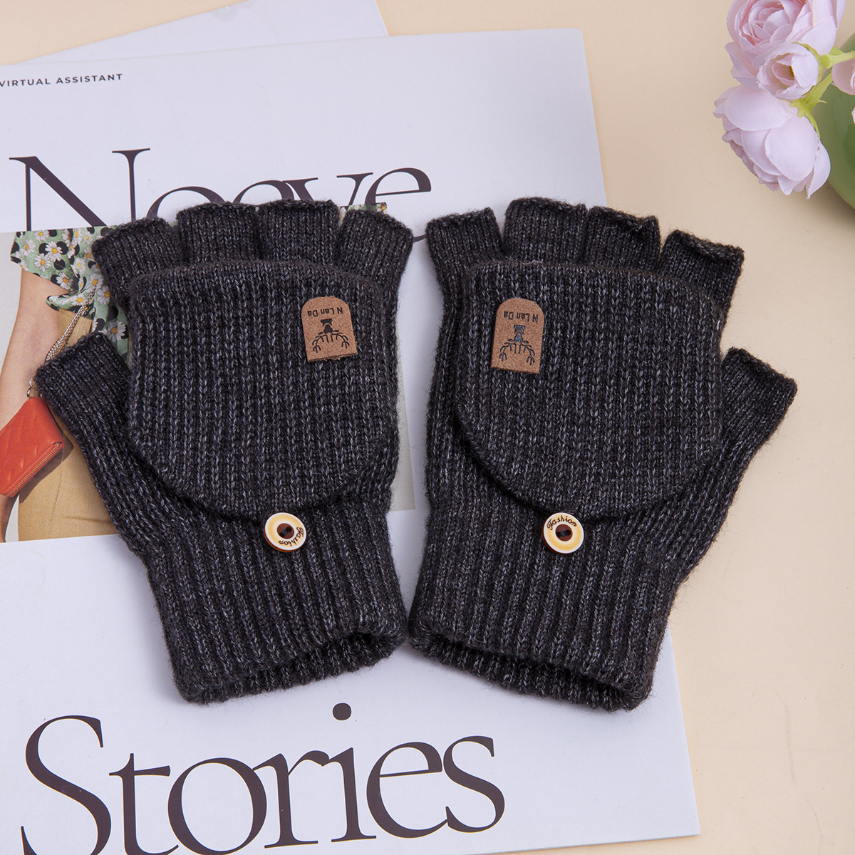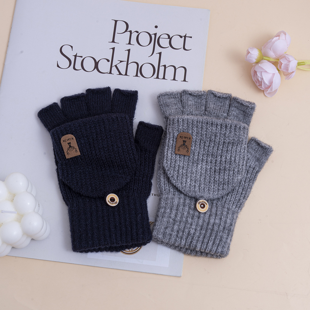 신상 남성용 장갑 겨울용 플립업 니트 오픈 핑거 학생용 필기용 보온 사무용 한국 스타일 멋스럽고 심플한 야외용