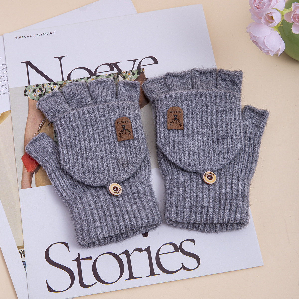 신상 남성용 장갑 겨울용 플립업 니트 오픈 핑거 학생용 필기용 보온 사무용 한국 스타일 멋스럽고 심플한 야외용스토어 가기