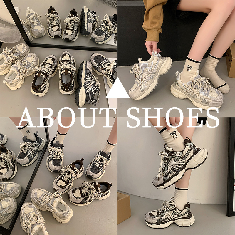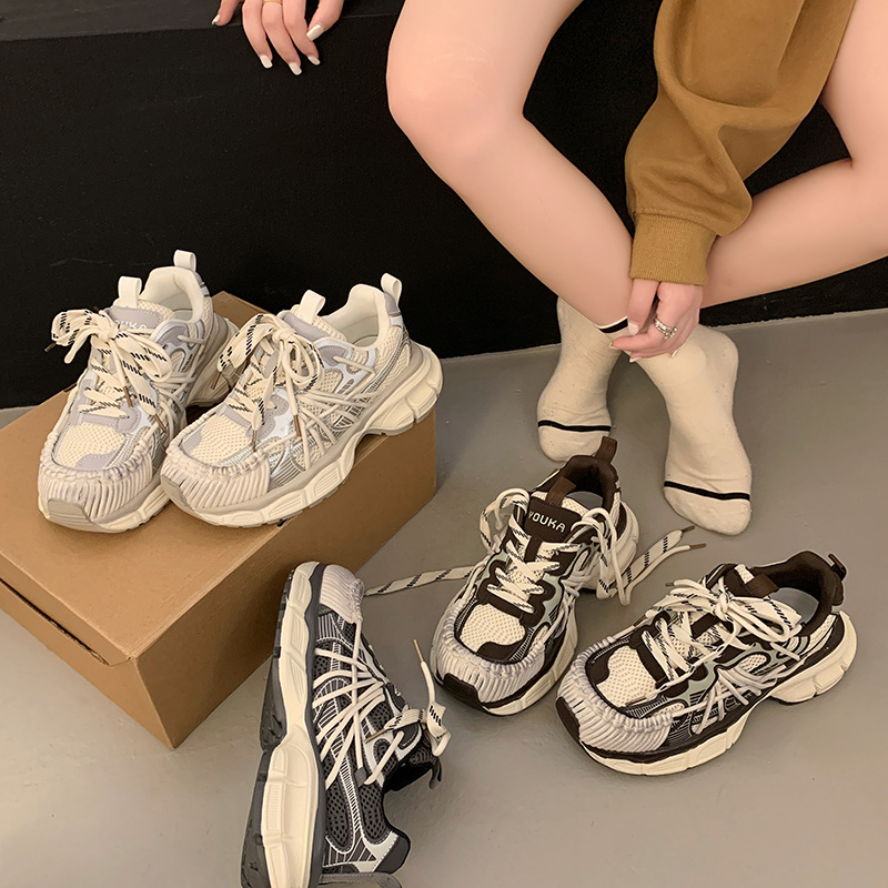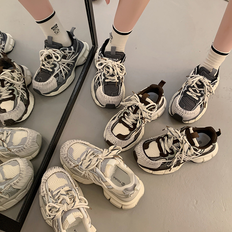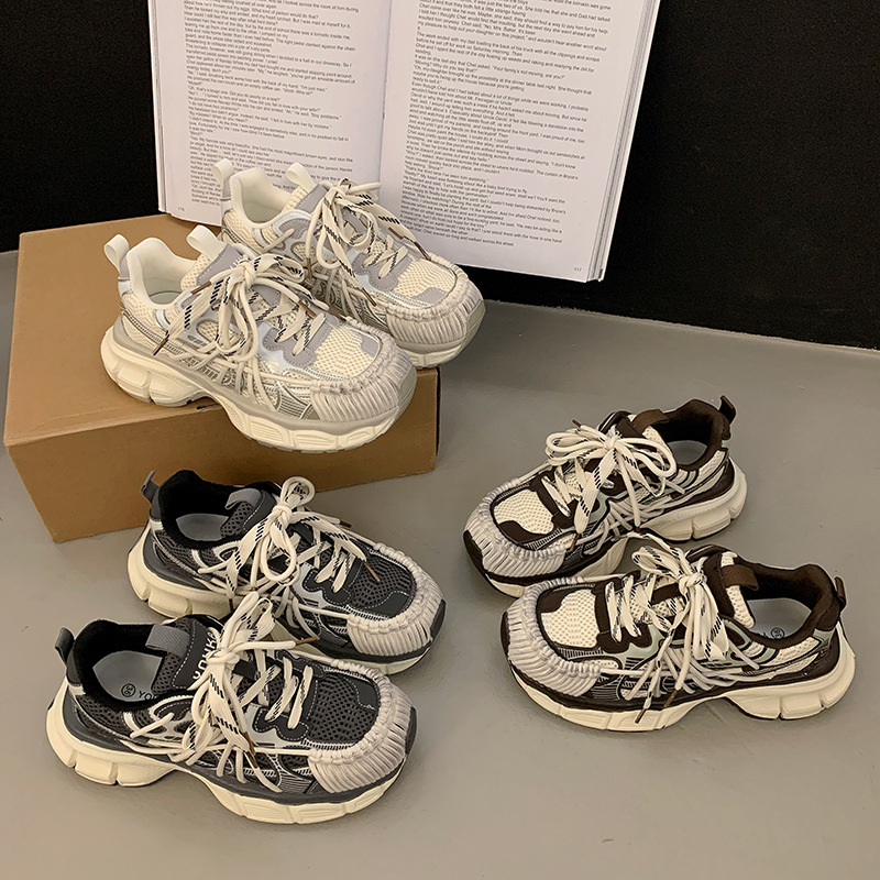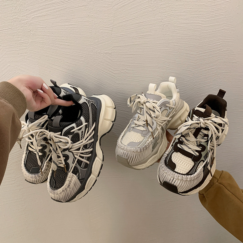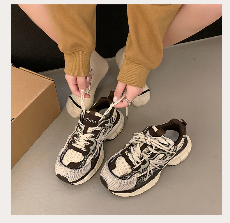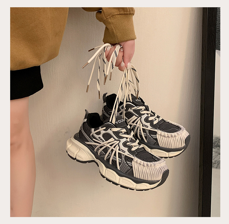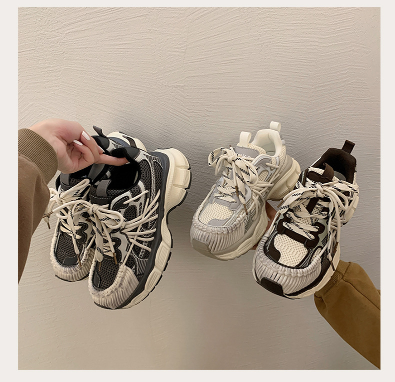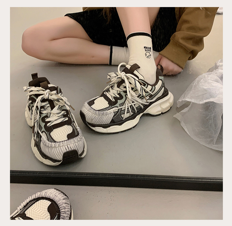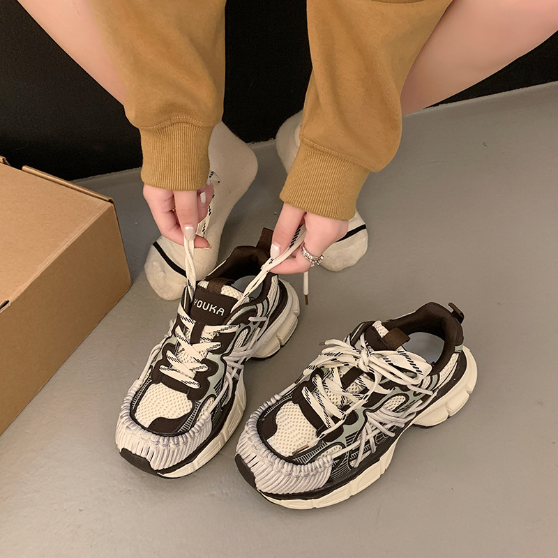 빈티지 캐주얼 신발 등산 스포츠 러닝화 2024 년 가을과 겨울 컬러 광택 늙은 여성의 두꺼운 톱니 신발스토어 가기