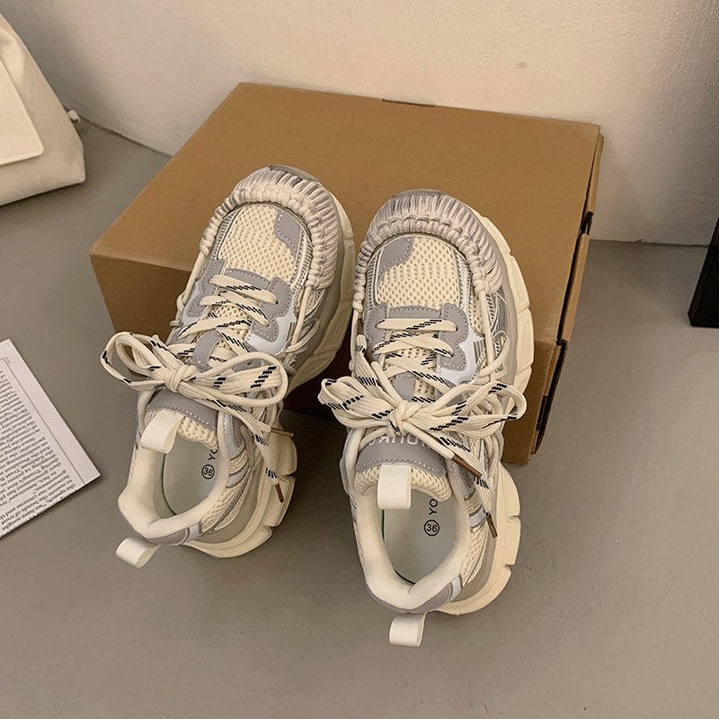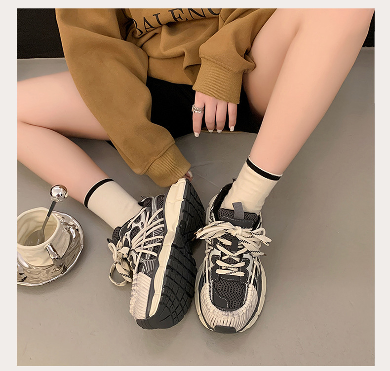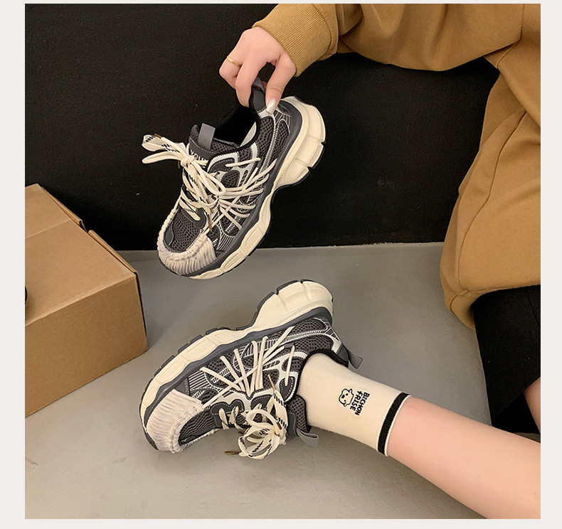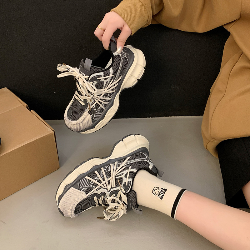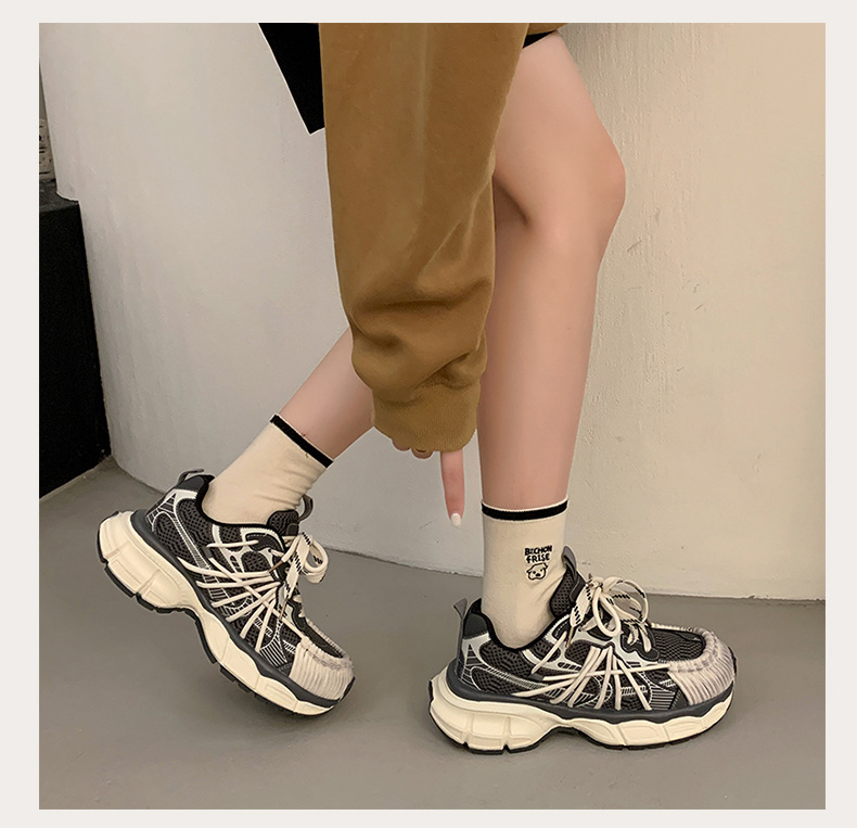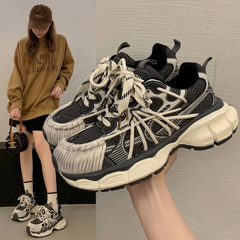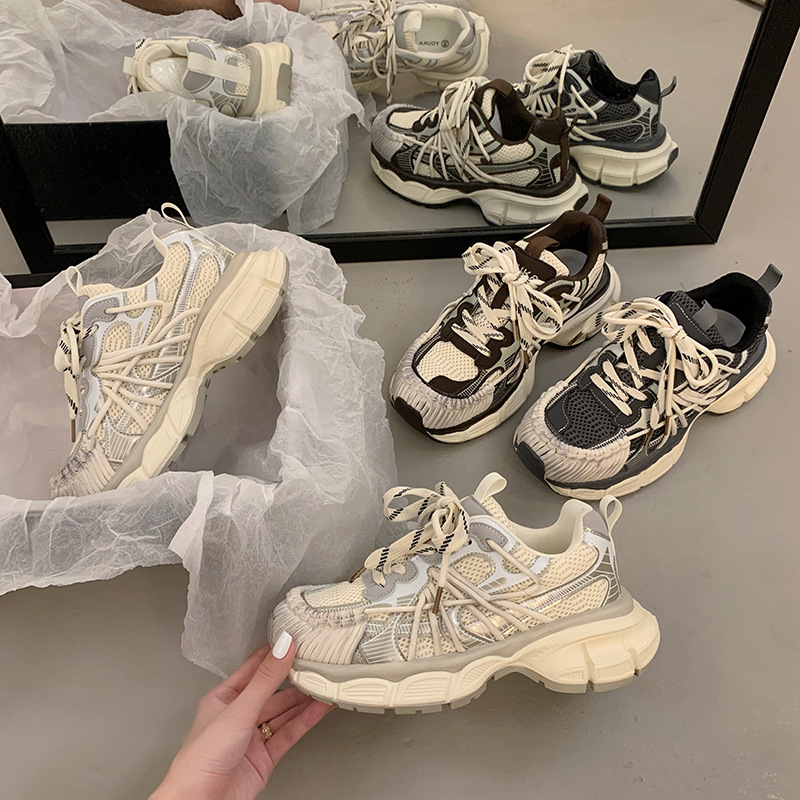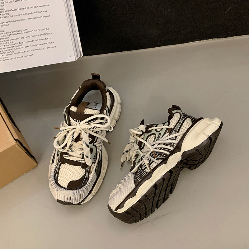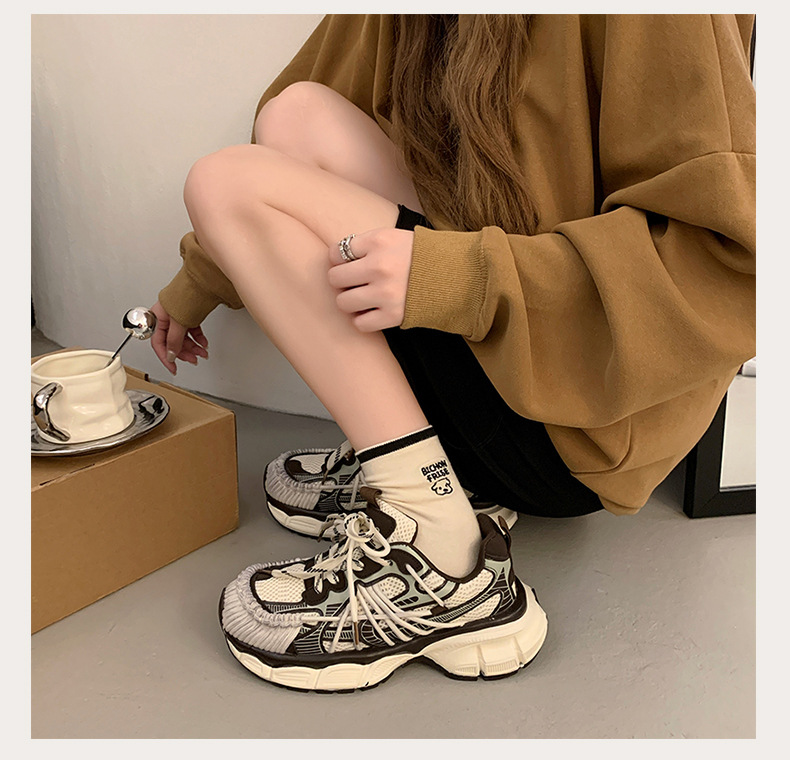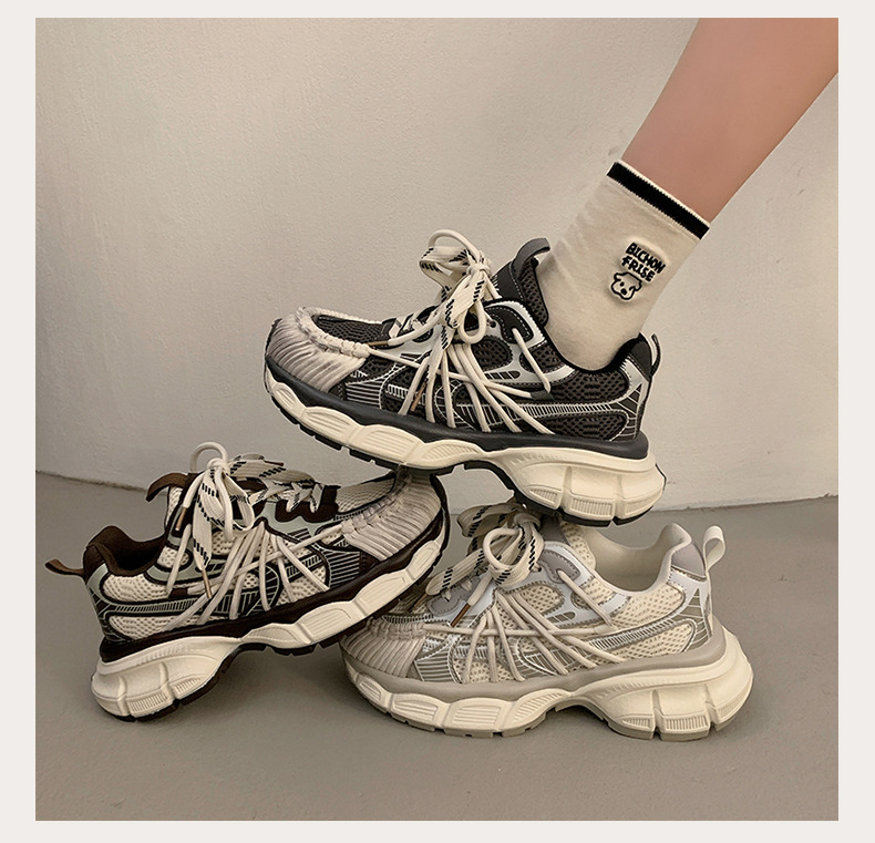 빈티지 캐주얼 신발 등산 스포츠 러닝화 2024 년 가을과 겨울 컬러 광택 늙은 여성의 두꺼운 톱니 신발스토어 가기